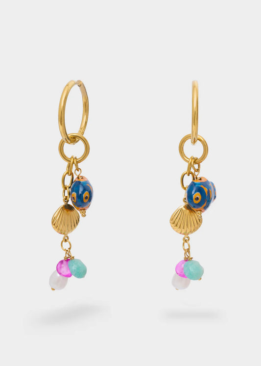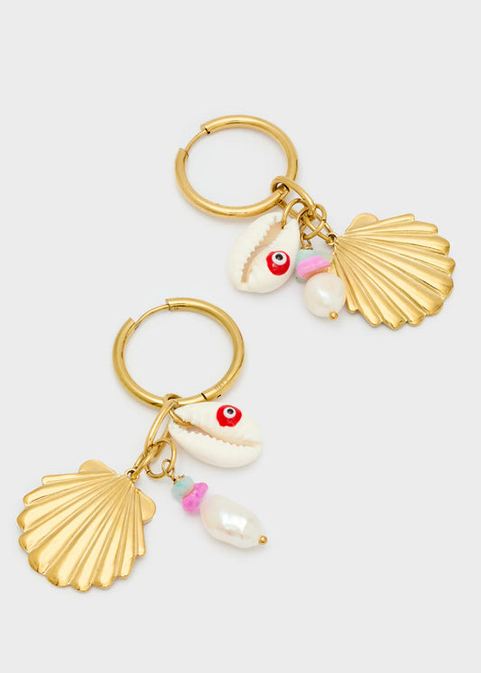 Nalí - Orecchini cerchio conchiglia + perla ora