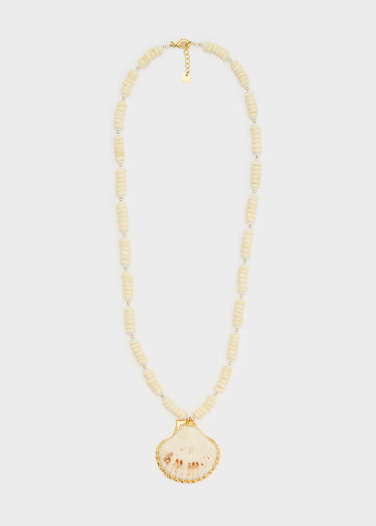 Nalí - Collana perline + ciondolo conchiglia bianco