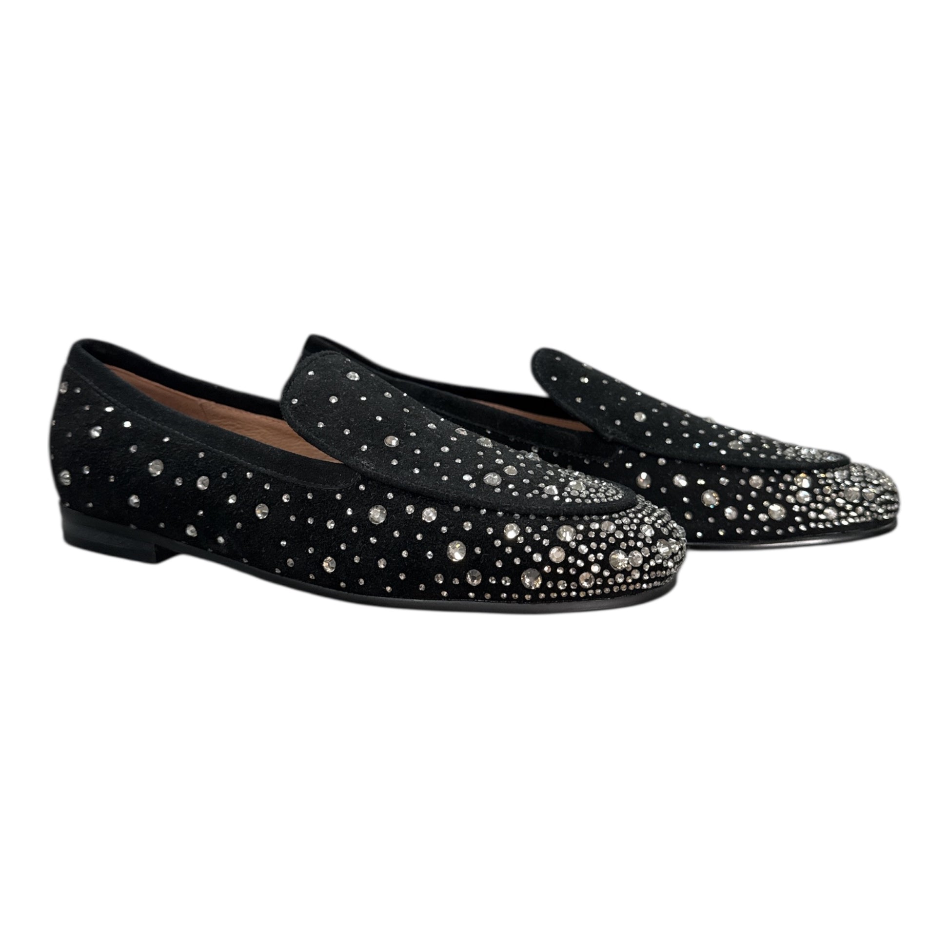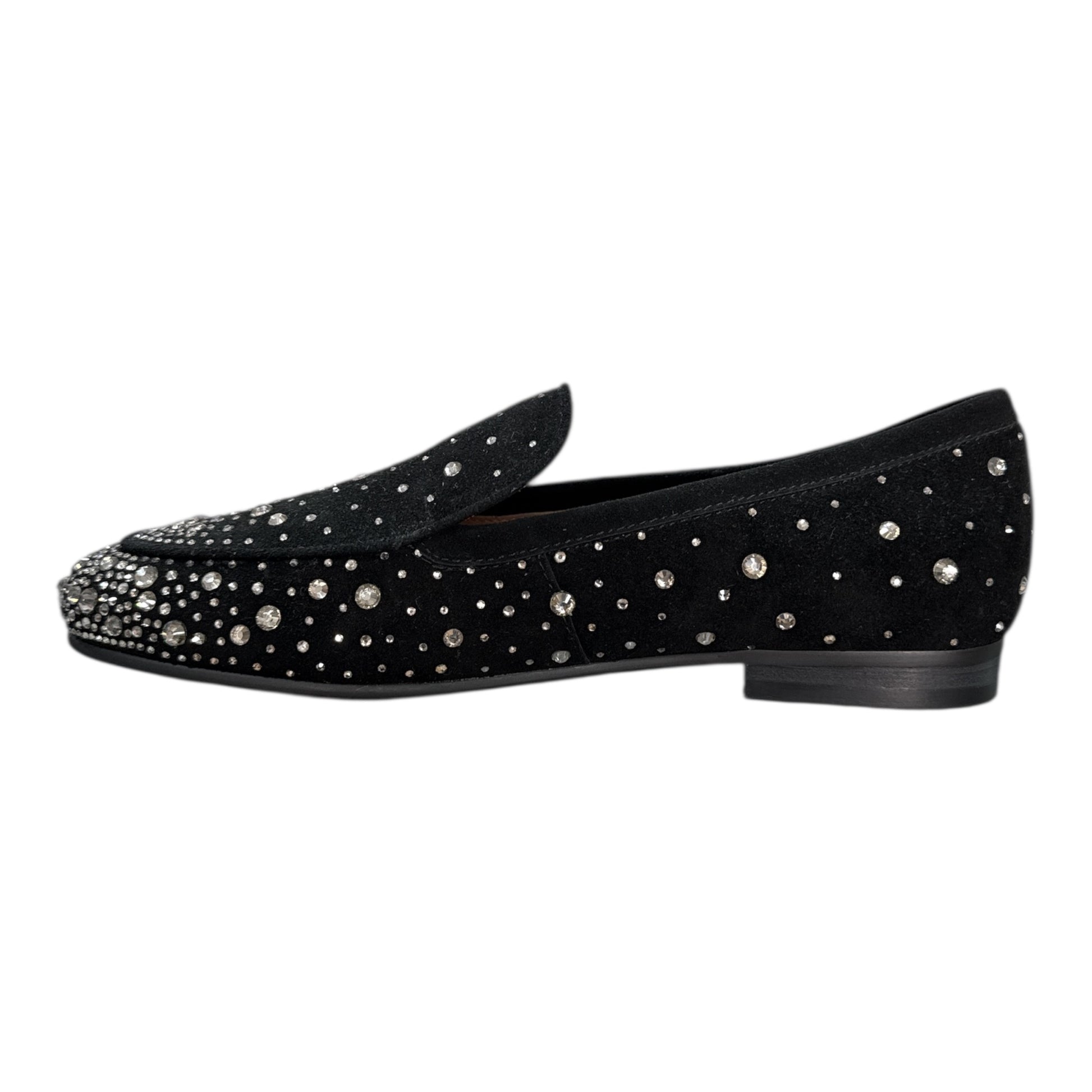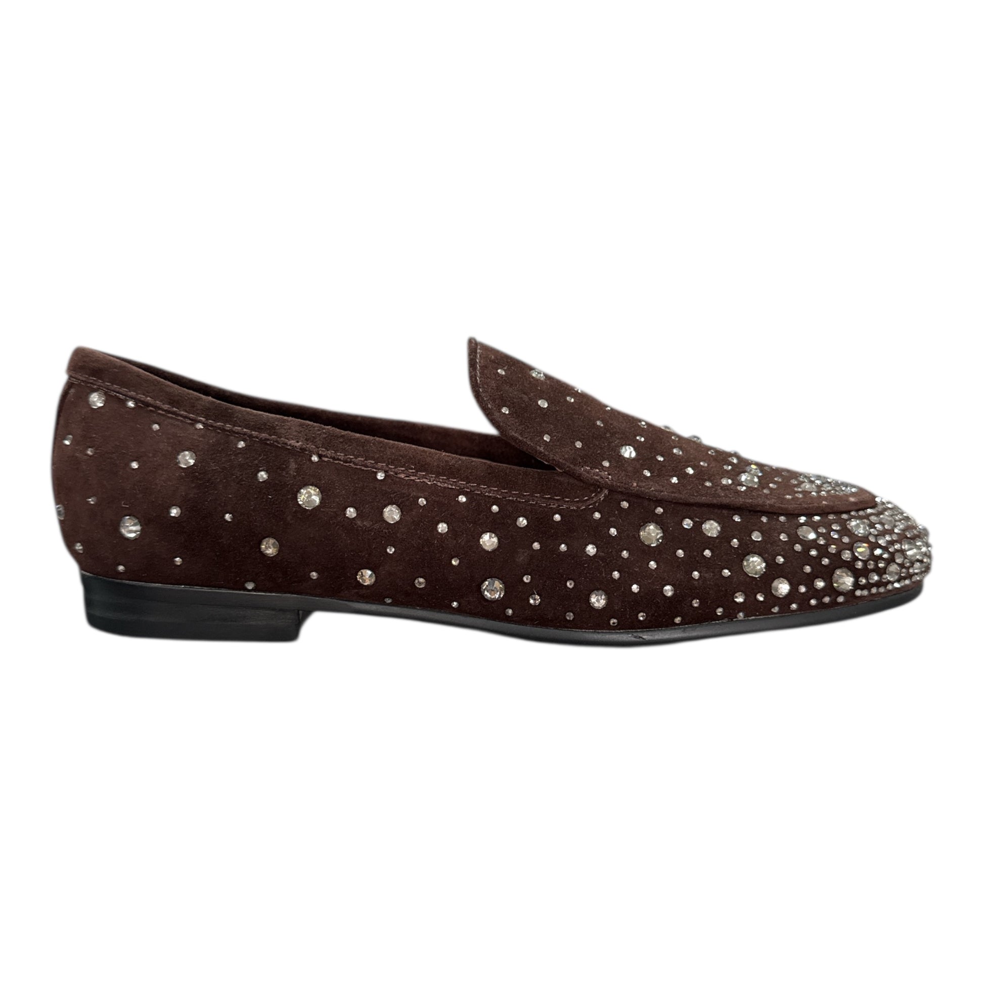 Mocassini da donna in pelle scamosciata di Bibi Lou. Modello Mizar Loafers 15 con punta tonda e glitter e tacco piatto di 1,5 cm.