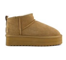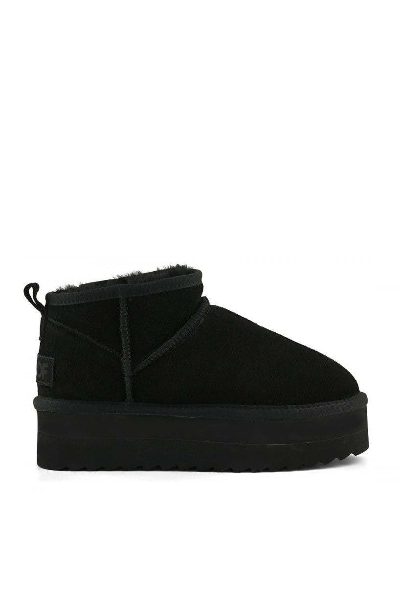 Anche la versione platform dello stivaletto in pelle scamosciata ha la fodera in vero montone. Un modello perfetto per chi preferisce donare al passo slancio senza rinunciare alla comodità e al calore. Ideale con completi di ispirazione baita o con calze in maglia lavorata e micro pants per dare un tocco glamour anche ai look di città più fashionisti.