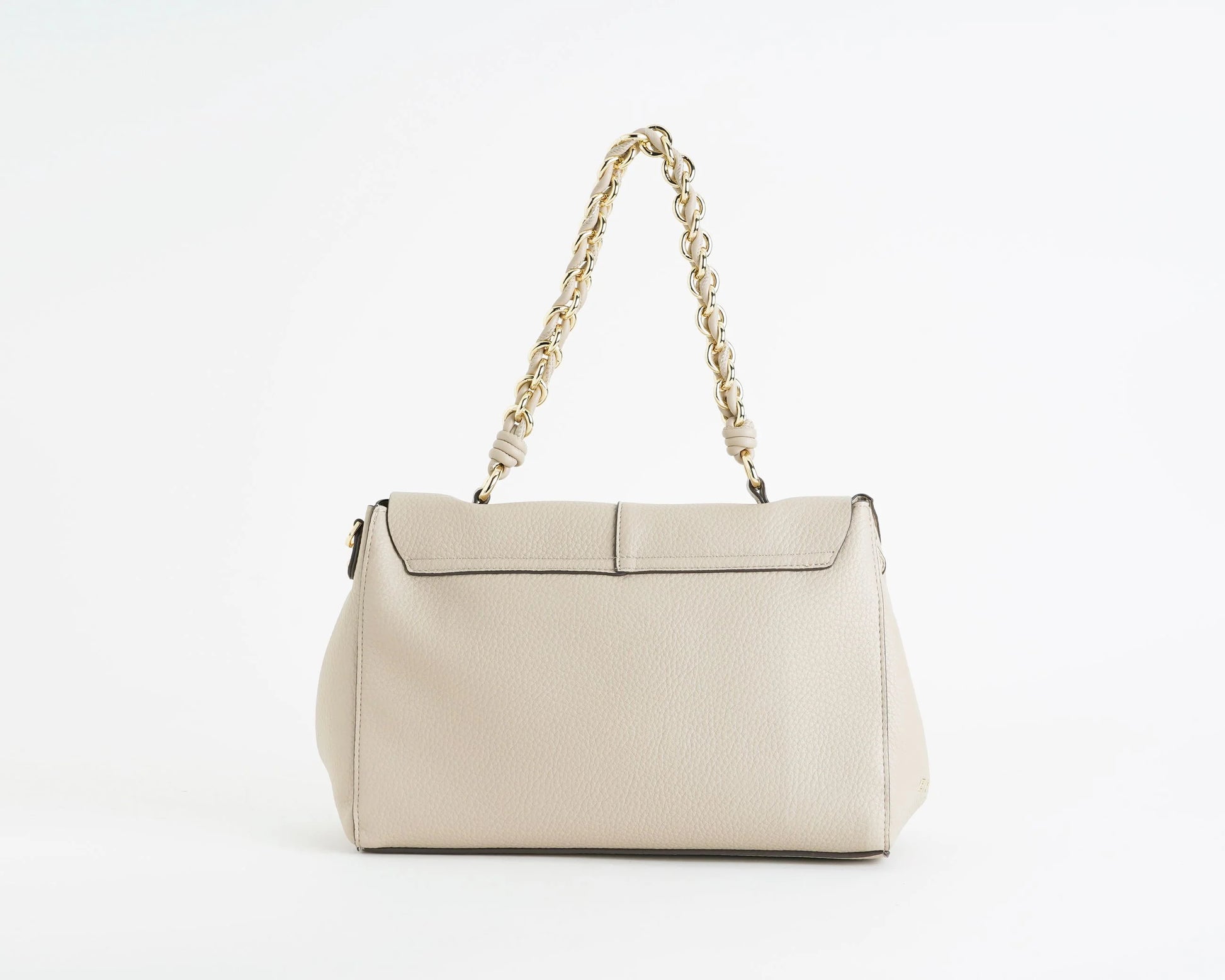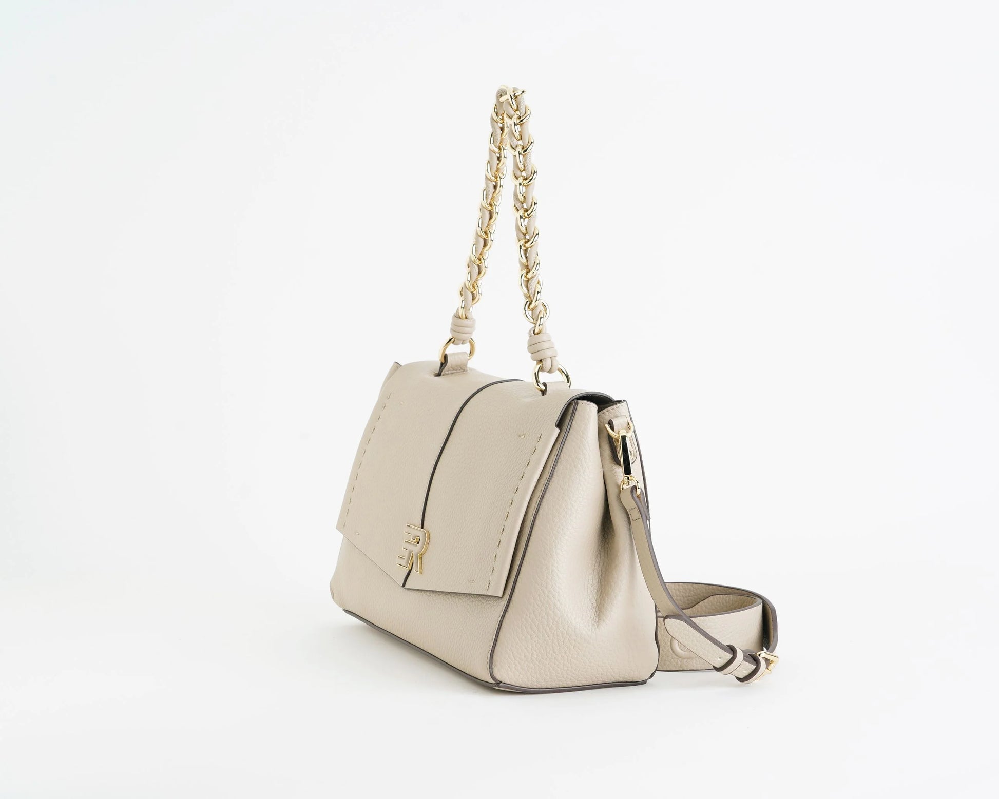 Borsa a mano Scervino, iconico accessorio in similpelle, con manico singolo lavorato e tracolla larga, regolabile e removibile. Comparto con chiusura con patta, logo frontale in metallo e interno foderato.