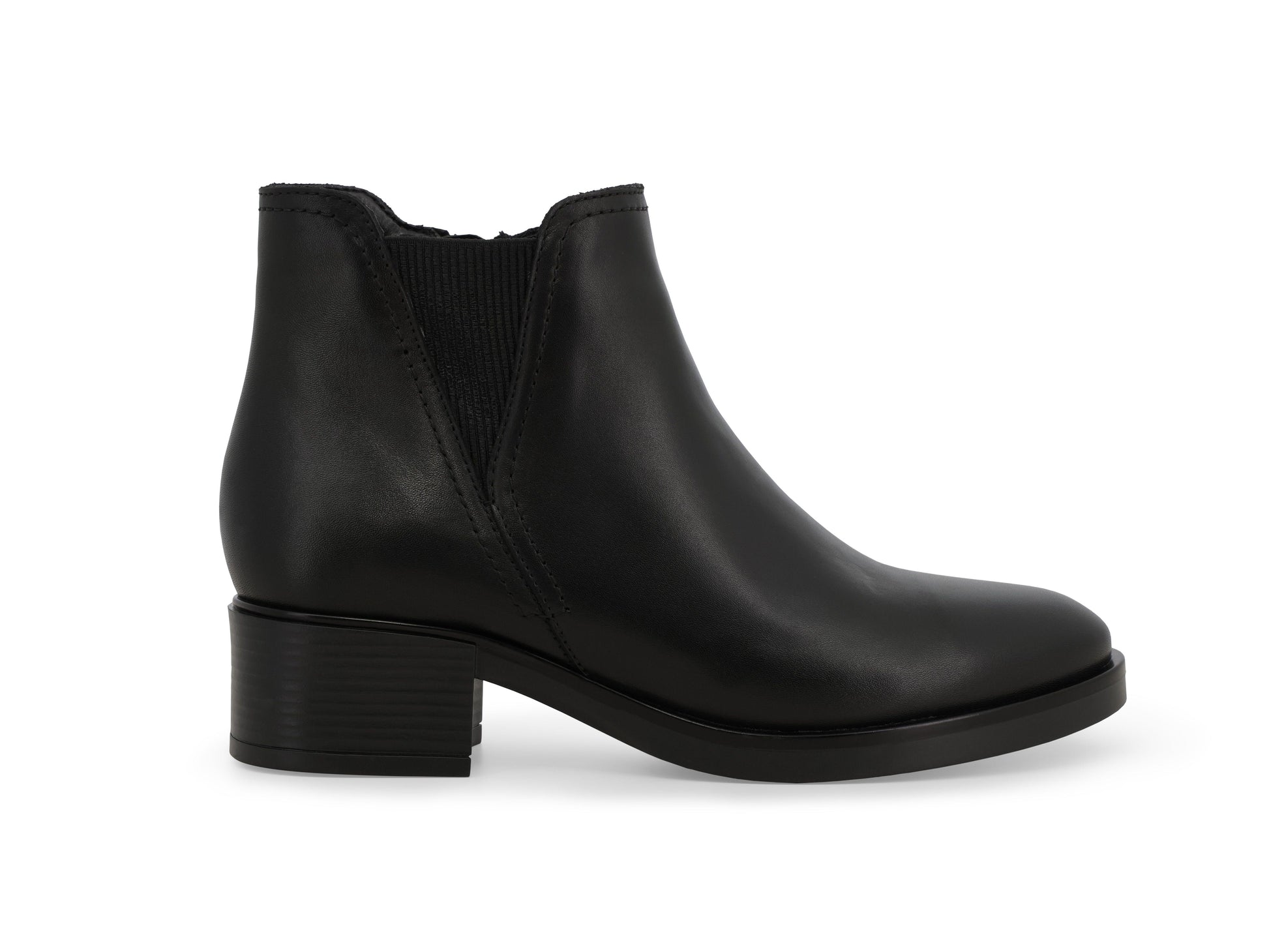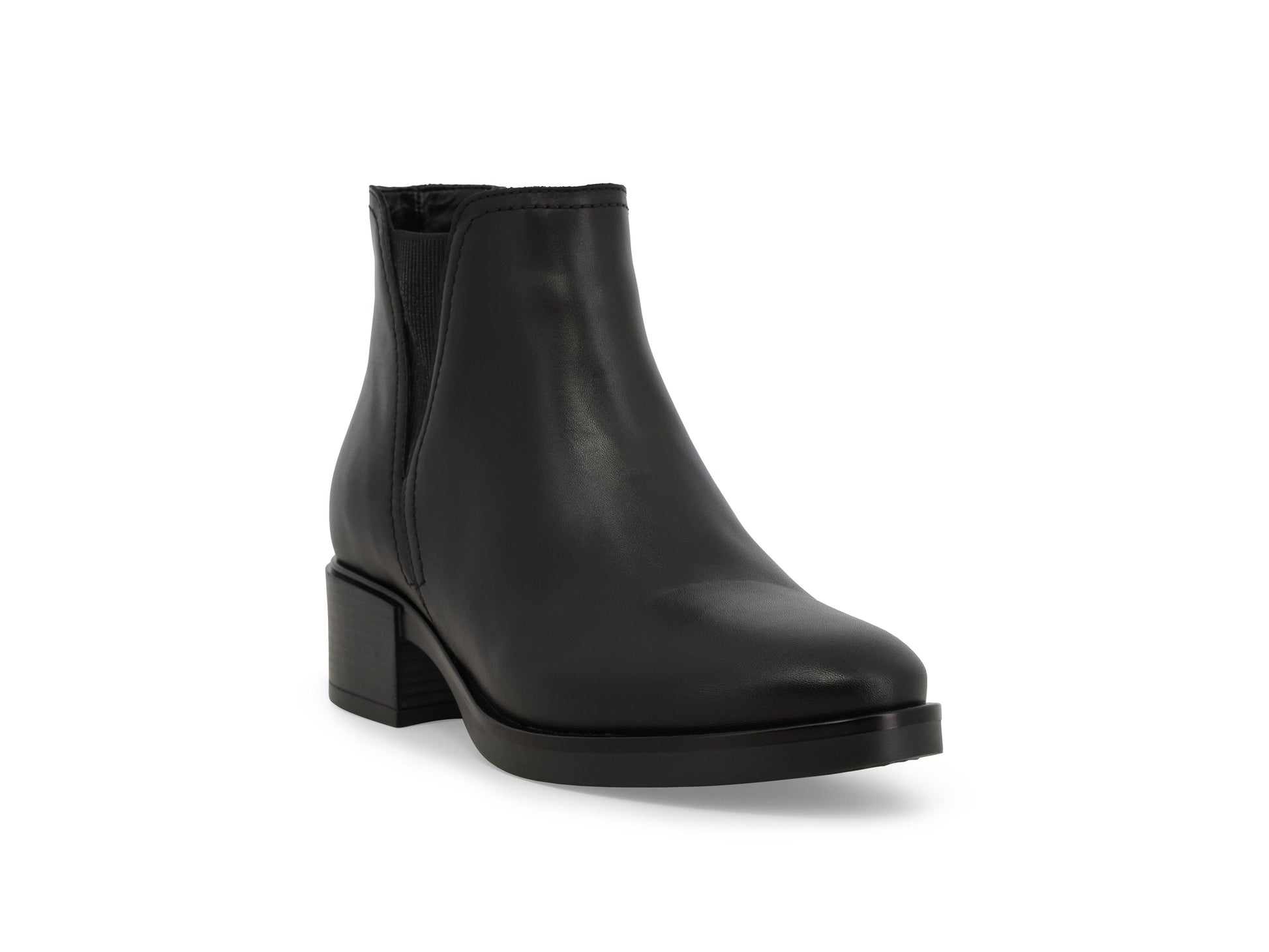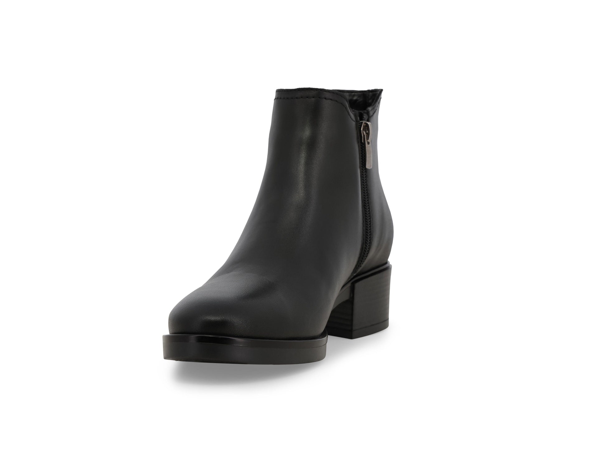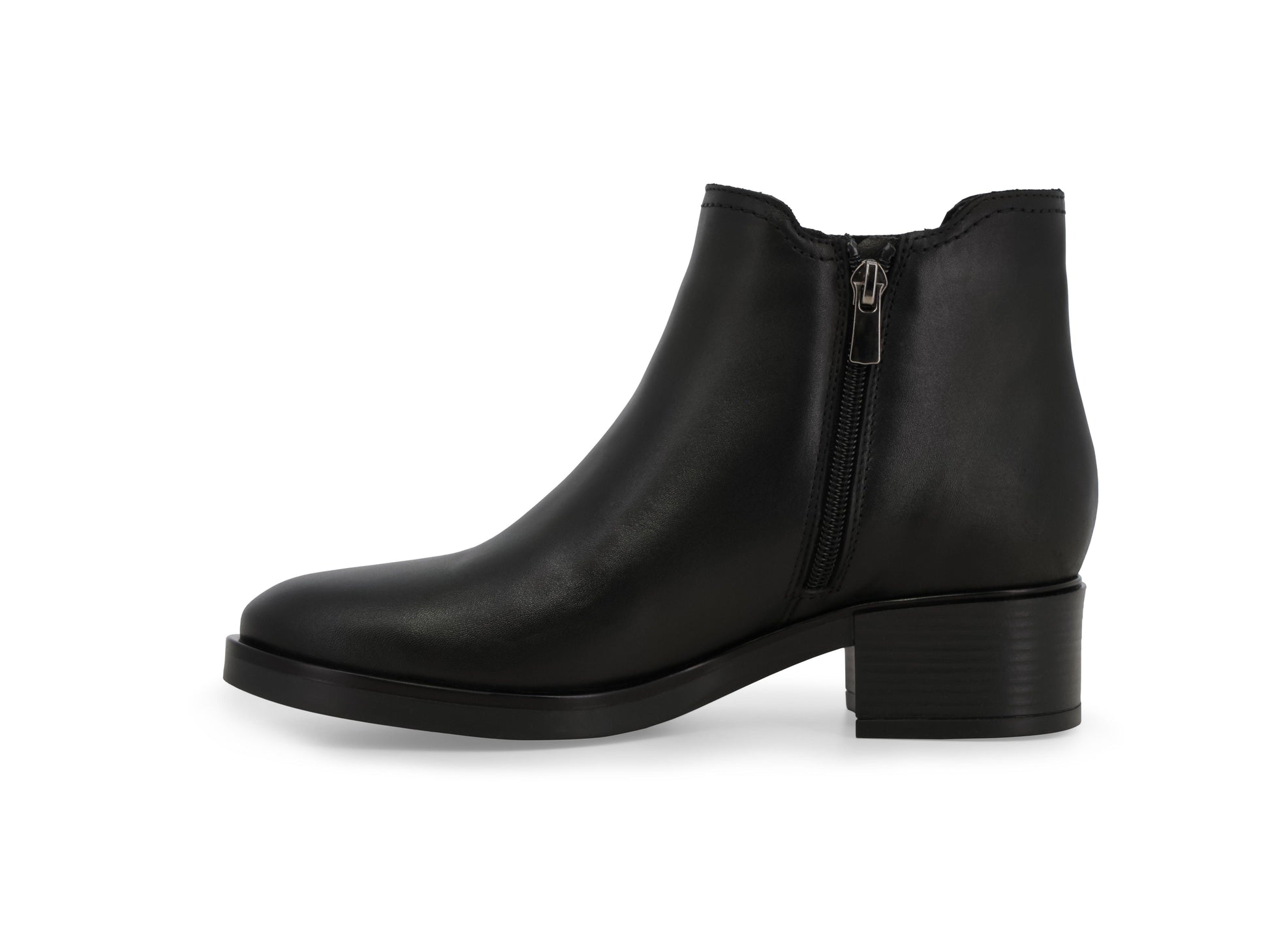 Black leather Beatles, leather sole, side zip.