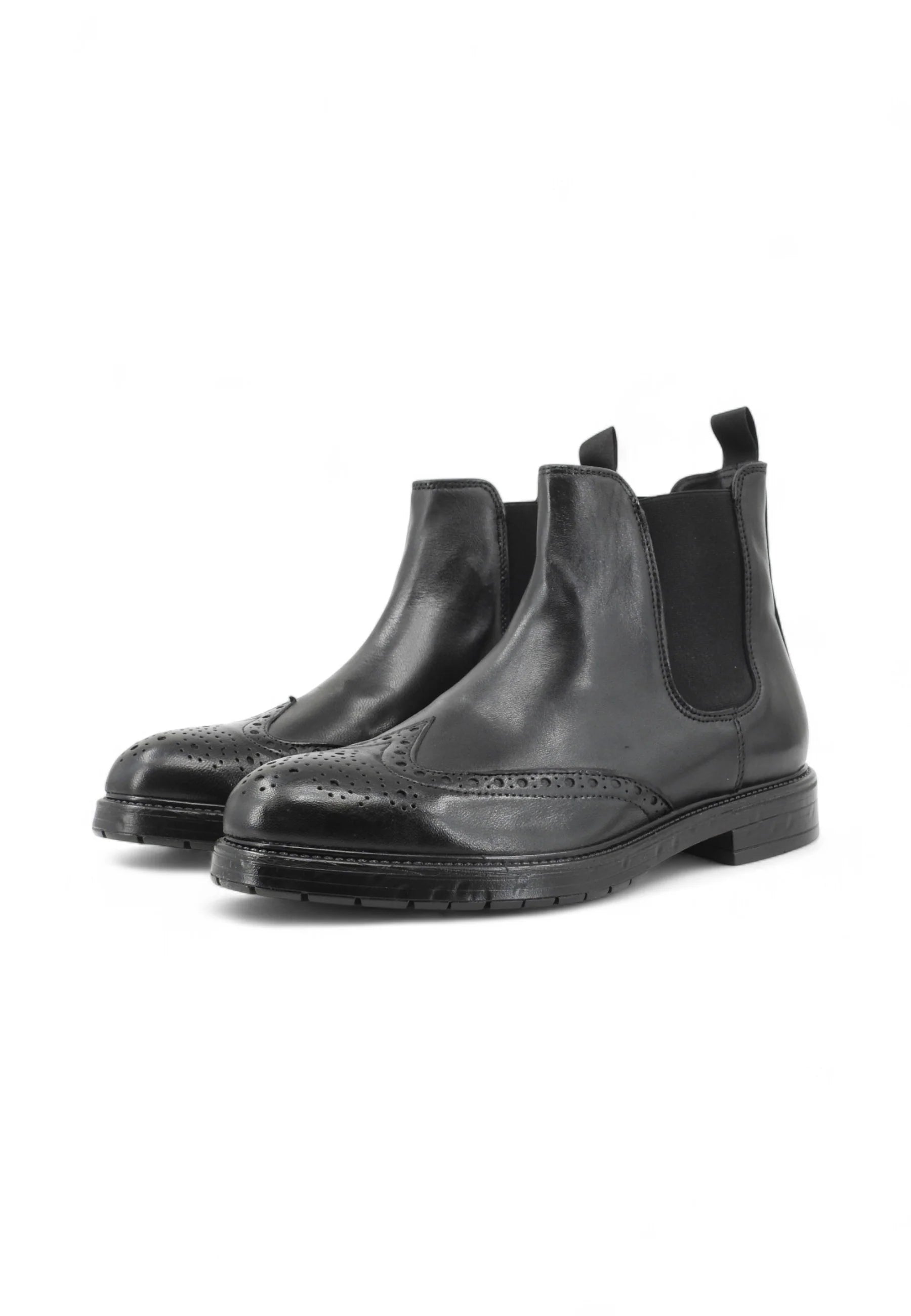 Beatles Chelsea da uomo in pelle nera, con puntale decorato in stile brogue.