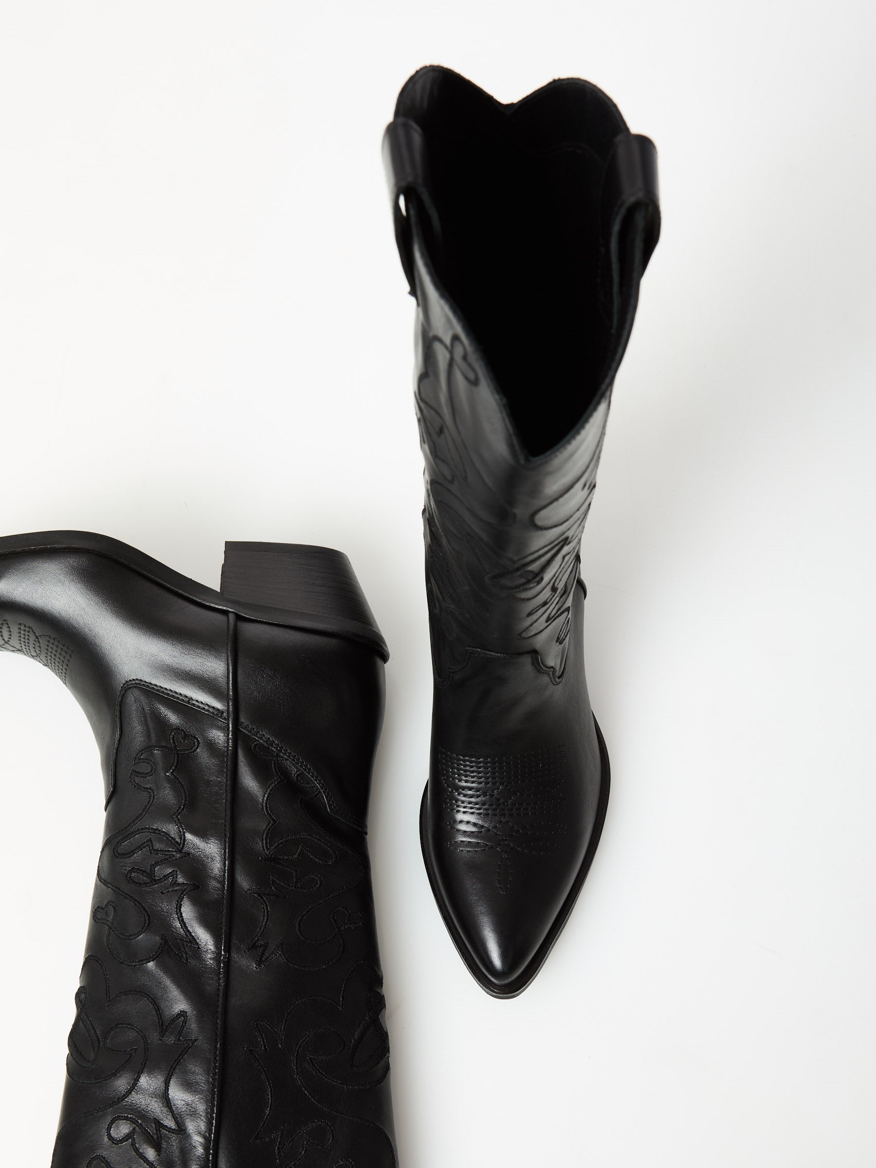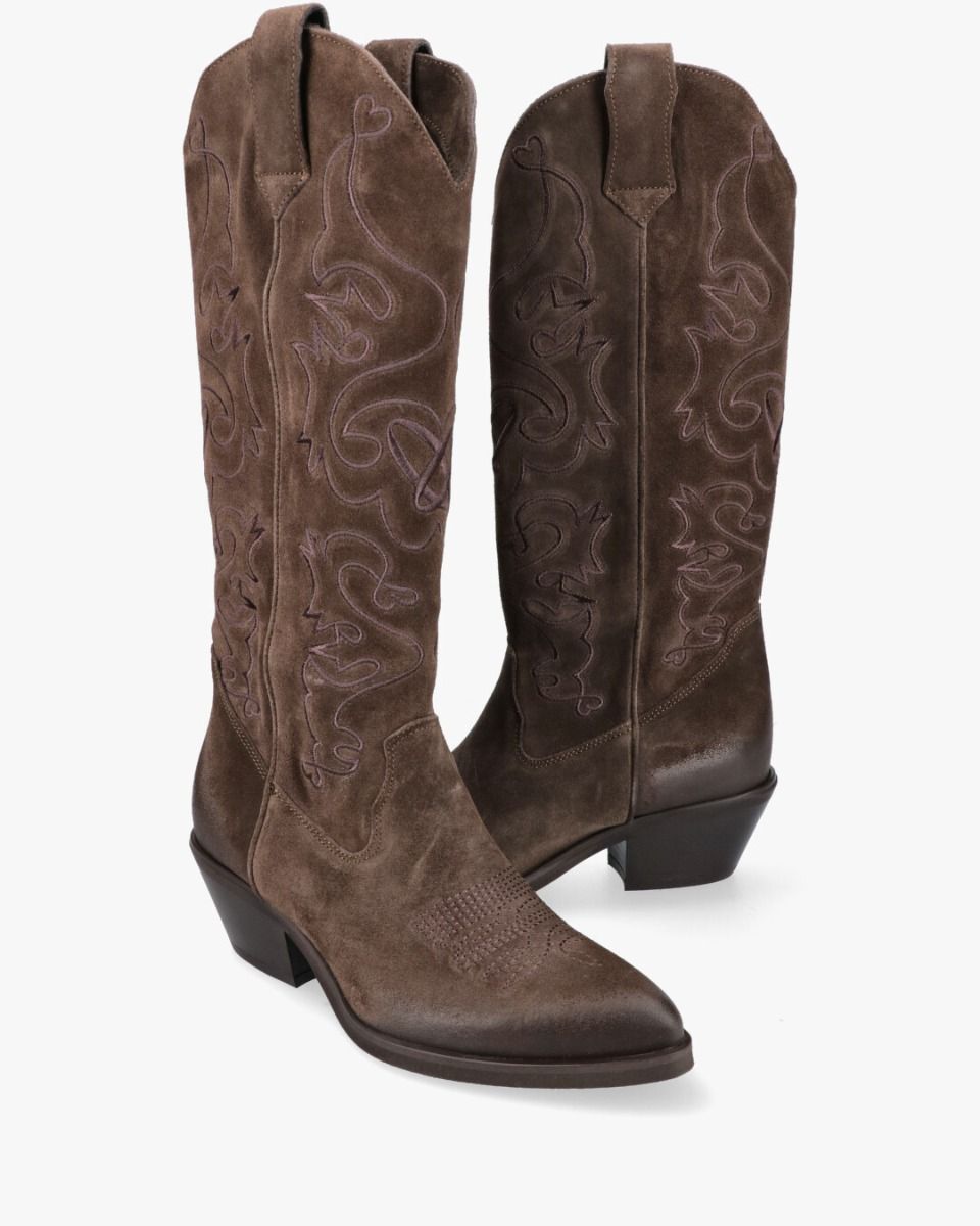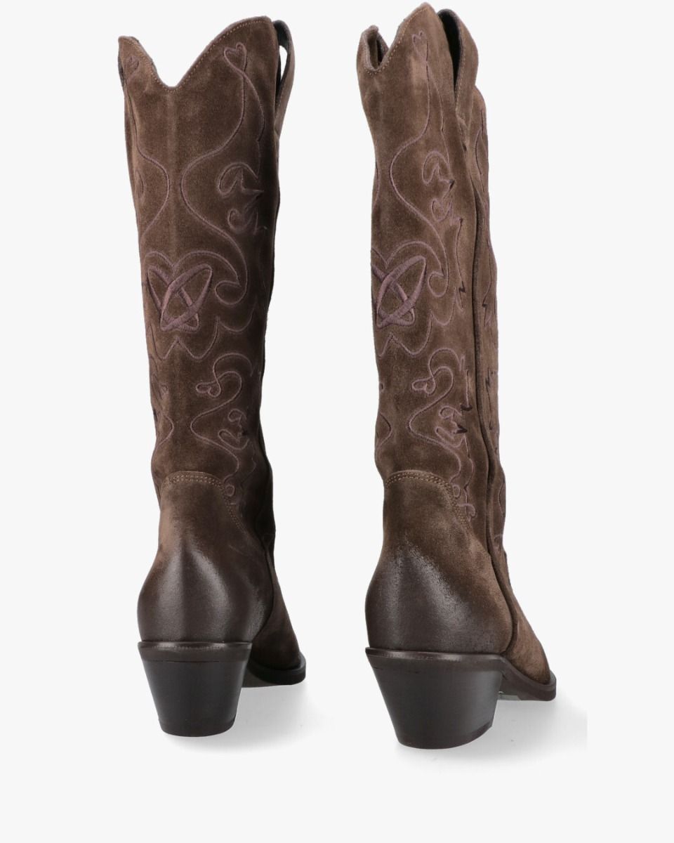 Texano in crosta con tacco 5cm e fondo antiscivolo , gambale impreziosito da ricami alto 32cm .