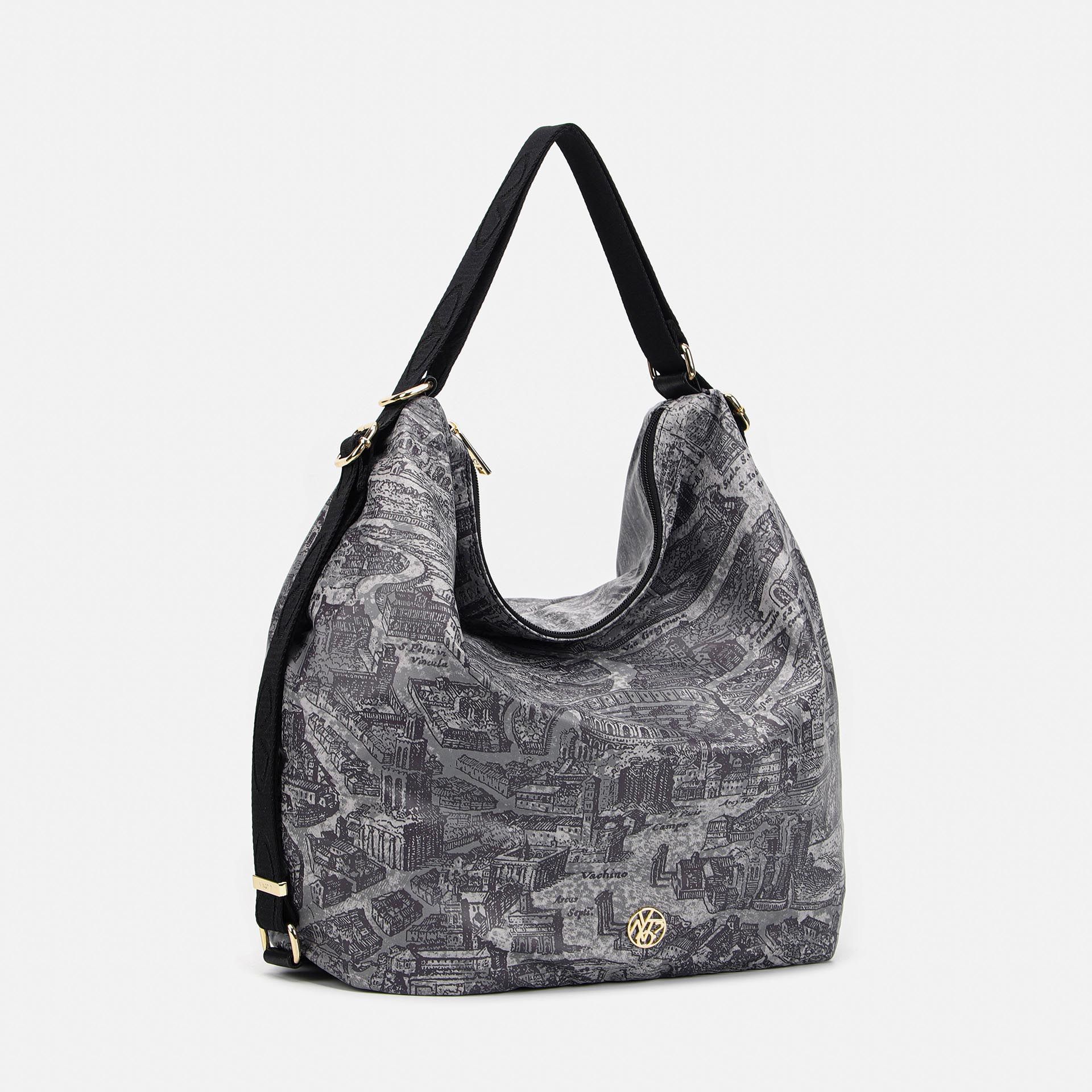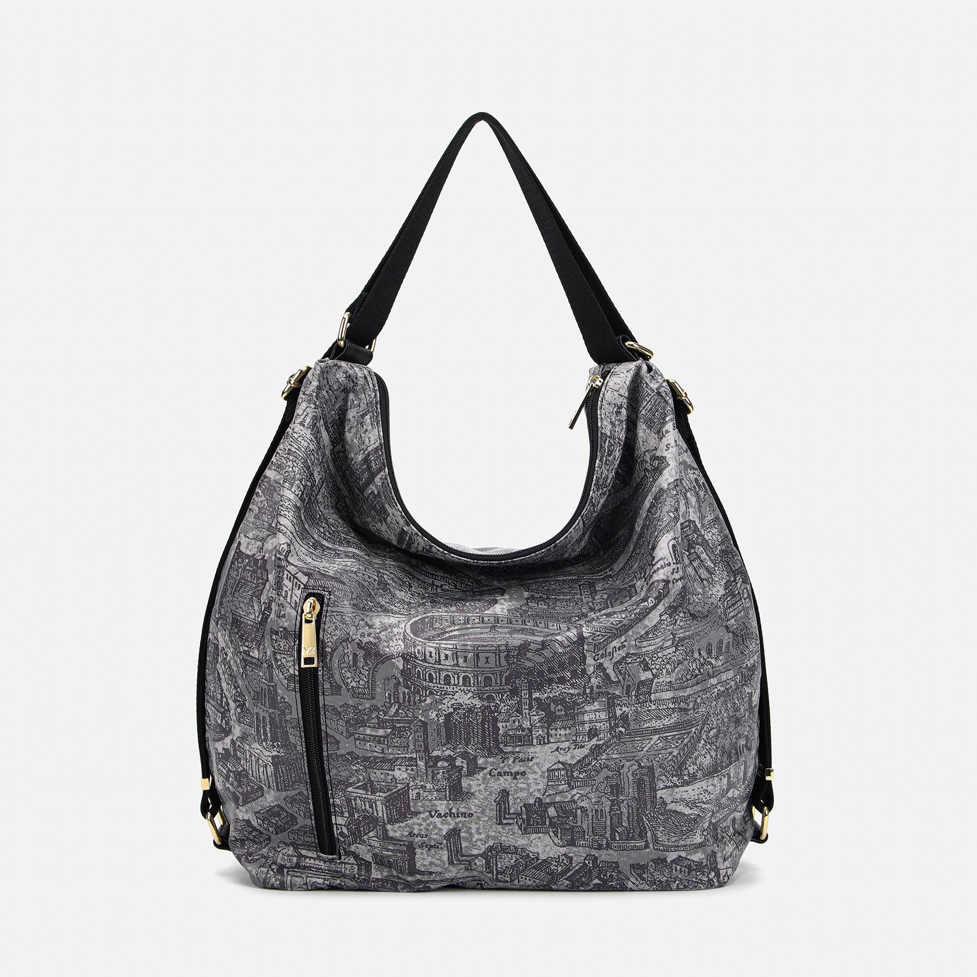 Questa hobo bag è un accessorio versatile e innovativo, pensata per chi cerca praticità senza rinunciare allo stile. Realizzata in nylon resistente e morbido al tatto, la borsa si trasforma facilmente in uno zaino grazie ai nastri laterali, che, tirandoli, diventano gli spallacci regolabili. Il design fluido e capiente offre una grande capacità di contenimento, perfetta per l'uso quotidiano, mentre la possibilità di convertirla in zaino la rende ancora più comoda e funzionale per chi ha bisogno di mani libere. Con un tocco di eleganza e praticità, questa hobo bag-zaino si adatta a qualsiasi look, dal più casual al più sofisticato, diventando un must-have per chi cerca soluzioni smart e alla moda