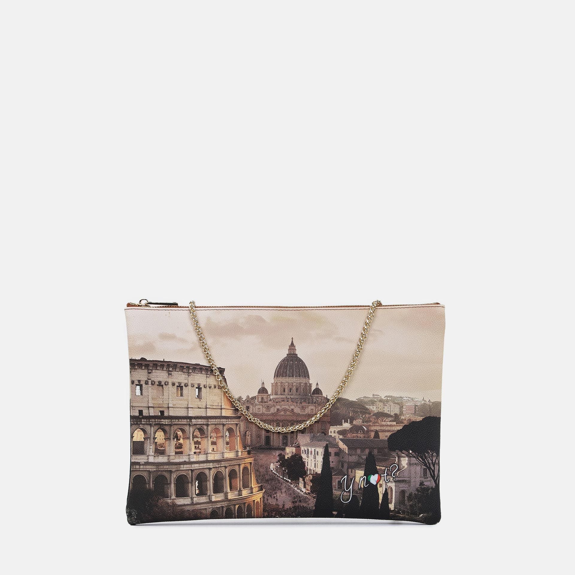La clutch Ynot? con stampa è l’accessorio perfetto per aggiungere un tocco di eleganza e originalità ai tuoi outfit. Realizzata in similpelle con zip superiore, è dotata di una tracolla a catena metallica rimovibile che consente di indossarla sia a mano che a spalla. L’interno foderato e organizzato garantisce praticità senza rinunciare allo stile. Un modello raffinato, ideale per serate ed eventi speciali.