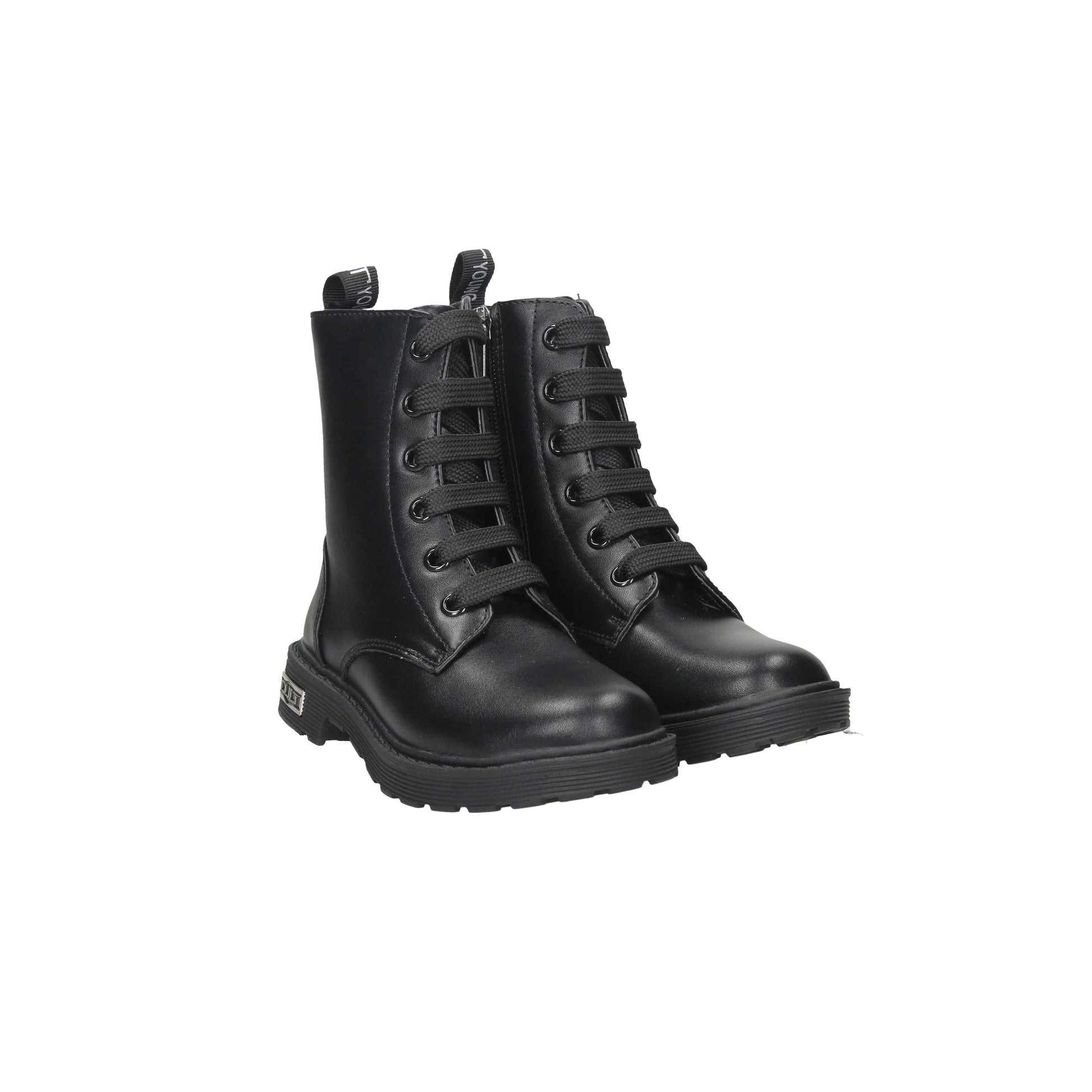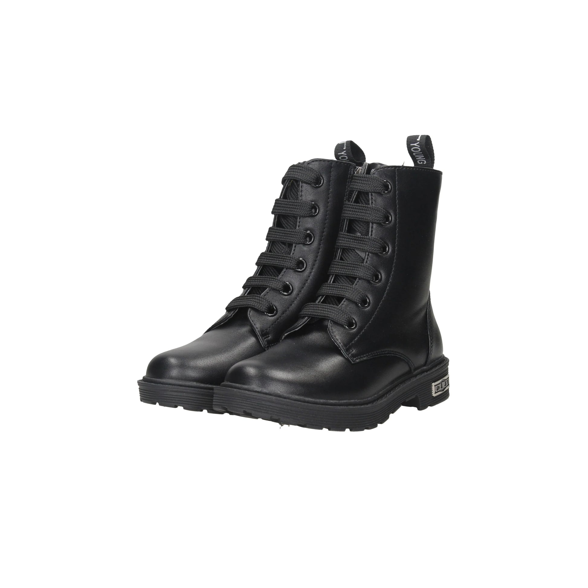Presenta una chiusura con lacci in cotone sul davanti e cerniera laterale nella parte interna, logo in metallo.