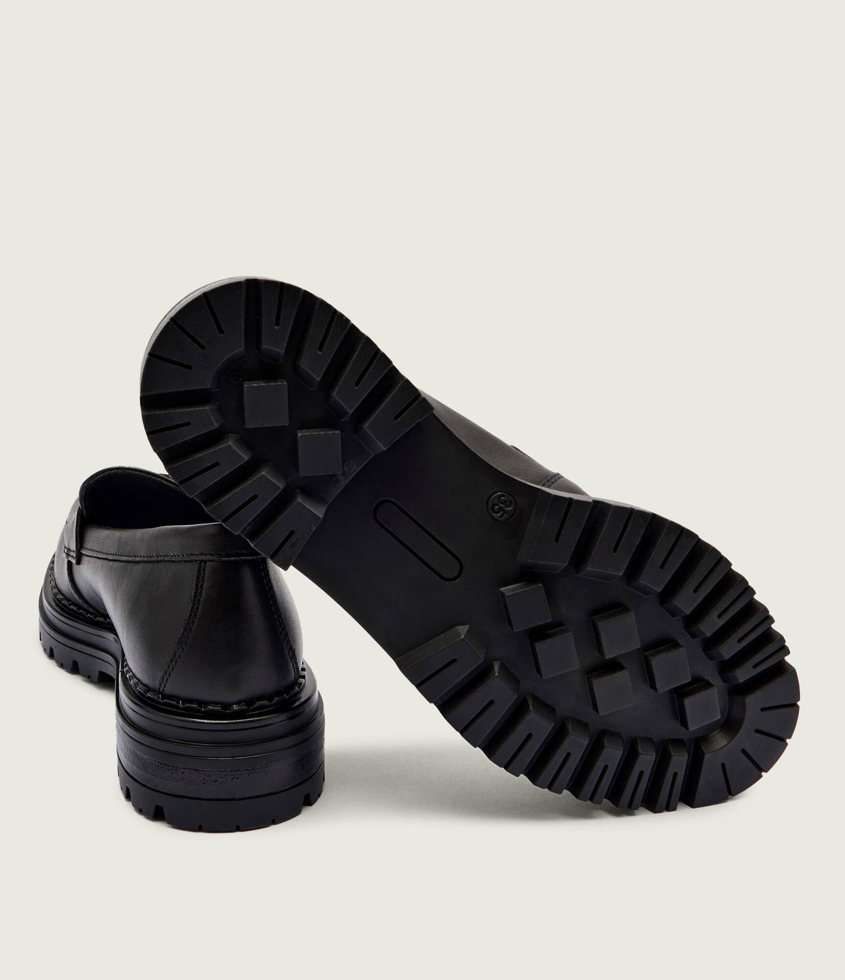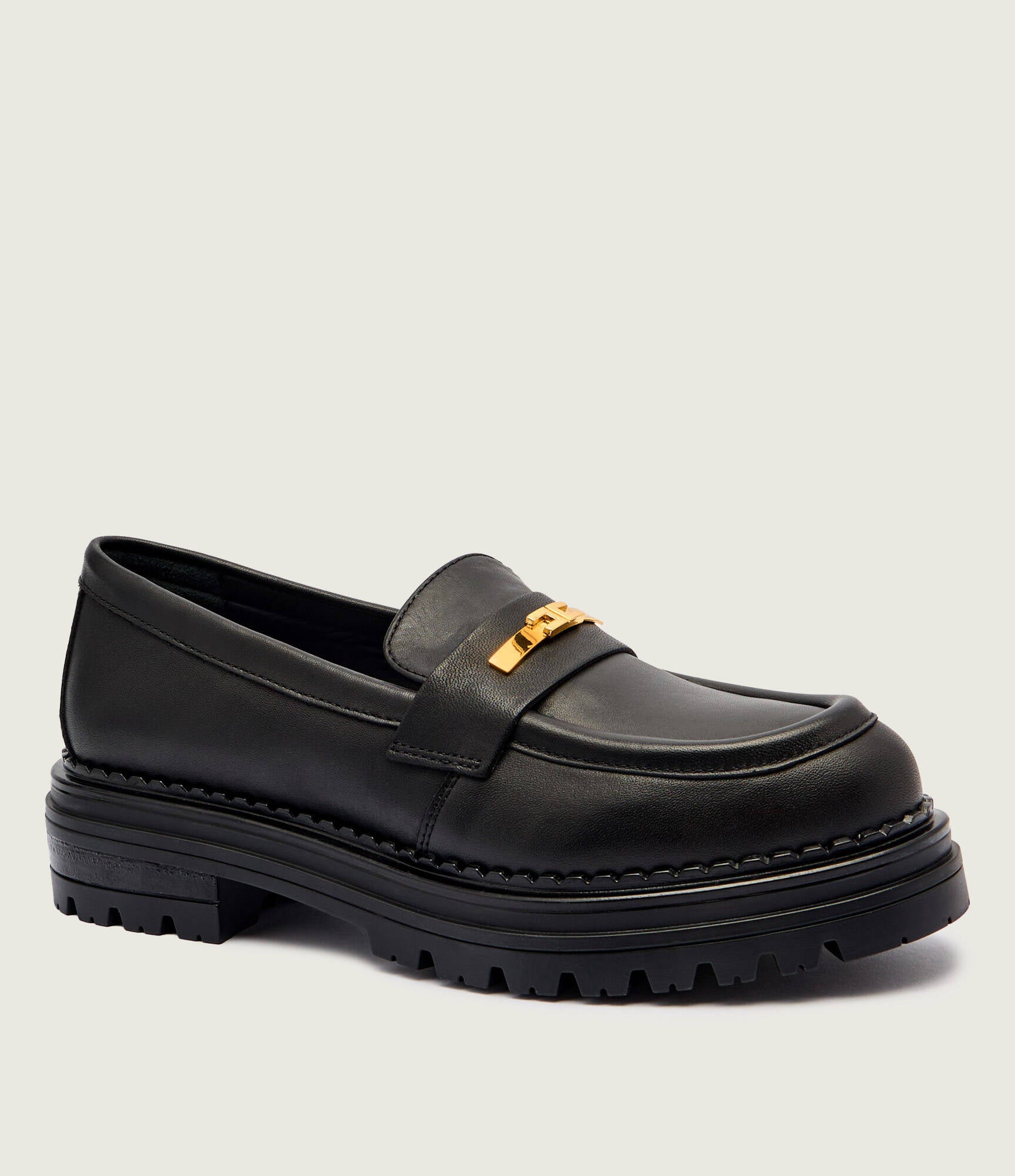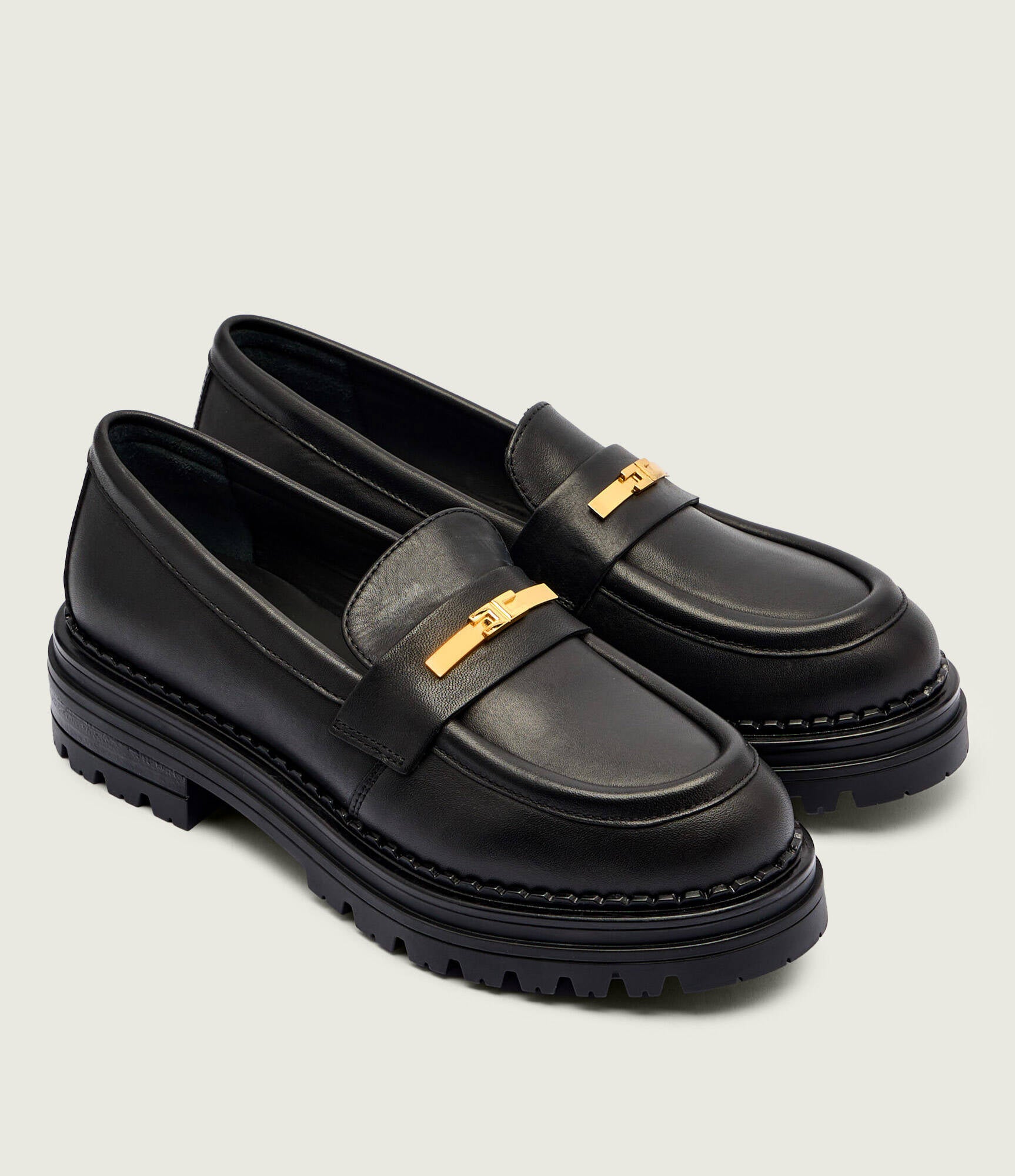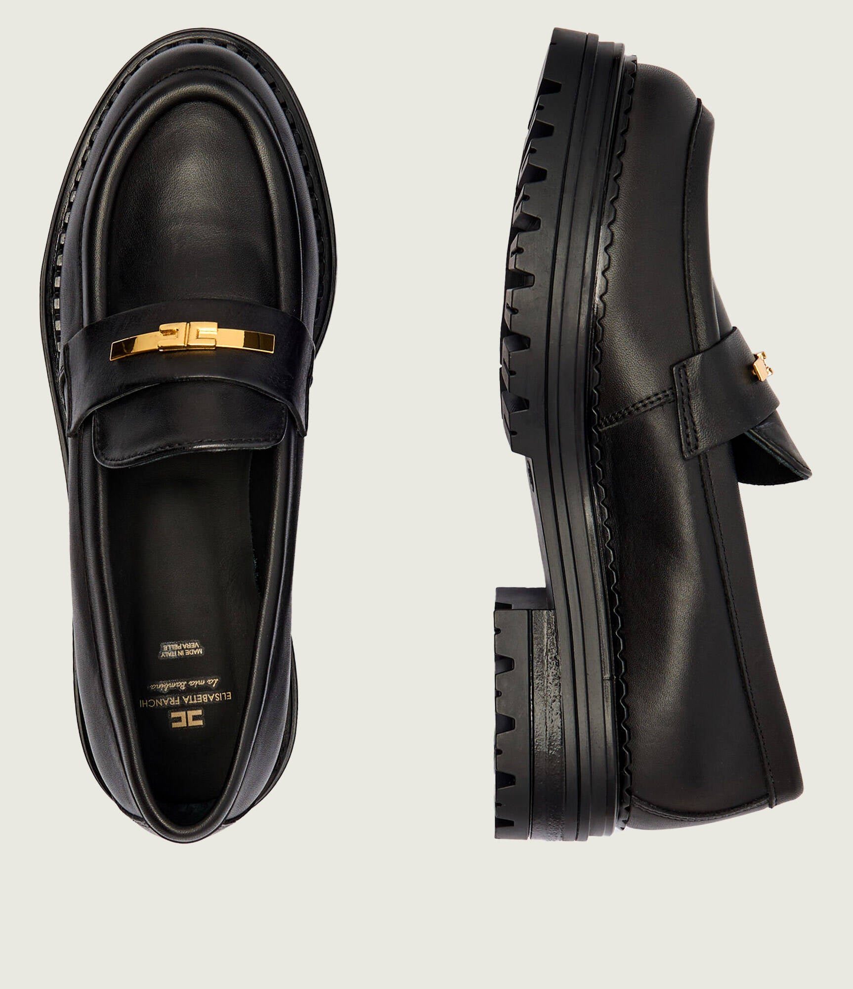 Mocassino nero Elisabetta Franchi in pelle, logo sul collo del piede, fondo in gomma rialzato.