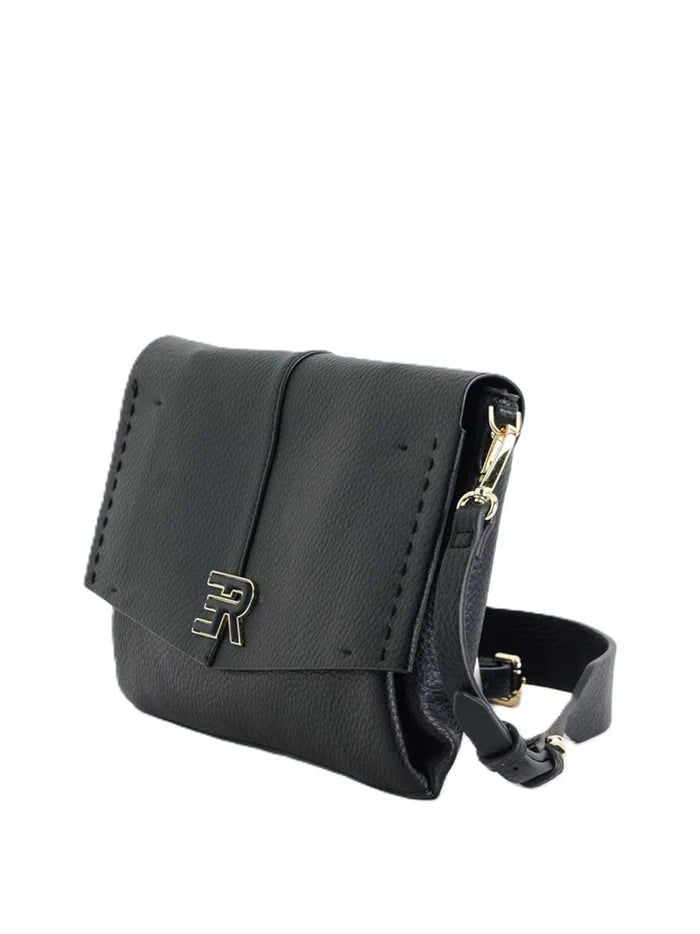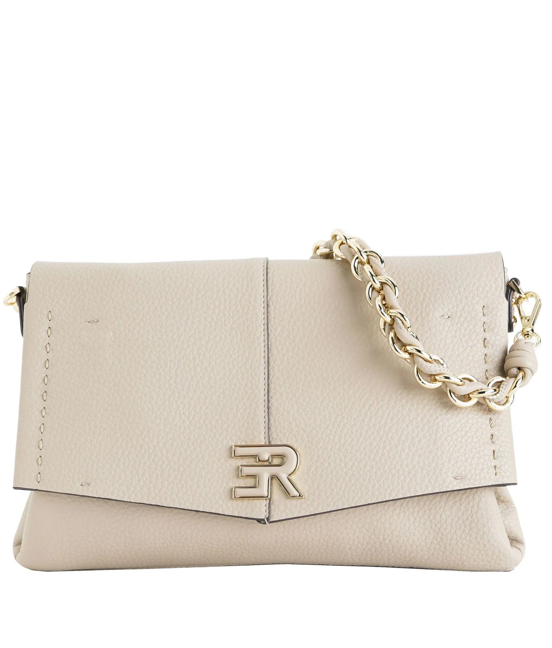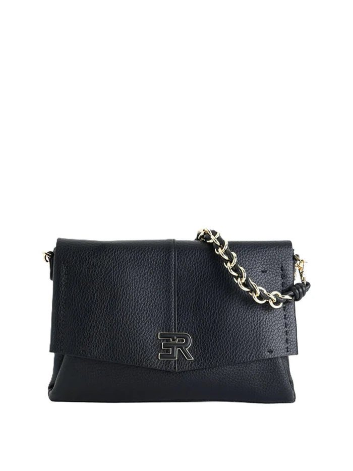 Il logo metallico ER sulla patta frontale con chiusura calamita ,cerniera interna e la tracolla logata “ERMANNO” regalano un tocco iconico e contemporaneo, mentre i dettagli metallici dorati aggiungono luminosità anche sul manico che è removibile .
