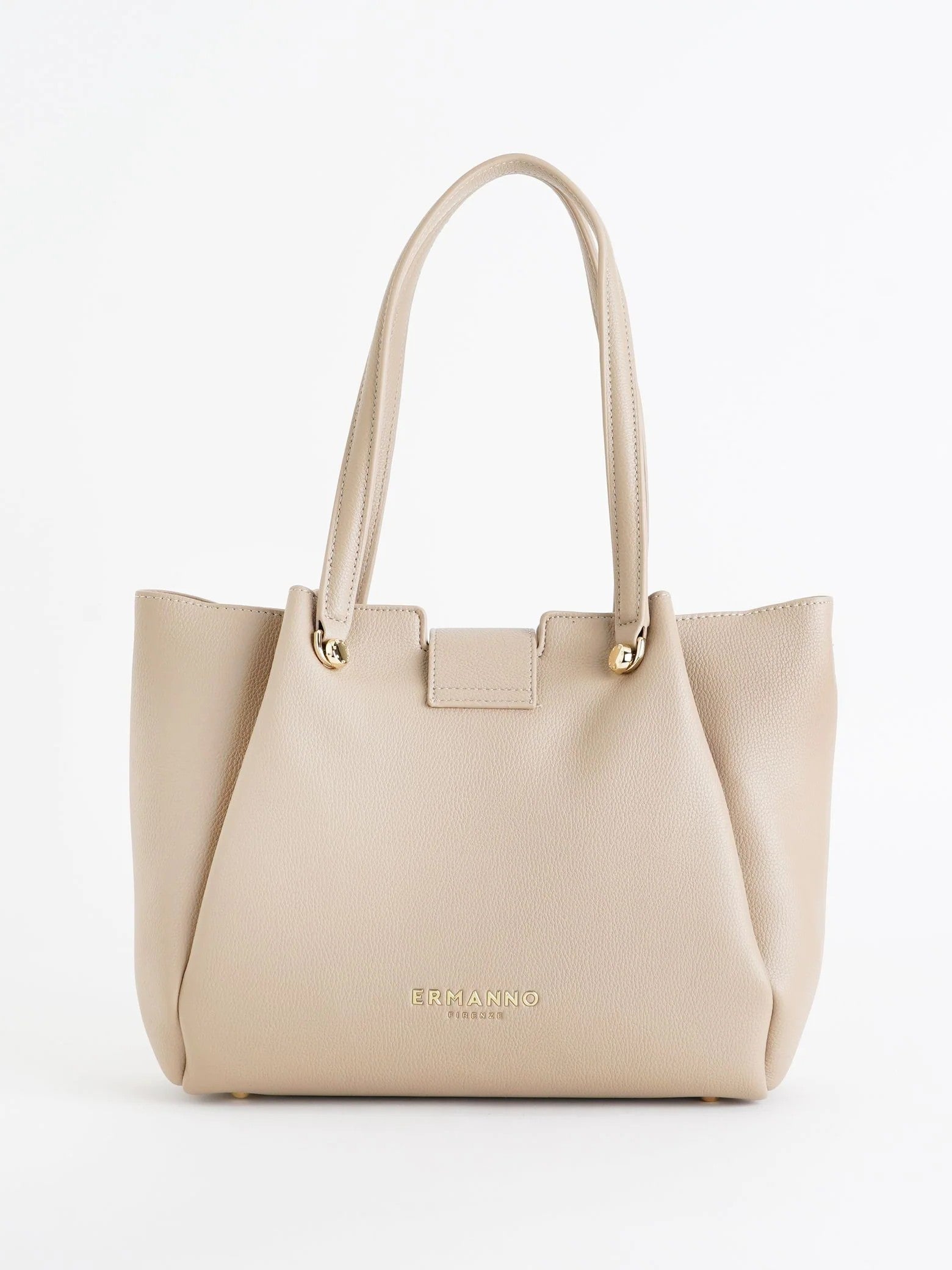La borsa a spalla small tote Bag Vally di Ermanno Firenze è un accessorio elegante e funzionale, pensato per chi desidera stile e praticità in un’unica soluzione. Realizzata in morbida pelle martellata , si distingue per il suo design capiente e lineare, ideale per l’uso quotidiano e per il lavoro. I doppi manici permettono di portarla comodamente a mano, mentre la tracolla logata in tessuto, regolabile e rimovibile, garantisce versatilità e comfort anche a spalla o crossbody. Il logo metallico frontale aggiunge un dettaglio distintivo e sofisticato.