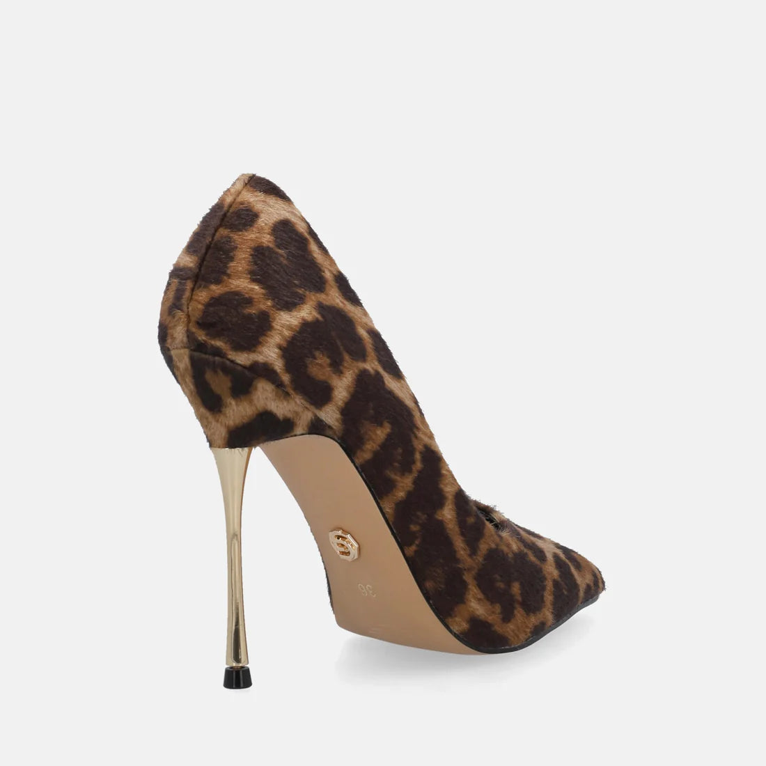 Con il loro design minimal ed essenziale, sono caratterizzate da una tomaia animalier, in simil cavallino, che dona grinta e classe alla linea, mentre il tacco dorato slancia la figura aggiungendo un tocco di luce in più. Dotate infine di un confortevole sottopiede in pelle che garantisce il massimo comfort in ogni passo permettendoti di essere al top in ogni occasione, sia per un aperitivo in città o per una cena galante.