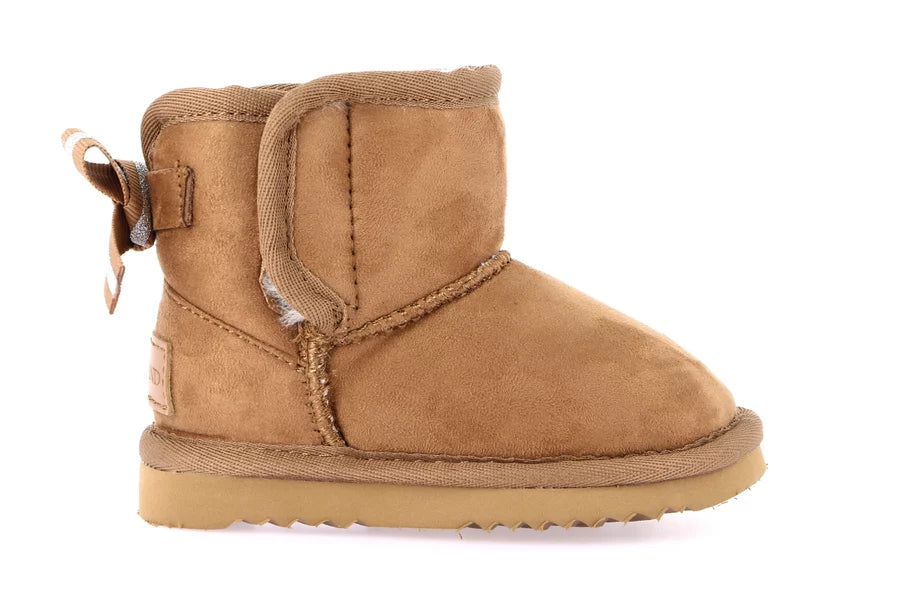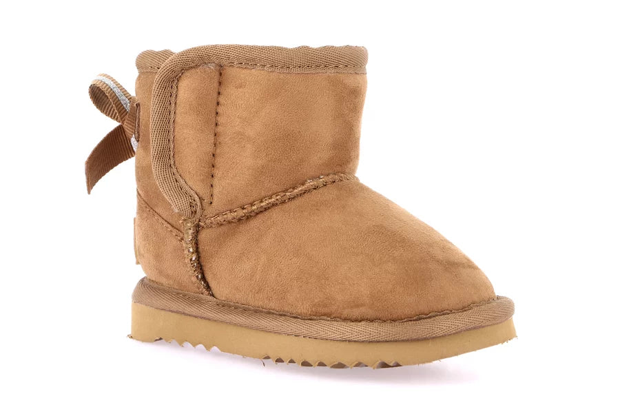 Tronchetti da bimba in pelliccia sintetica. Sono abbelliti con un fiocco sul tallone. I caldissimi materiali impiegati per la realizzazione assicurano un comfort incredibile anche nella stagione fredda.