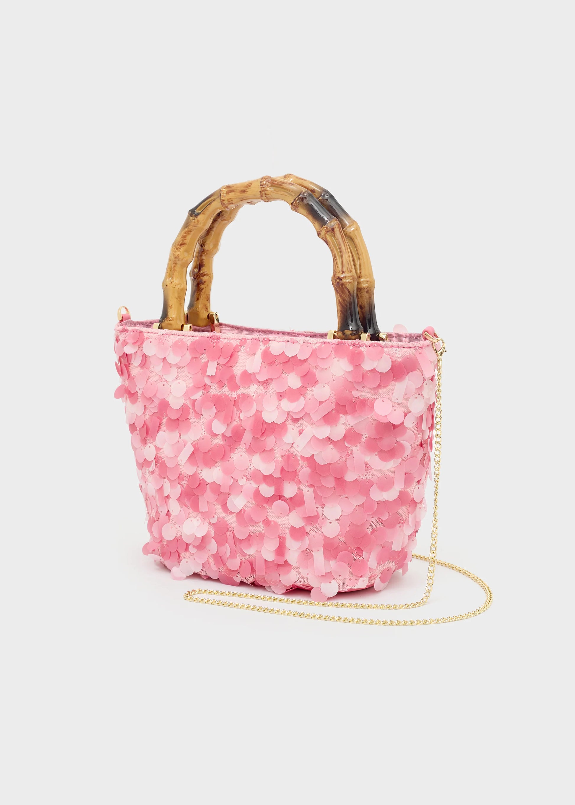 Borsa Nizza bamboo paillettes. Tracolla removibile.