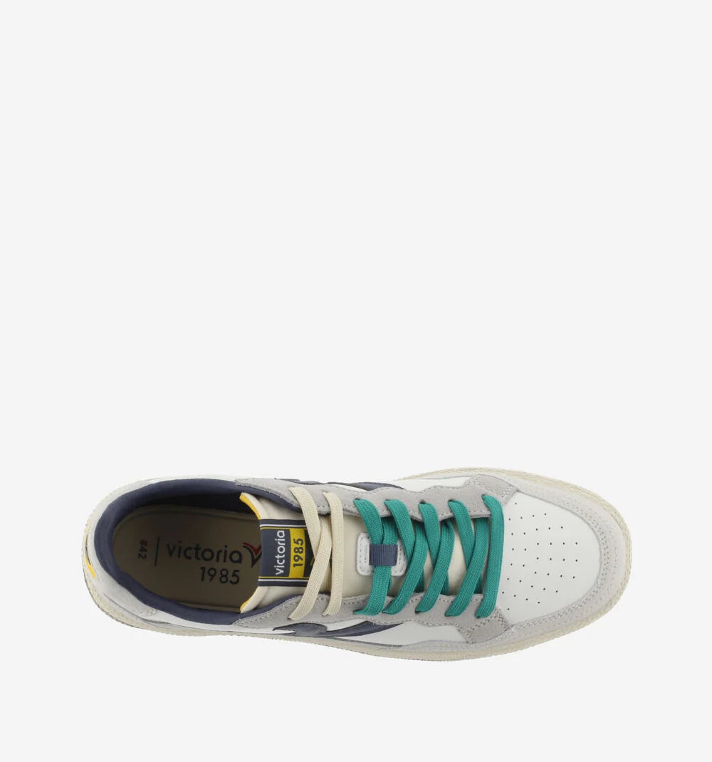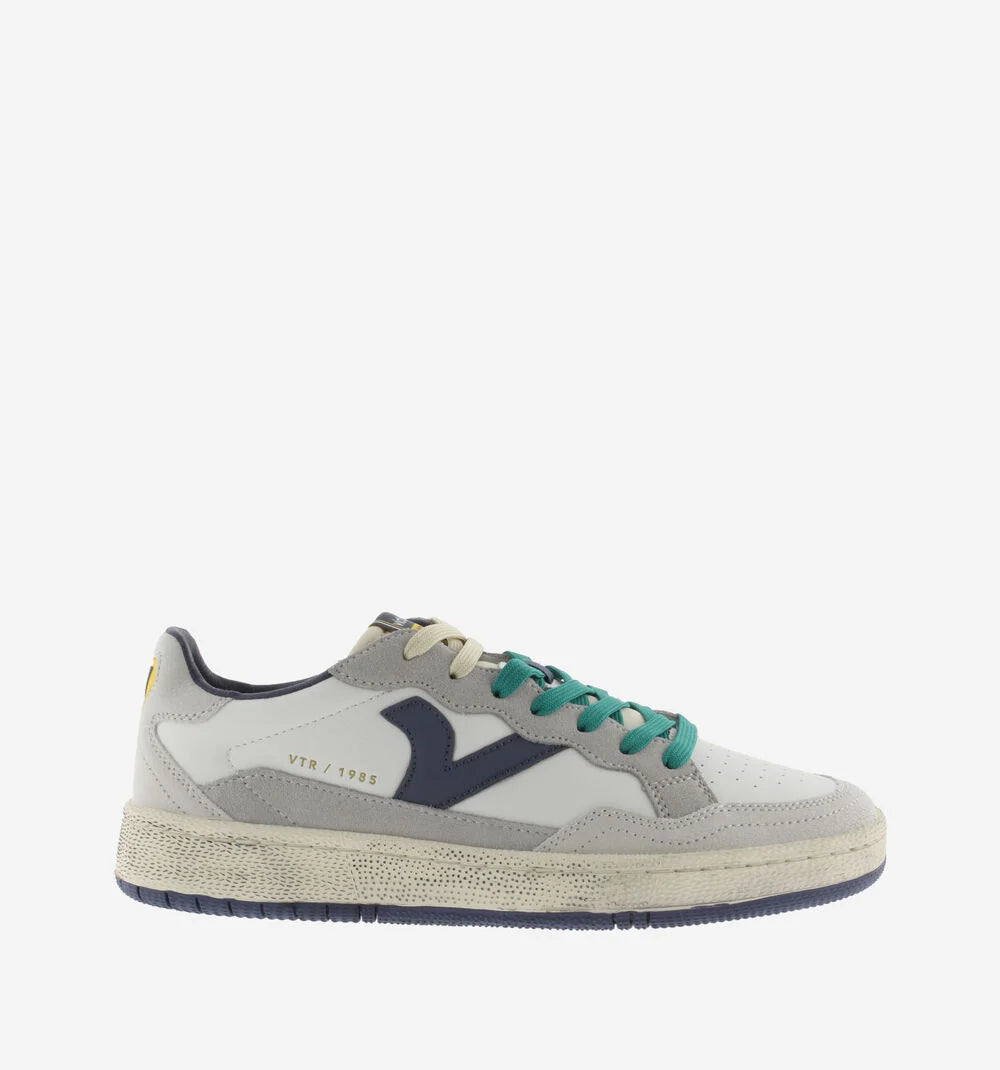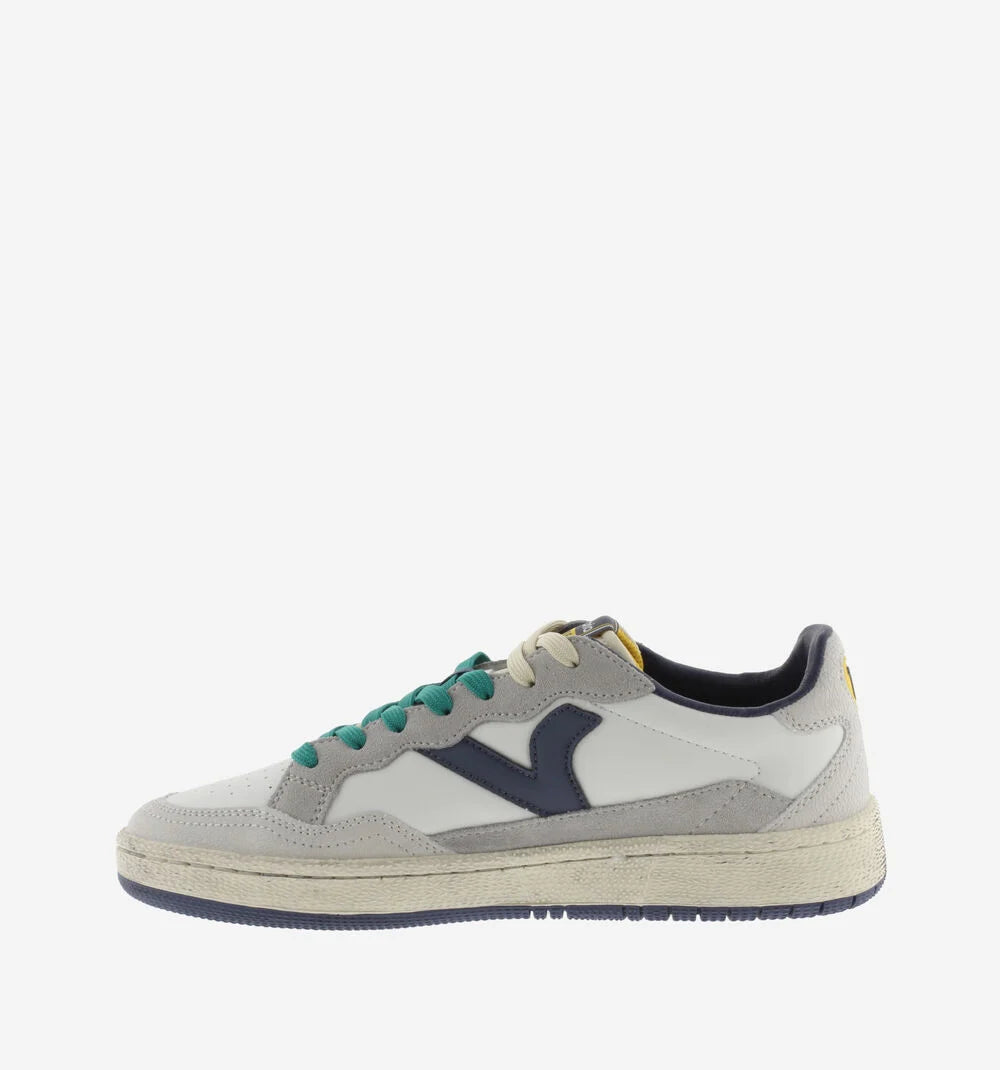 Scarpe sportive unisex realizzate in pelle con dettagli in PU. Chiusura con lacci bicolore. Etichetta in gomma sul tallone. Fodera in microfibra traspirante. Suola bicolore in gomma con finitura invecchiata e texture rugosa. Include inoltre una soletta ergonomica che si adatta alla forma del piede, offrendo una sensazione di comfort.