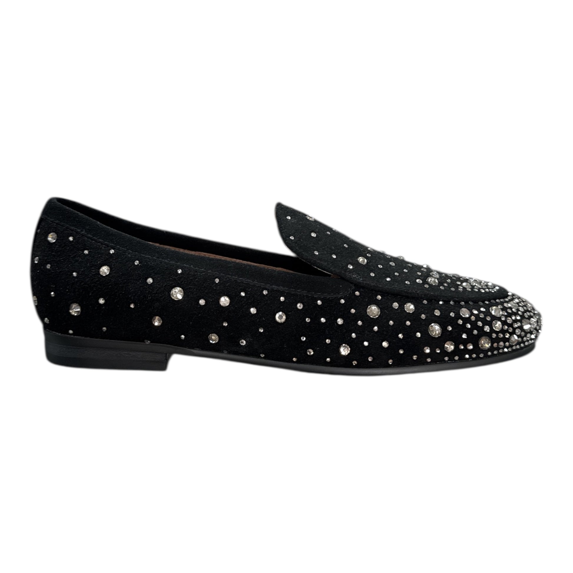 Mocassini da donna in pelle scamosciata di Bibi Lou. Modello Mizar Loafers 15 con punta tonda e glitter e tacco piatto di 1,5 cm.