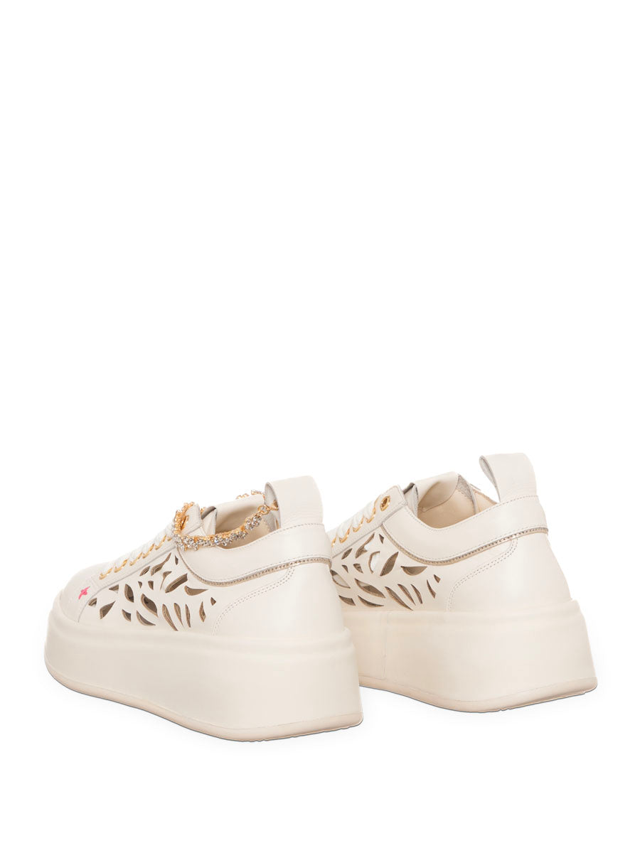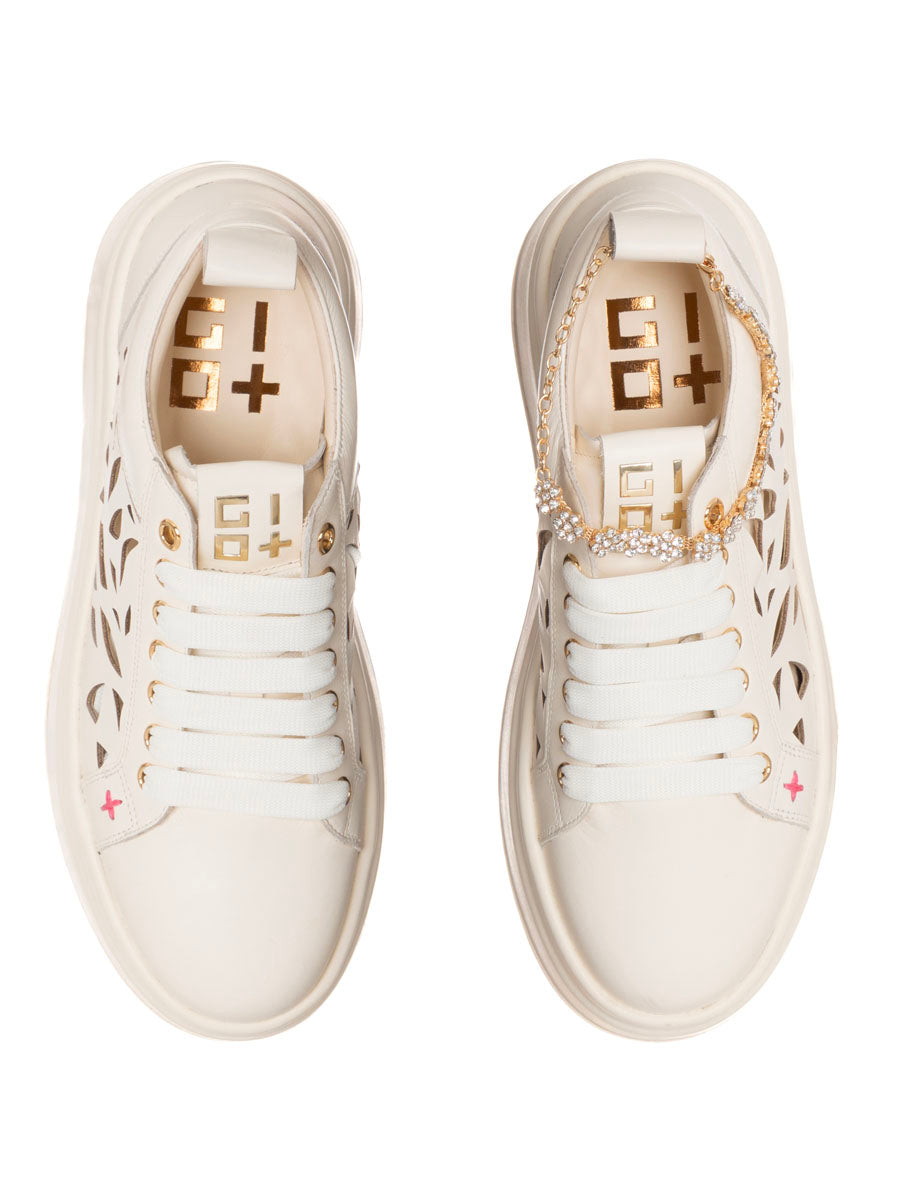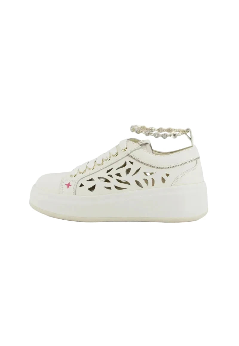 Aggiungi un tocco di eleganza ai tuoi outfit casual con le sneaker OLIVA di GIO +. Realizzate in pelle intagliata e con chiusura a laccio arricchita da una splendida cavigliera gioiello removibile , queste sneakers sono perfette per un look sofisticato. Il sottopiede imbottito in pelle assicura comfort, mentre il fondo in gomma con para alta 5 cm aggiunge un tocco di stile.