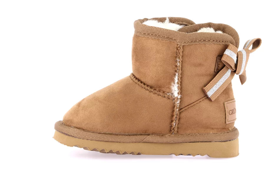 Tronchetti da bimba in pelliccia sintetica. Sono abbelliti con un fiocco sul tallone. I caldissimi materiali impiegati per la realizzazione assicurano un comfort incredibile anche nella stagione fredda.
