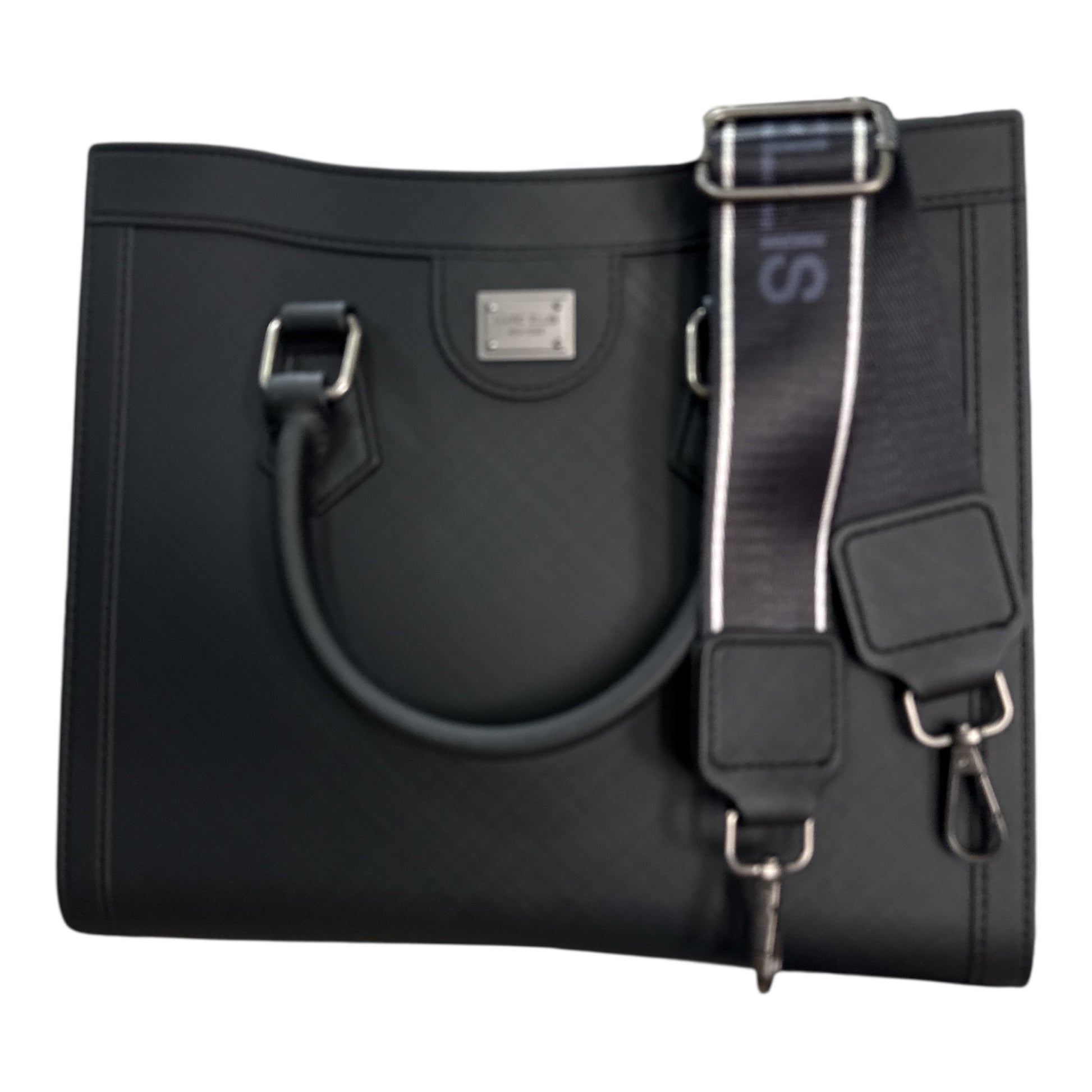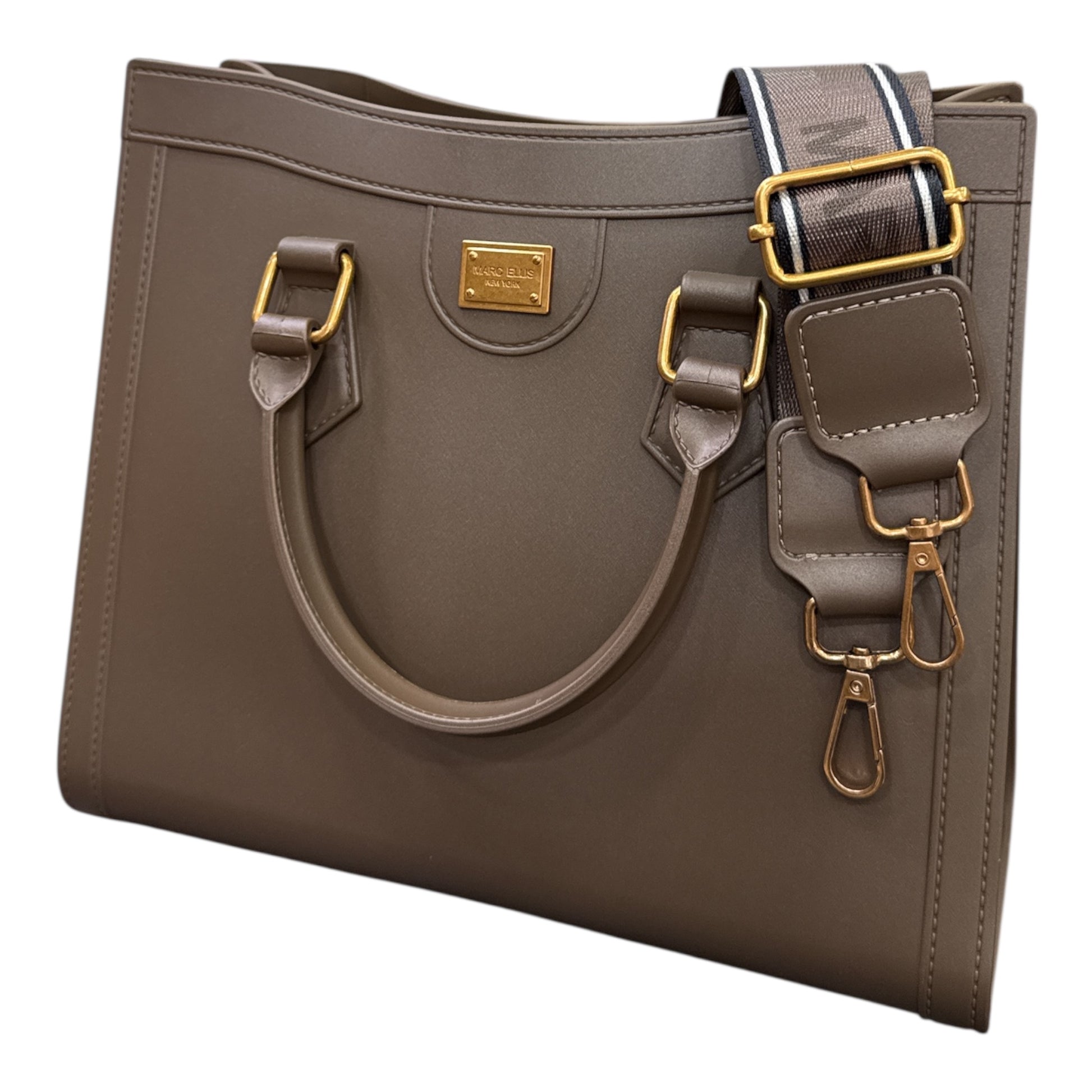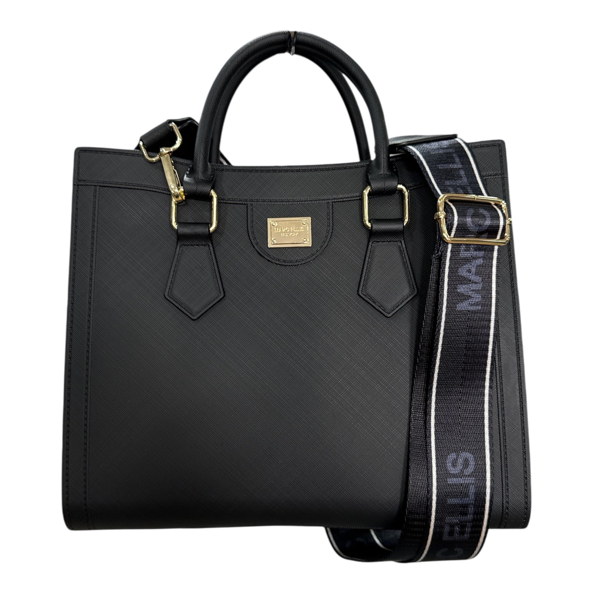 Borsa a mano Flat Lively Medium in pvc saffiano con manici fissi, tracolla logata rimovibile e logo in metallo. Presenta un unico comparto con chiusura magnetica.
