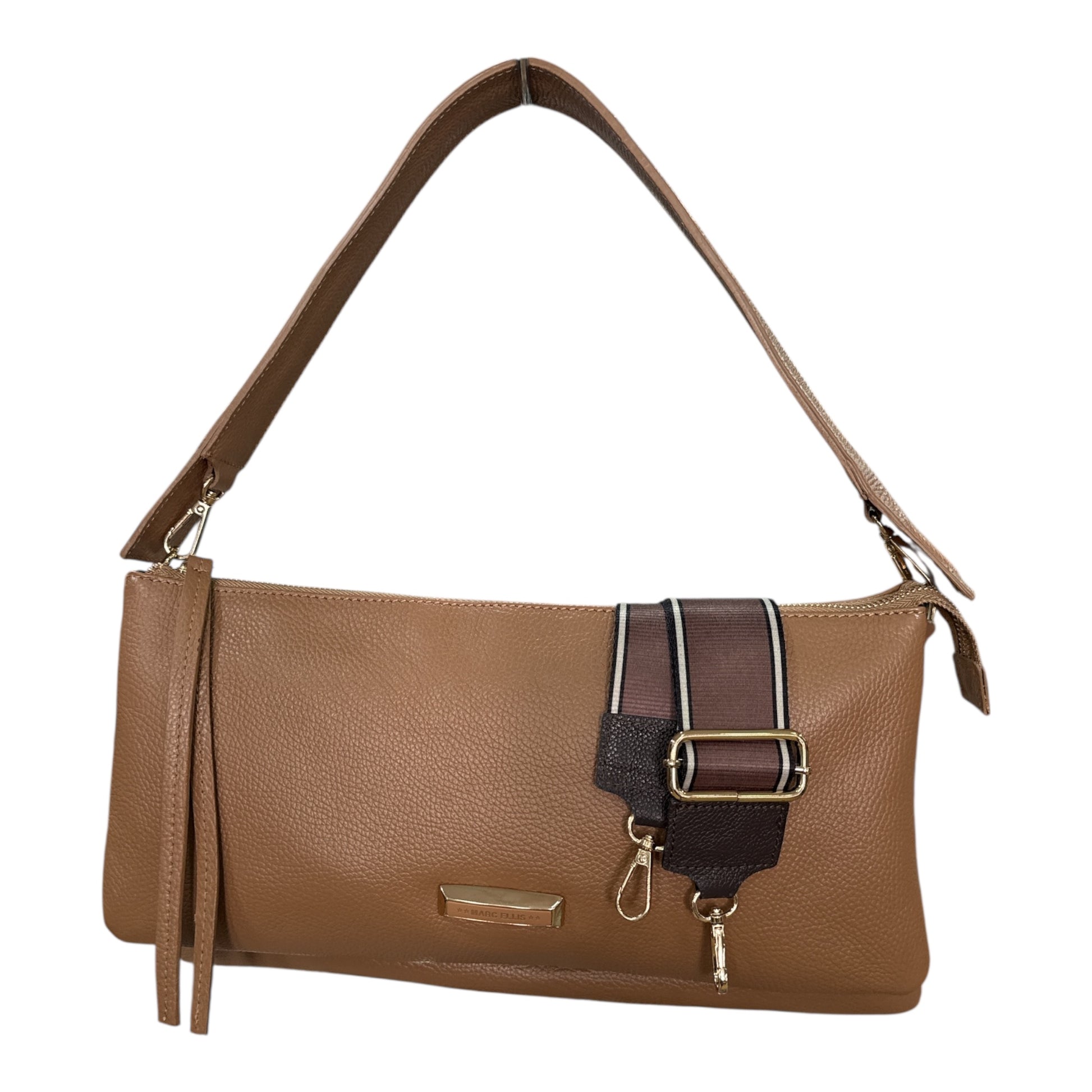 La borsa ORLENA DO di Marc Ellis è un modello dal fascino sofisticato, pensato per chi desidera un accessorio elegante ma pratico da indossare ogni giorno. Realizzata in pregiata pelle martellata, presenta un design strutturato che combina linee essenziali e dettagli raffinati. Il manico superiore removibile permette di portarla a mano per un look classico e femminile, mentre la tracolla regolabile e removibile garantisce la massima versatilità per l’uso a spalla o crossbody. Doppio scomparto interno, chiuso da zip, è perfetto per contenere tutto il necessario senza rinunciare allo stile. L’inconfondibile placca logata Marc Ellis completa il design, rendendola un accessorio distintivo e di carattere.