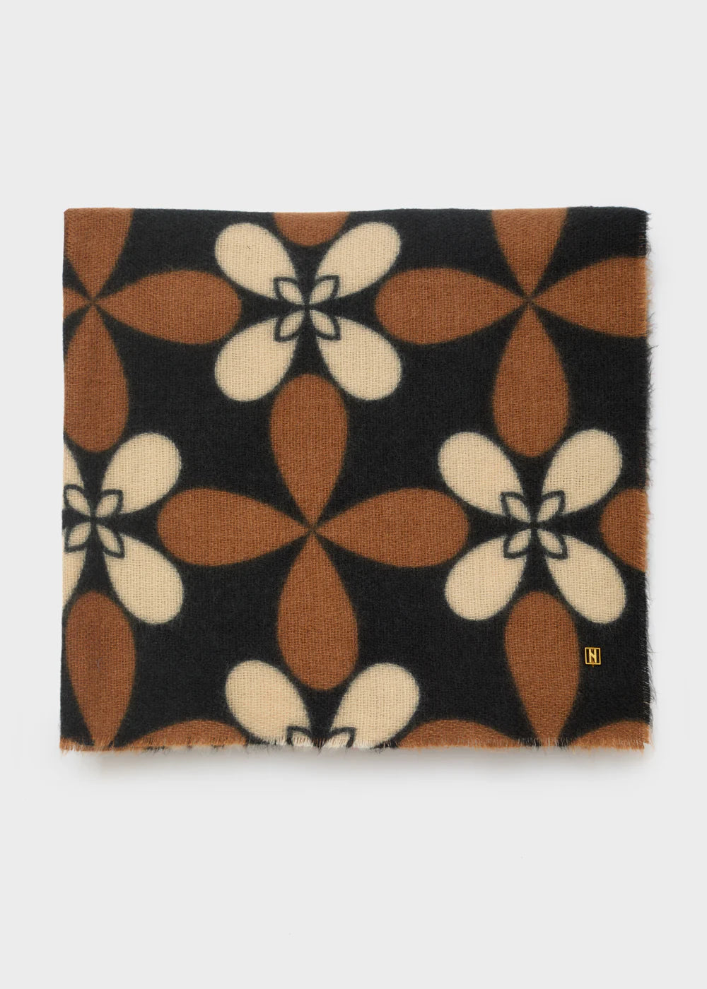 Sciarpa avvolgente in morbido tessuto, caratterizzata da un motivo grafico di tendenza. Un accessorio caldo e stiloso, perfetto per donare personalità ai look invernali.