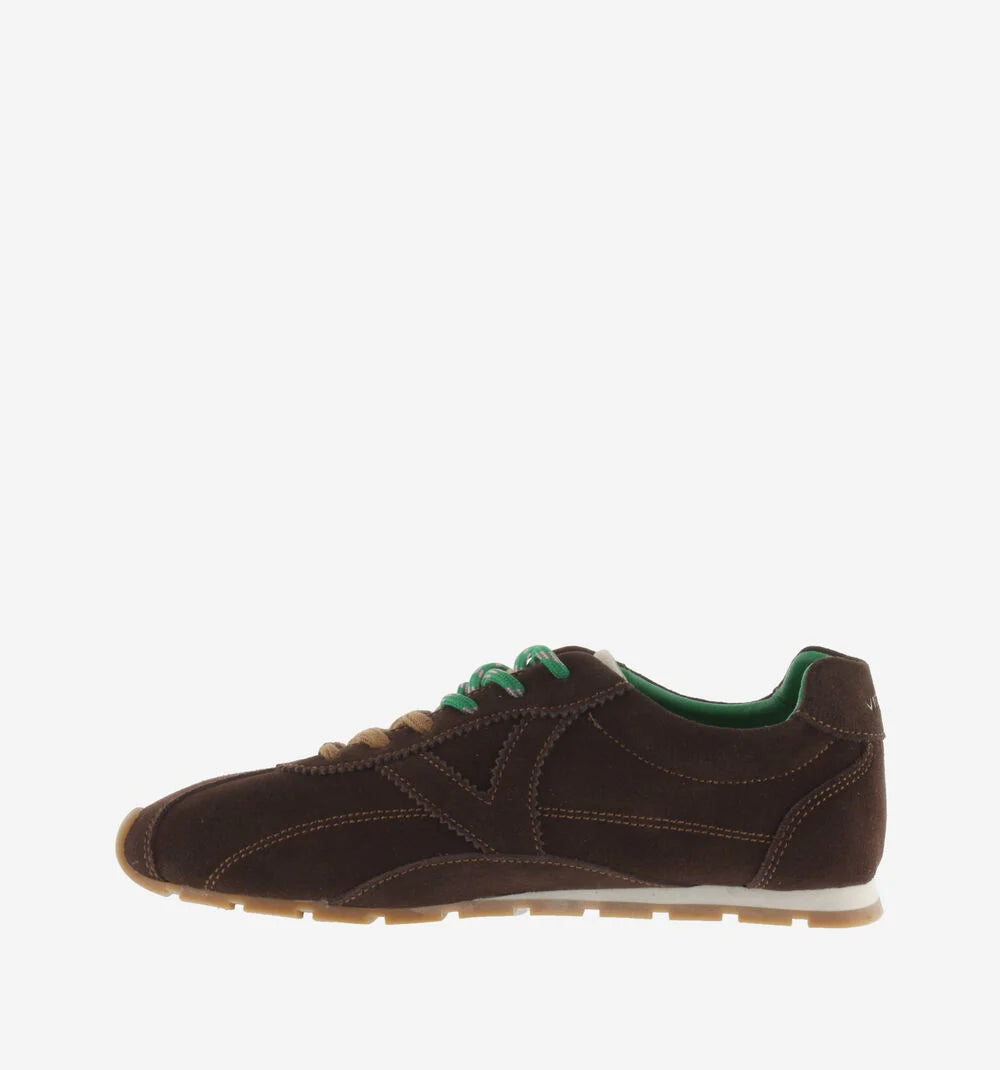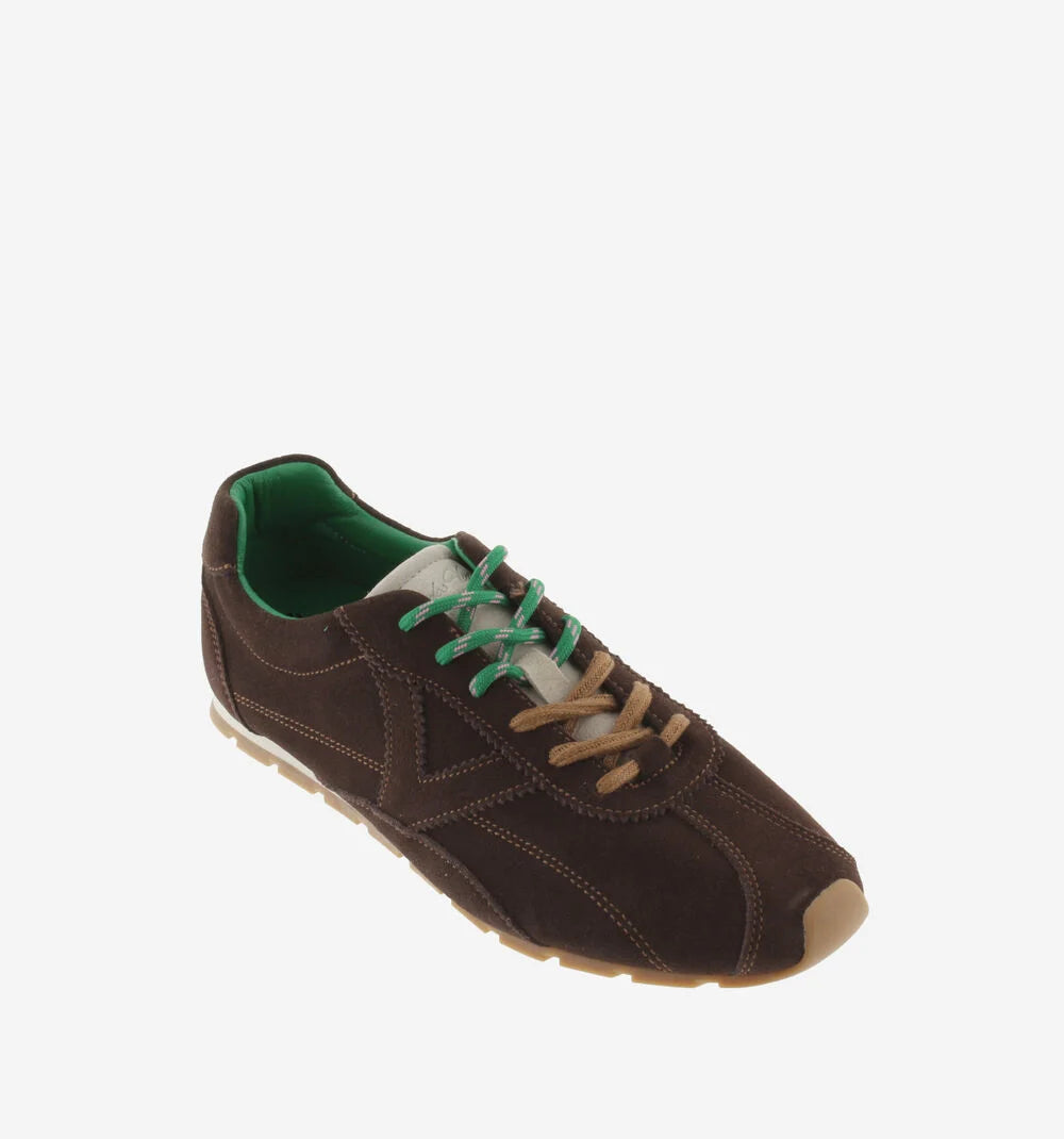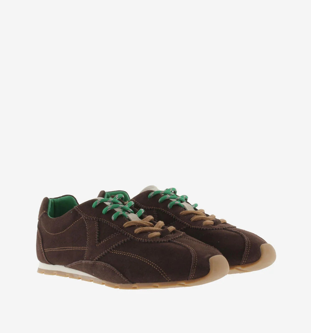 Sneakers da donna in crosta di cuoio con impunture a contrasto. Chiusura con doppio laccio: uno tono su tono e laltro mélange, abbinato alla fodera interna. Logo del marchio ricamato in bianco sulla parte posteriore. Suola bicolore con battistrada dentato color caramello per una migliore aderenza.