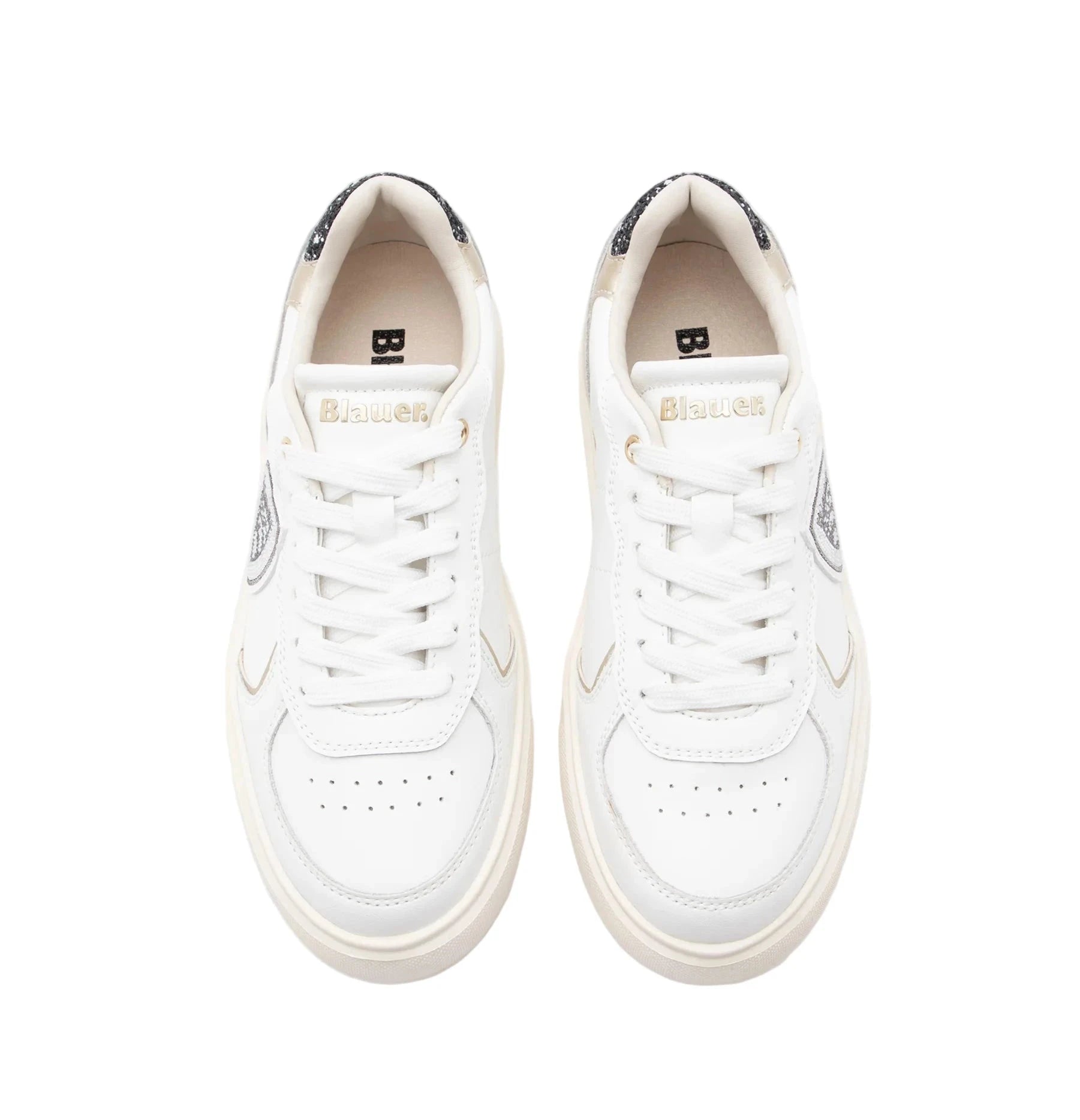 Scarpa donna sneakers, modello con lacci, tomaia in pelle, fodera in tessuto + pelle, plantare estraibile in pelle, suola in gomma.