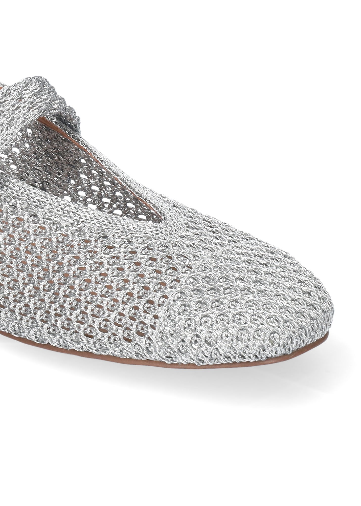 Eleganza e comfort si incontrano in questa raffinata ballerina traforata color argento. Realizzata in maglia intrecciata effetto rete, è leggera e traspirante, perfetta per la stagione primavera/estate. Il cinturino con fibbia tono su tono dona un tocco femminile e assicura una calzata stabile e confortevole per tutto il giorno.