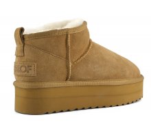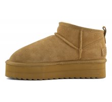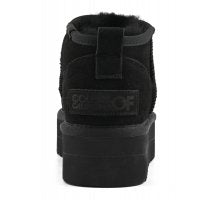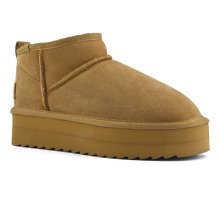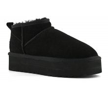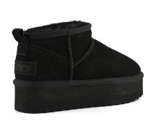 Anche la versione platform dello stivaletto in pelle scamosciata ha la fodera in vero montone. Un modello perfetto per chi preferisce donare al passo slancio senza rinunciare alla comodità e al calore. Ideale con completi di ispirazione baita o con calze in maglia lavorata e micro pants per dare un tocco glamour anche ai look di città più fashionisti.