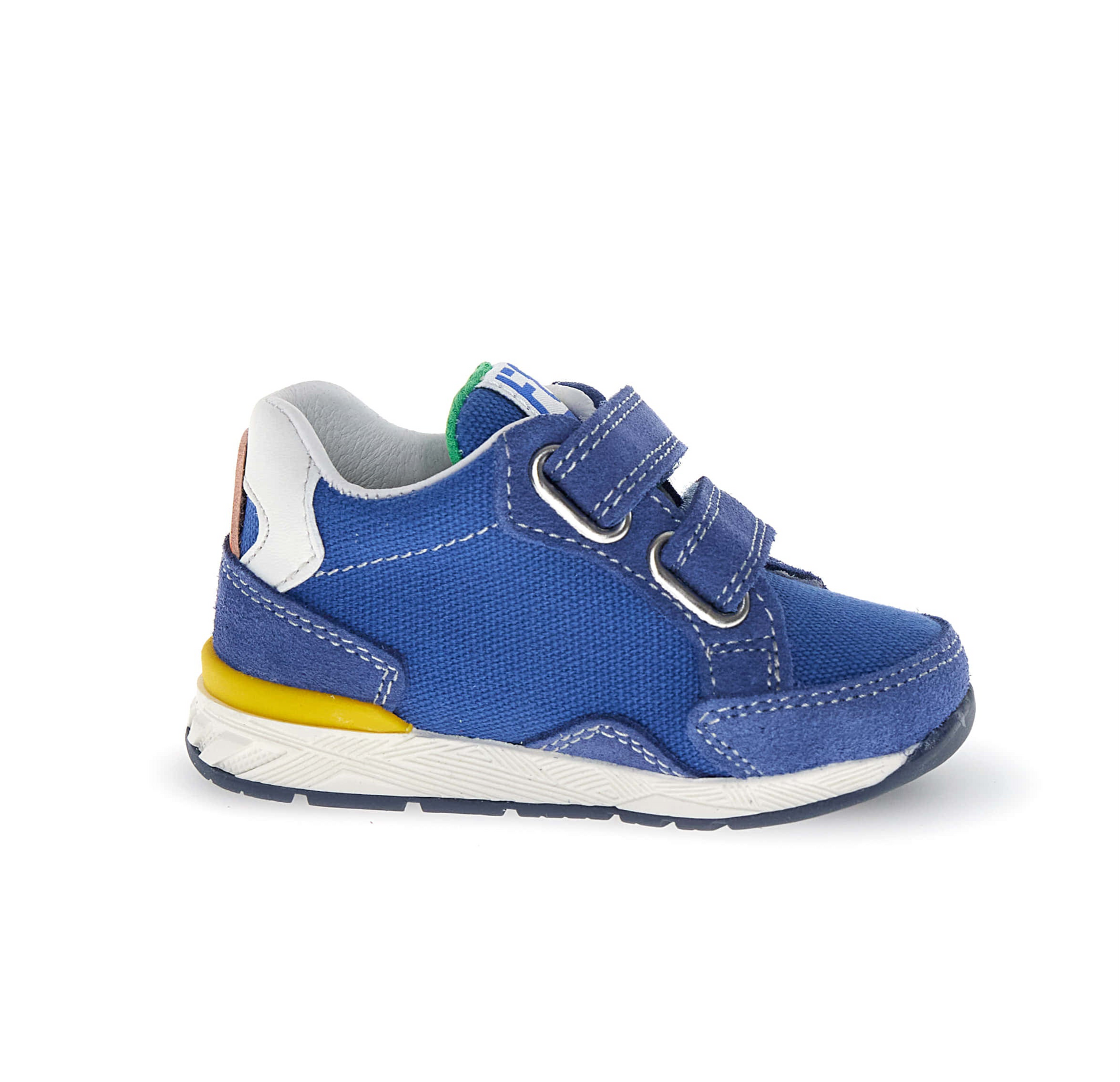 Scopri il mix perfetto di stile e comfort con le sneakers per bambini, realizzate con una tomaia in suede e tessuto jeans . L'esclusiva chiusura con strappo le rende facili da mettere e togliere, pensata appositamente per i piccoli in costante movimento. La soletta interna in pelle e la fodera in pelle e tessuto assicurano un comfort che dura tutto il giorno, perfetto per ogni avventura dei tuoi bambini.