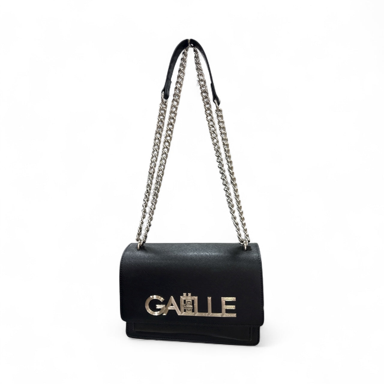 Regular shoulder strap maxi girello nero, logo argento, tracolla con catena argento.