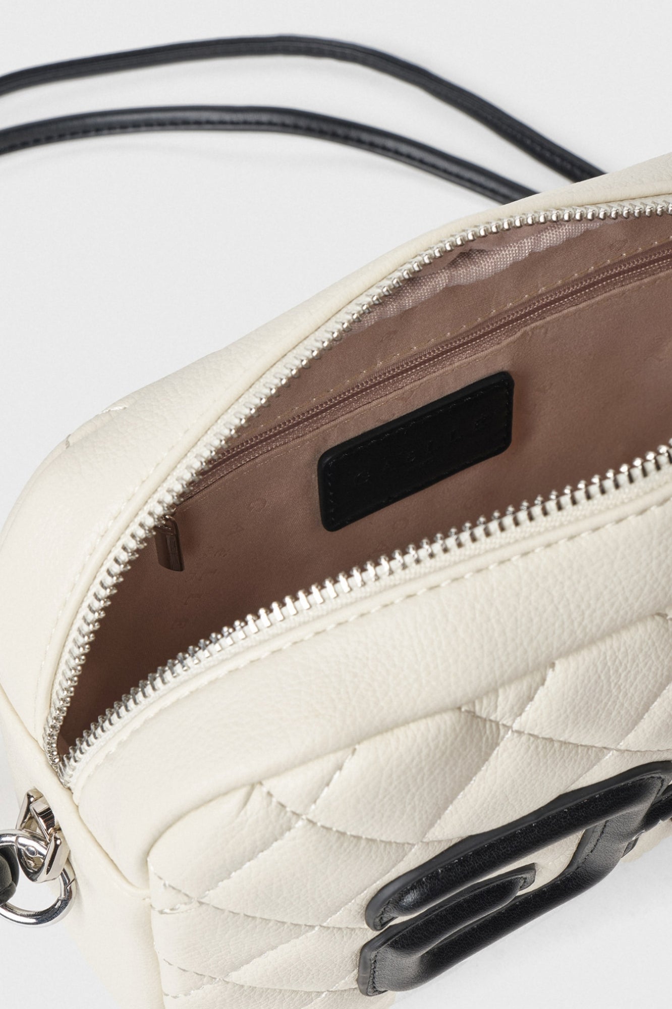 Regular camera bag matelassè e maxi patch double g liscio, chiusura con zip e tracolla.