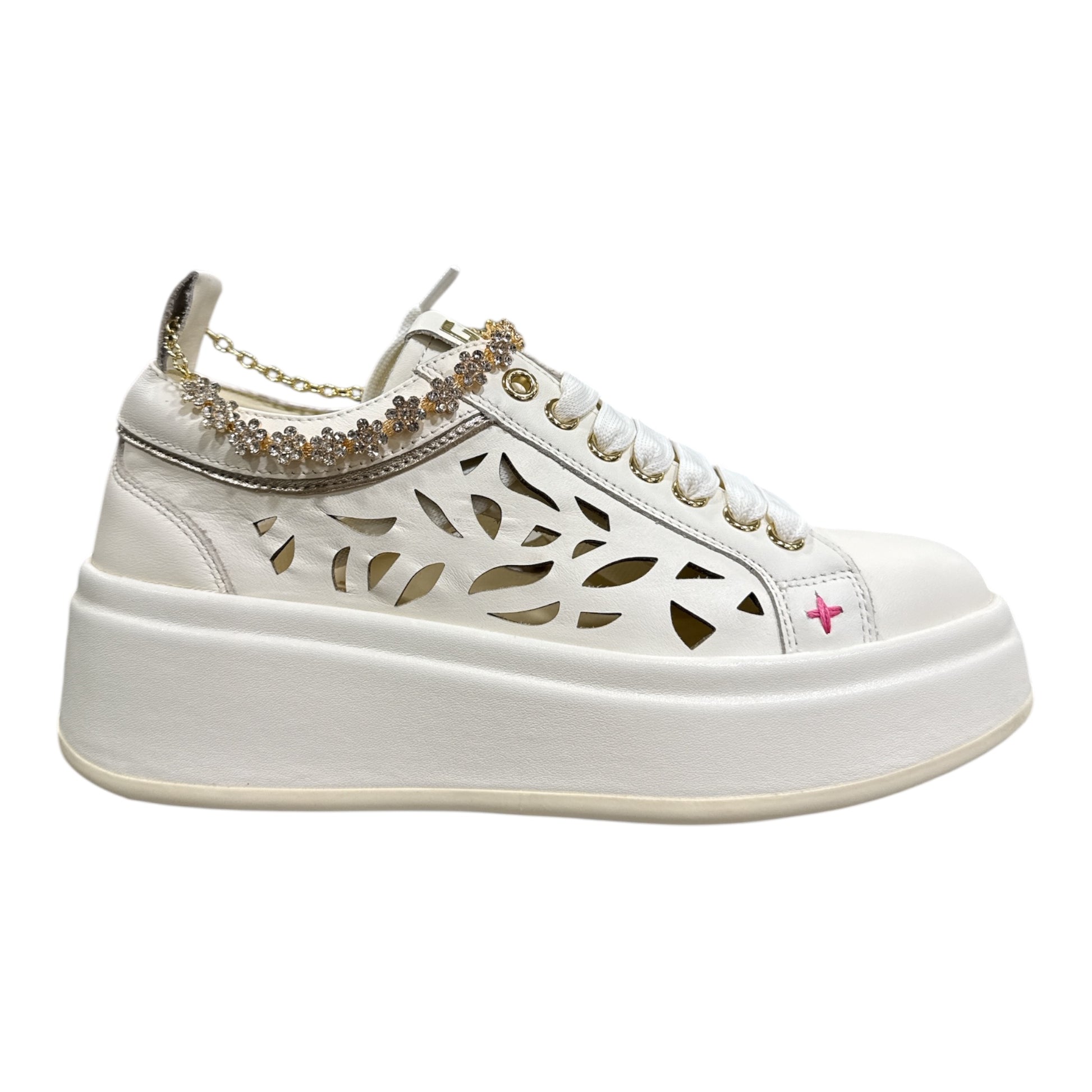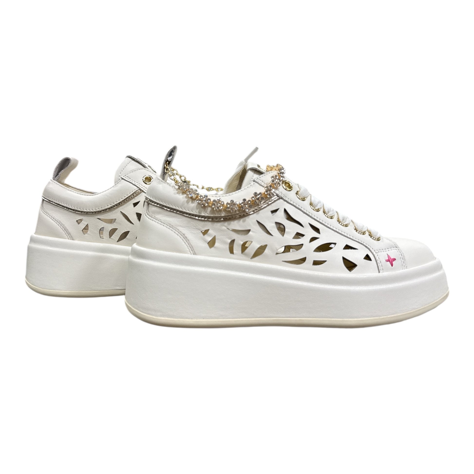 Aggiungi un tocco di eleganza ai tuoi outfit casual con le sneaker OLIVA di GIO +. Realizzate in pelle intagliata e con chiusura a laccio arricchita da una splendida cavigliera gioiello removibile , queste sneakers sono perfette per un look sofisticato. Il sottopiede imbottito in pelle assicura comfort, mentre il fondo in gomma con para alta 5 cm aggiunge un tocco di stile.