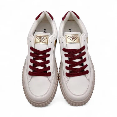 Colore semplice, caratterizzato da dettagli dorati e talloncino bordò.