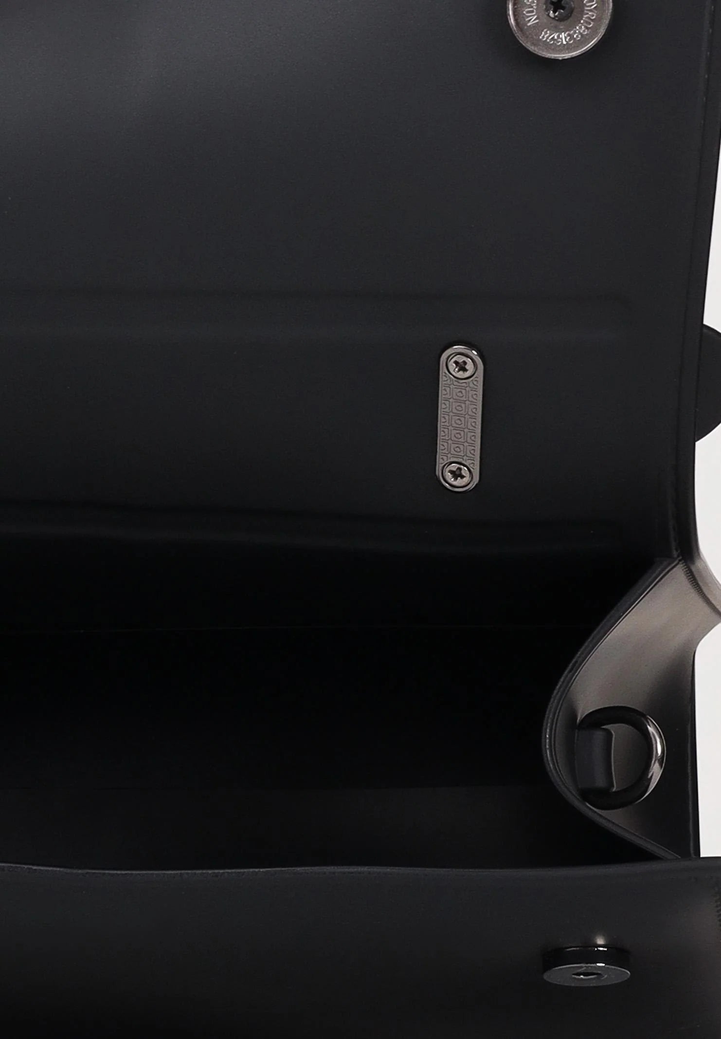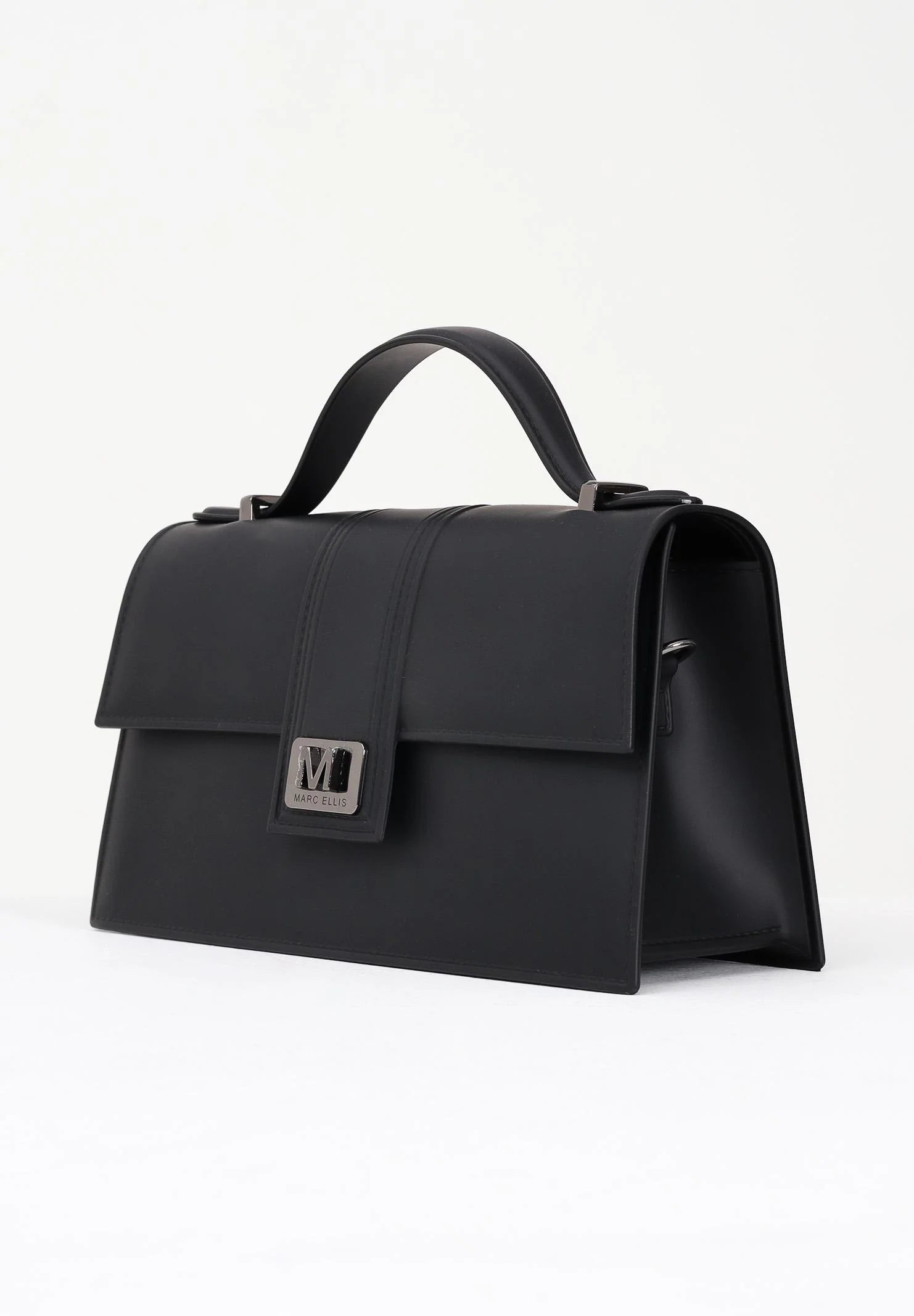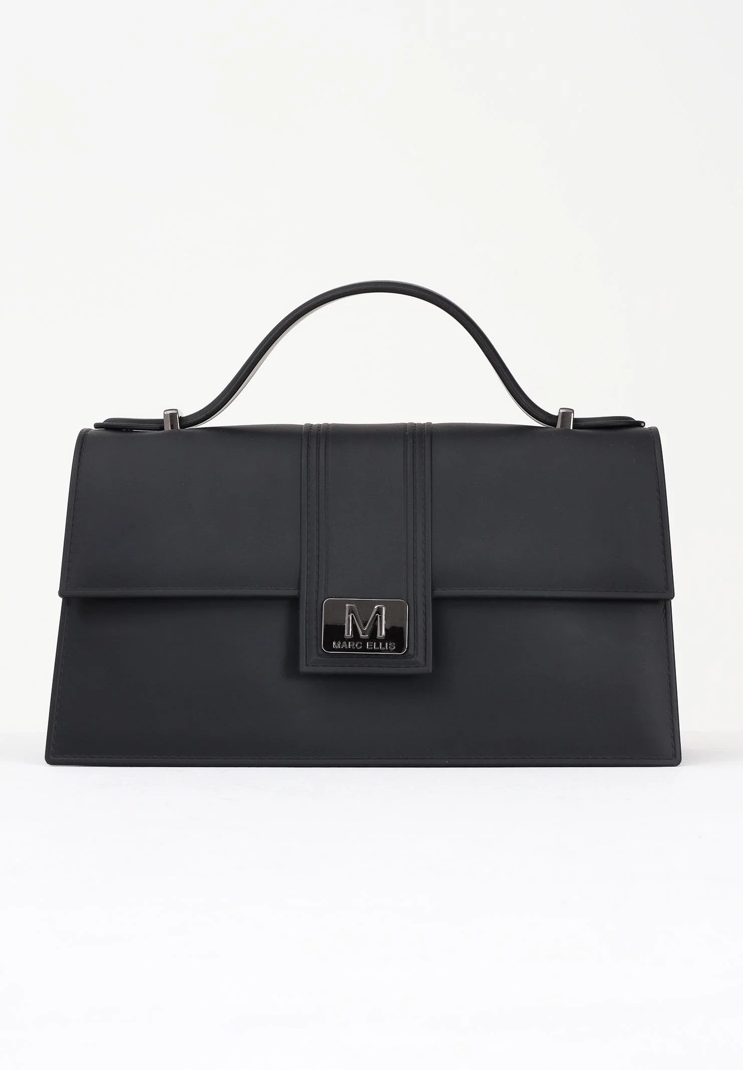 Borsa a tracolla Flat Arrow M nera da donna. Questa borsa Marc Ellis è un modello sofisticato e strutturato, ideale per aggiungere un tocco elegante e contemporaneo a ogni look. Realizzata in pvc , presenta una silhouette rettangolare pulita e minimale, arricchita dal dettaglio centrale con logo metallico M Marc Ellis sulla chiusura a patta. È dotata di manico superiore rigido, perfetto per portarla a mano, e di una tracolla logata in tessuto regolabile e removibile, che offre maggiore versatilità, consentendo di indossarla anche a spalla o crossbody. Un accessorio versatile che unisce funzionalità ed eleganza, adatto sia per il giorno che per la sera.