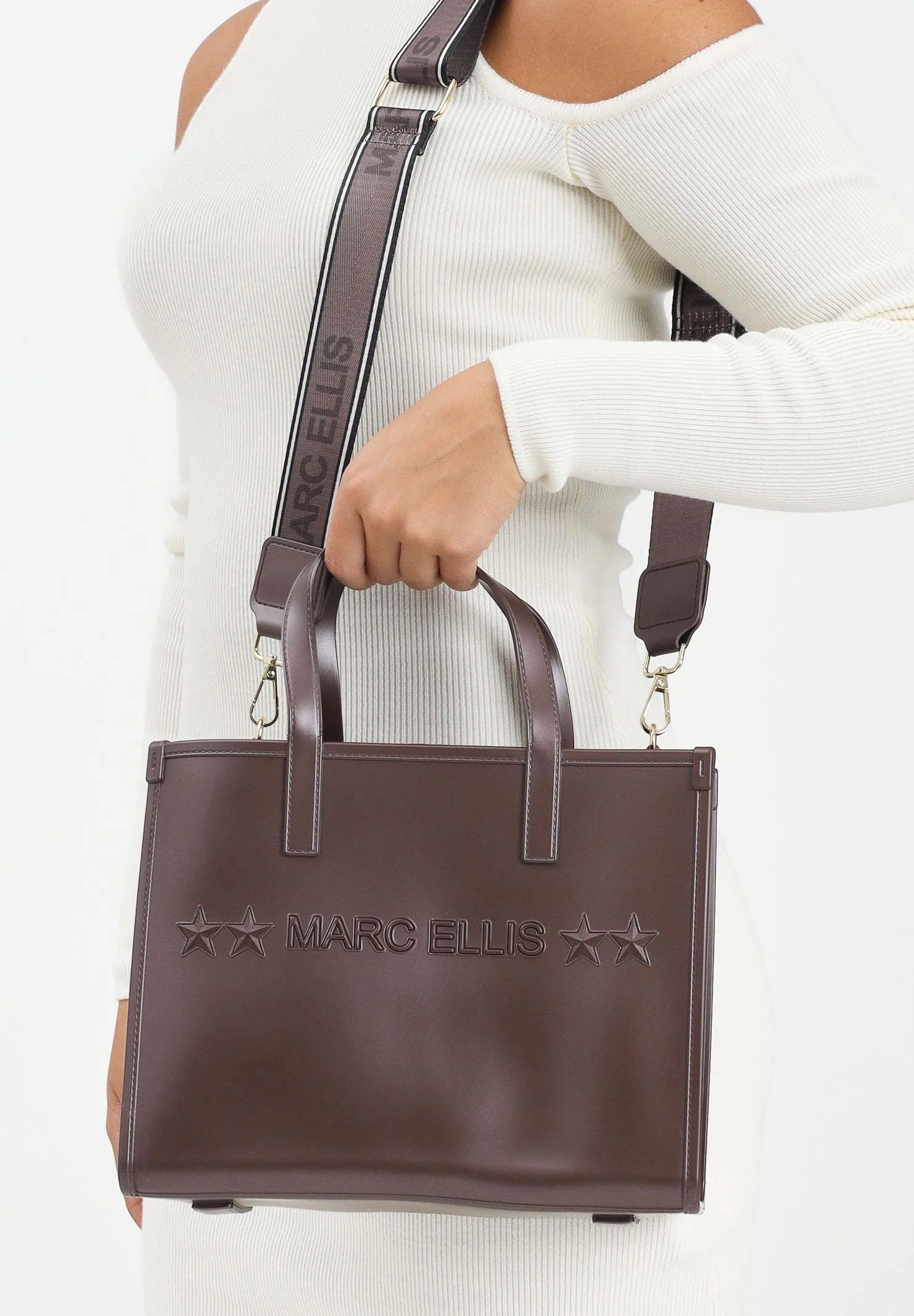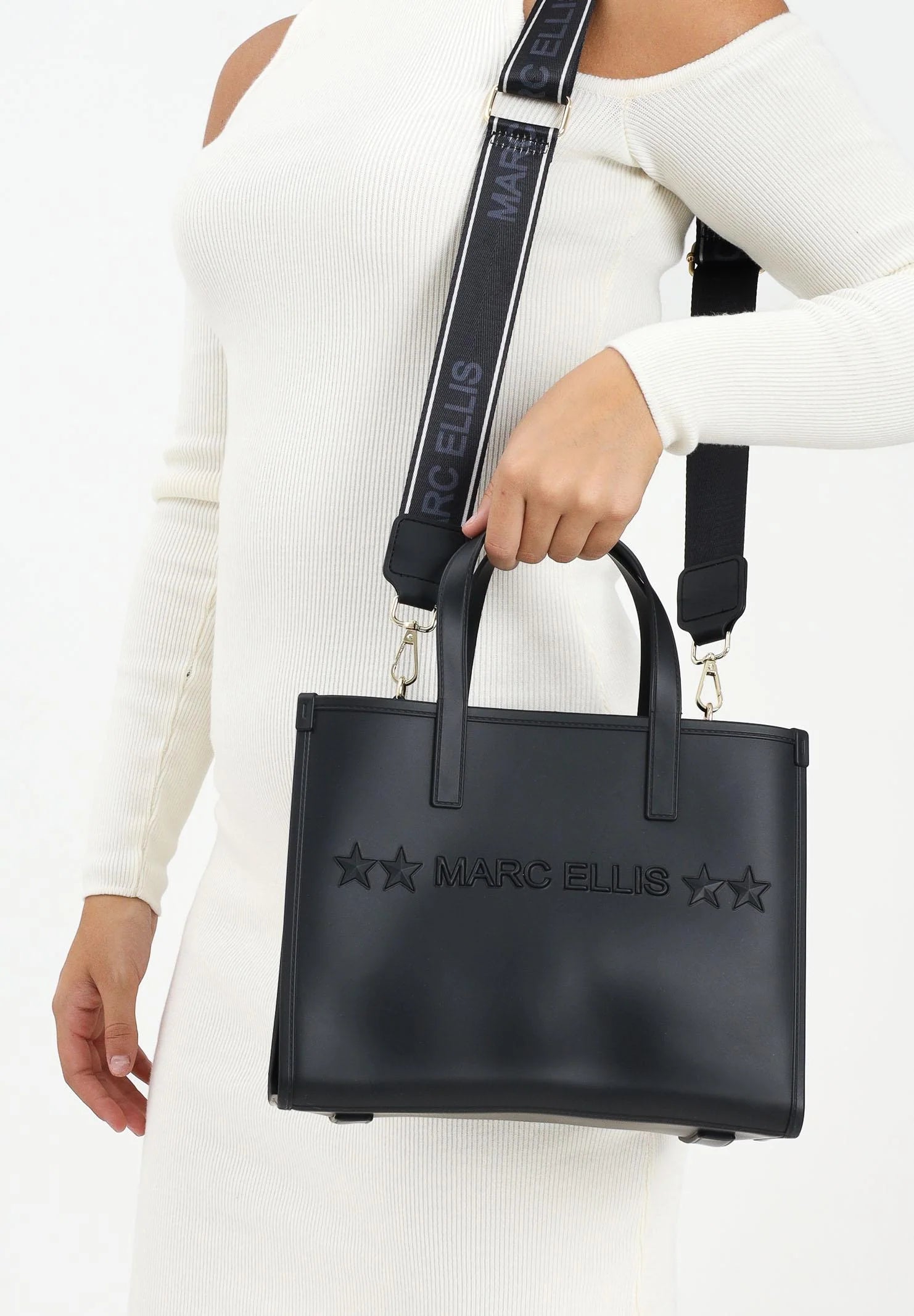 Shopper Flat Go si distingue per le linee pulite e la struttura rigida, perfetta per l'uso quotidiano o per il lavoro. Sul davanti spicca il logo Marc Ellis con stelle in rilievo, dettaglio distintivo che aggiunge un tocco moderno. È dotata di doppi manici per portarla a mano e di tracolla regolabile e removibile per indossarla anche a spalla o crossbody. L'interno spazioso è completato da una pochette coordinata rimovibile con chiusura a zip, pensata per custodire gli oggetti più piccoli. Un modello pratico ed elegante, ideale per accompagnare con stile ogni momento della giornata.