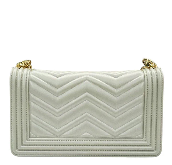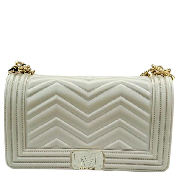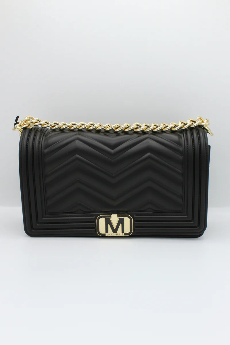 Borsa in pvc con chiusura magnetica. Tracolla in stoffa regolabile e removibile. Manico a catena.