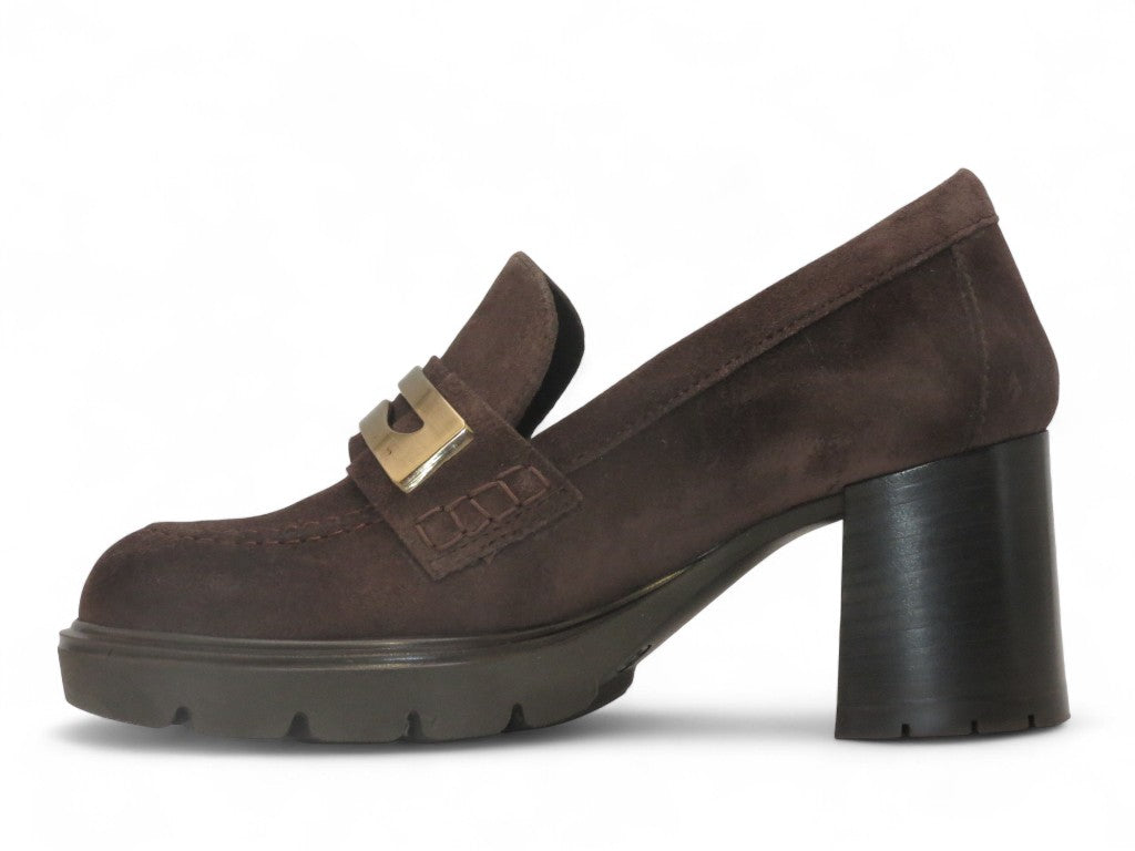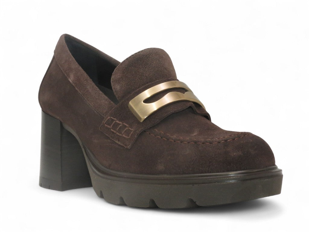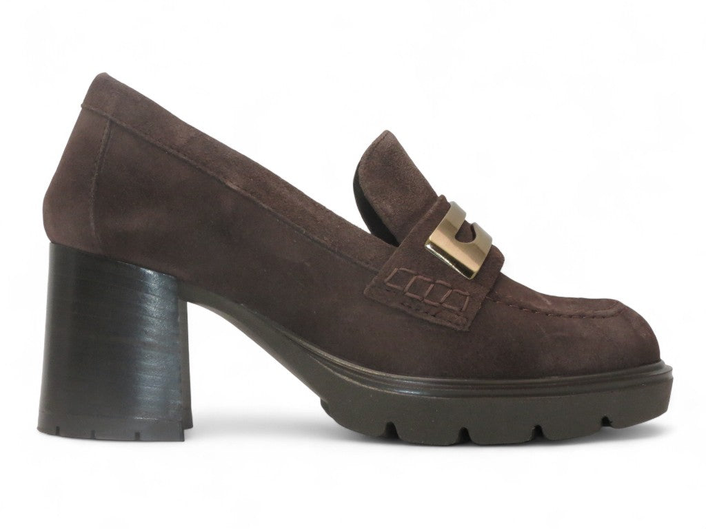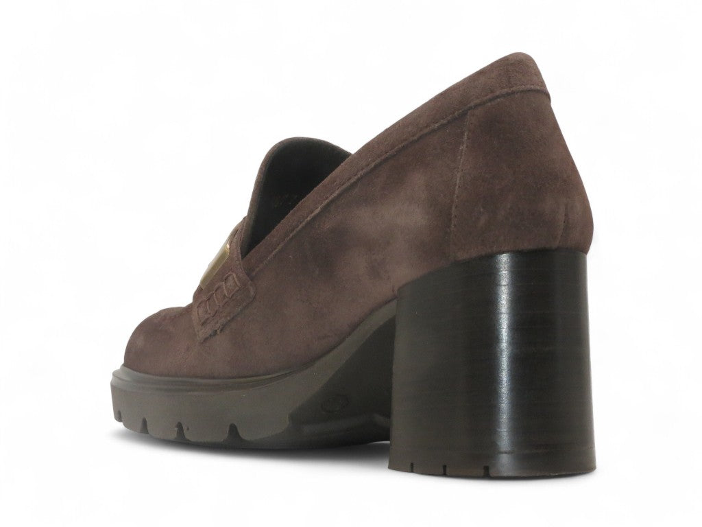 Mocassino in camoscio con tacco.