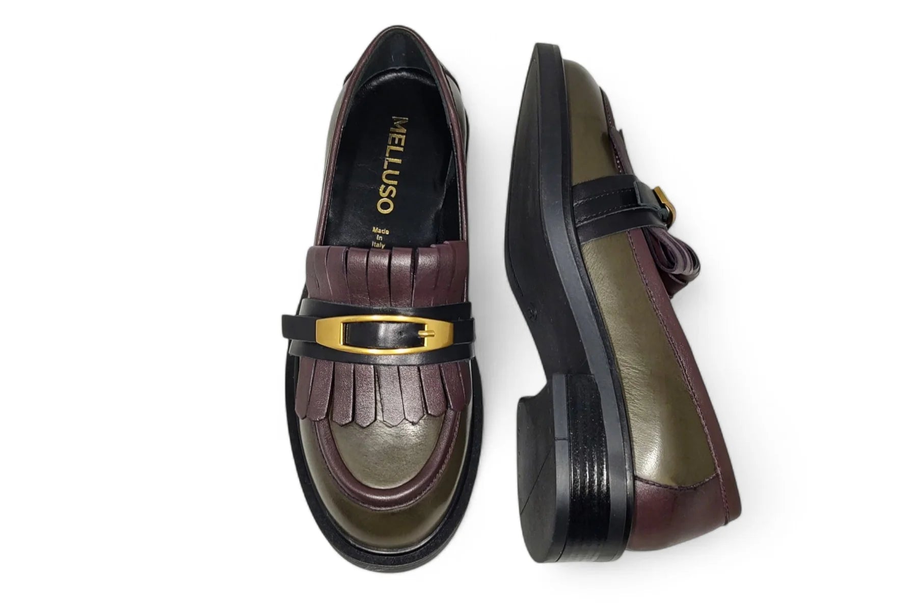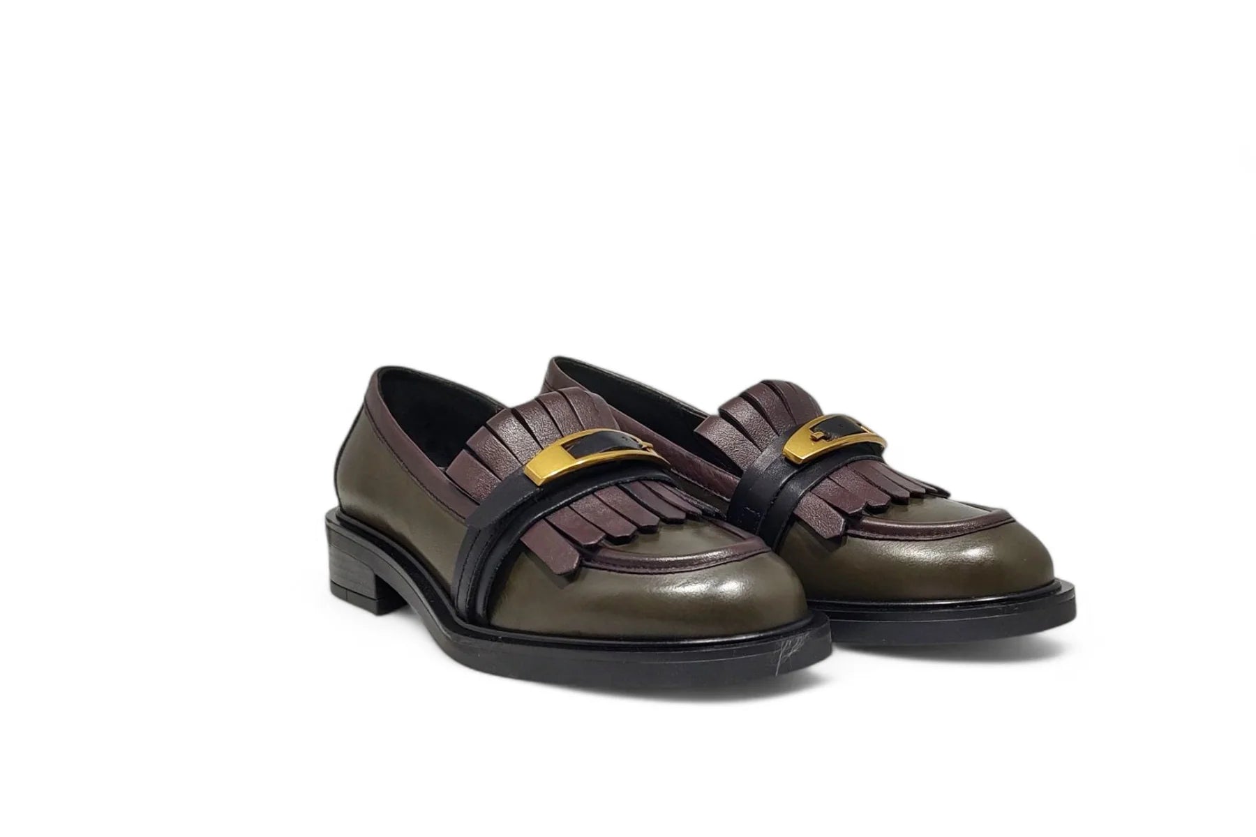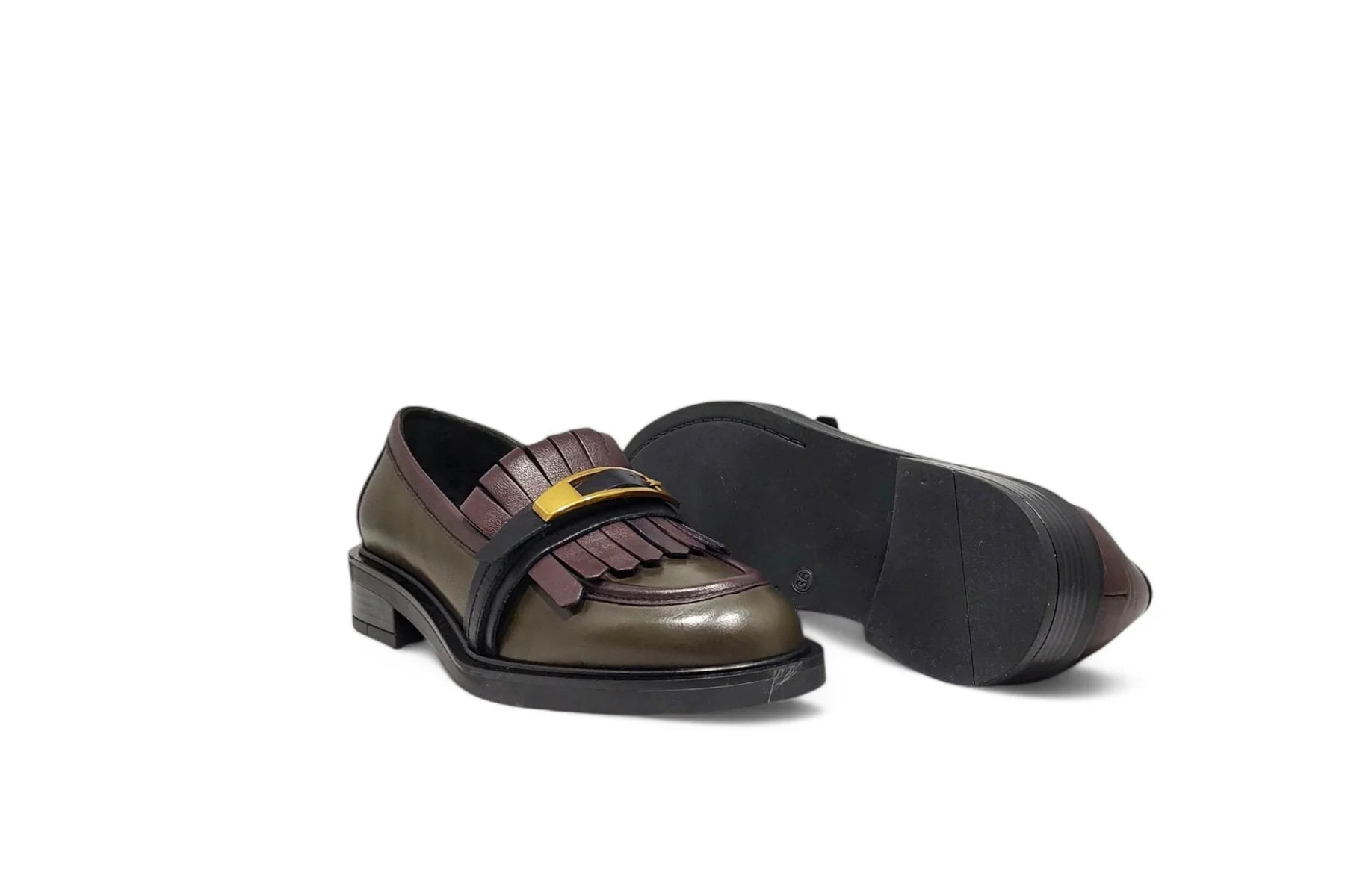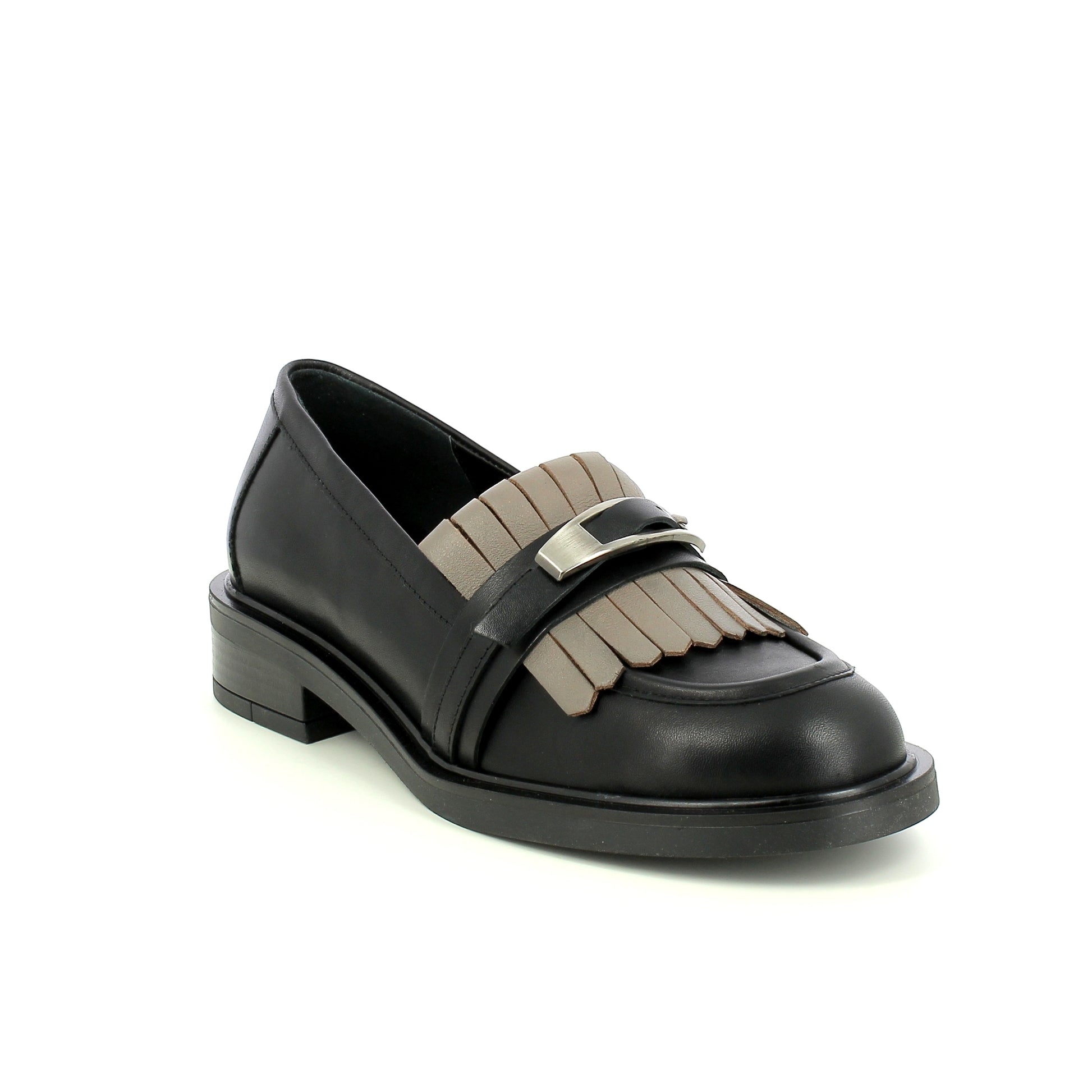 Elegante mocassino da donna firmato Melluso, realizzato in morbida pelle nera e arricchito da frangia decorativa in contrasto , impreziosita da un raffinato morsetto metallico. La fodera e il sottopiede in pelle garantiscono traspirabilità e comfort durante tutta la giornata. Un modello perfetto per chi cerca uno stile distintivo e versatile, da indossare sia in ufficio che nel tempo libero.