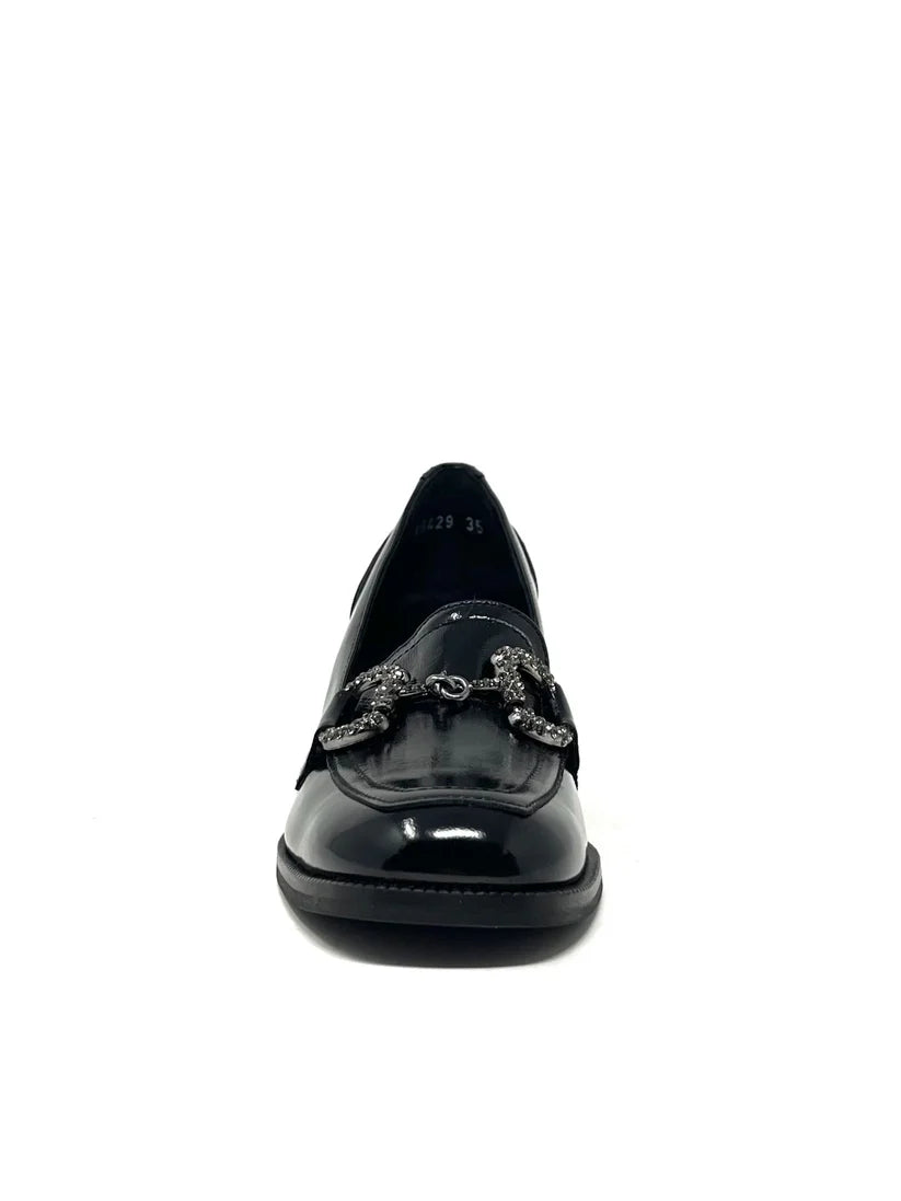 Questo mocassino con tacco largo unisce comfort e stile grazie alla morbida nappa e al morsetto decorativo che aggiunge un tocco di raffinatezza. Il tacco stabile garantisce una camminata sicura durante tutta la giornata, rendendolo perfetto per chi cerca eleganza senza rinunciare al benessere del piede. Ideale per completare sia look formali che casual con un dettaglio di classe.