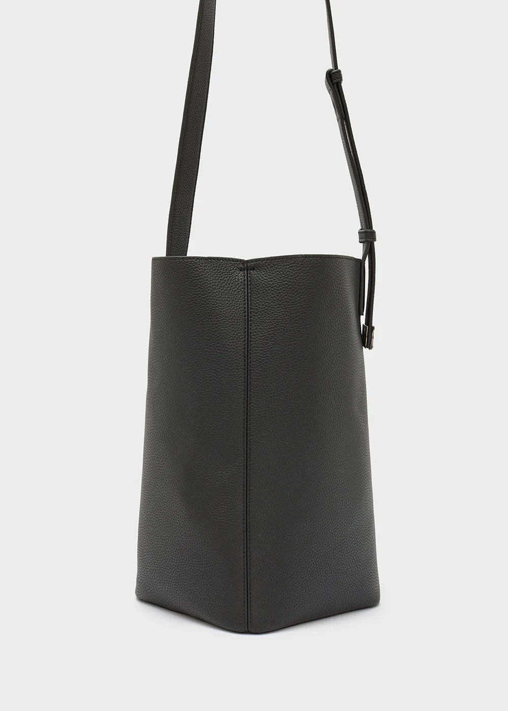 Borsa a secchiello in ecopelle beige con texture martellata. Dotata di tracolla regolabile e design minimal, è ideale per completare con discrezione look eleganti o casual.