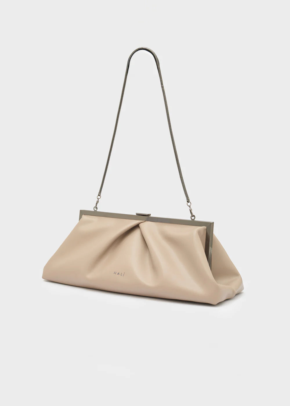 Clutch rettangolare in ecopelle con cornice dorata, dallo stile sofisticato.