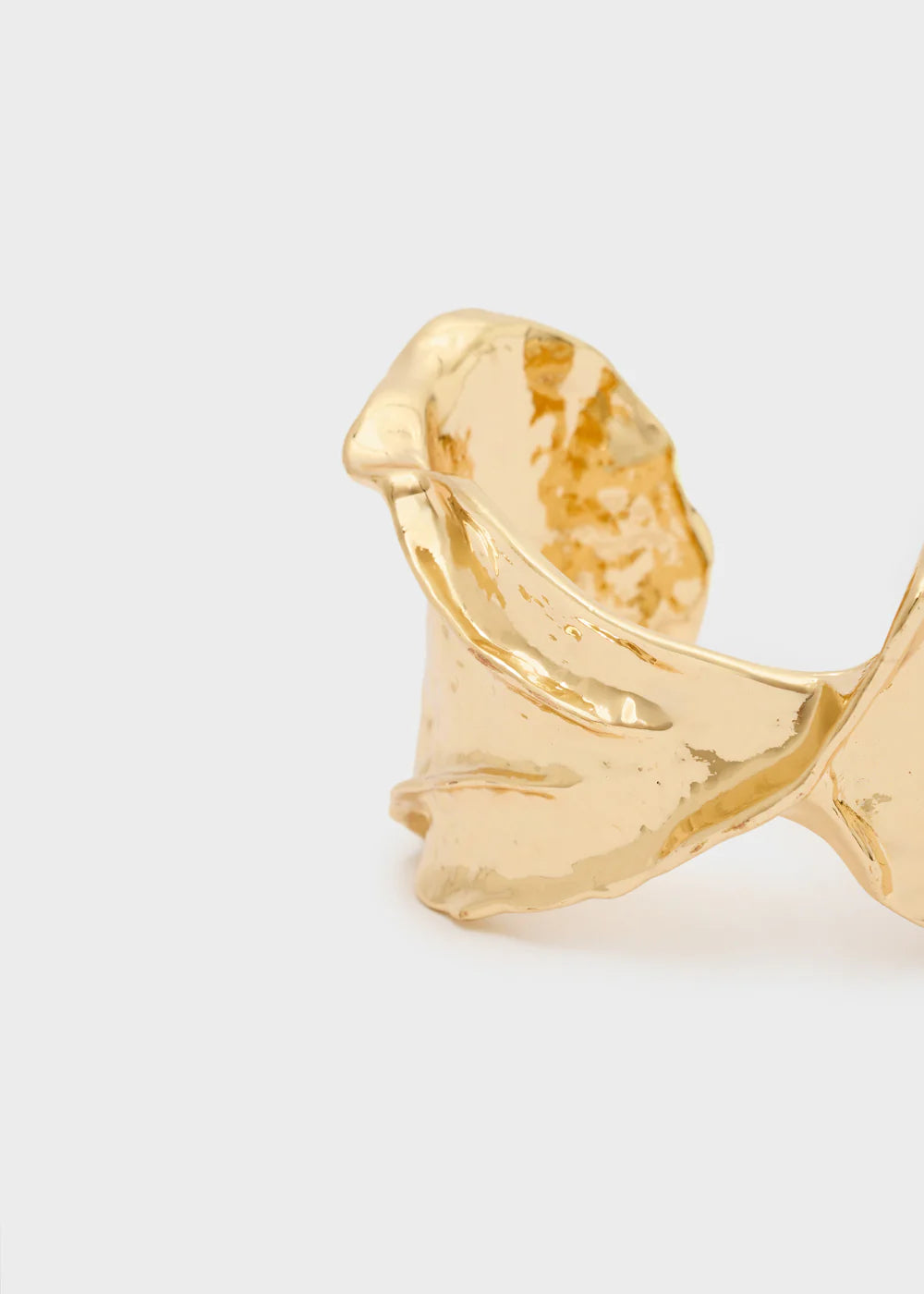 Bracciale rigido con superficie martellata e forma irregolare, un modello artistico e originale che si distingue per stile e carattere.