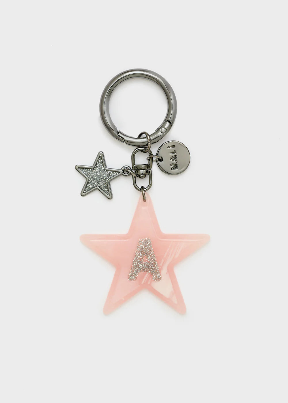 Portachiavi con stella e lettera, caratterizzato da un design elegante e contemporaneo, ideale per dare un tocco di originalità e raffinatezza ai tuoi accessori quotidiani.