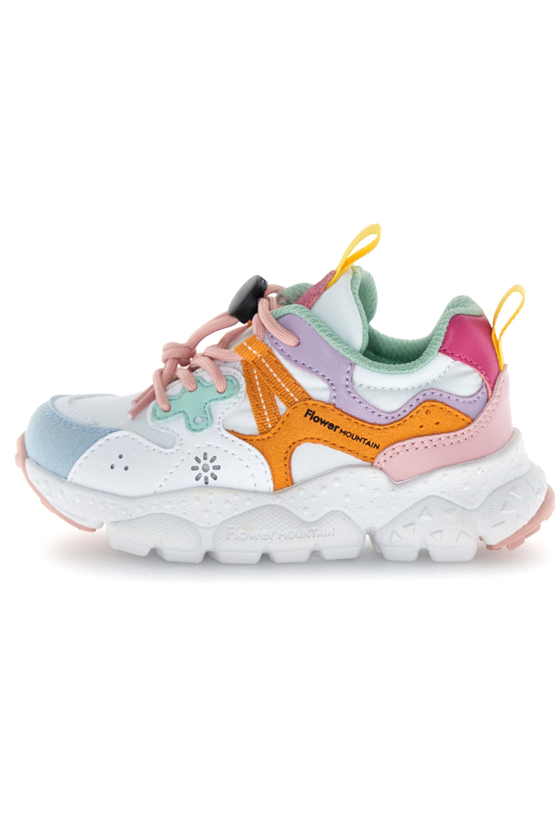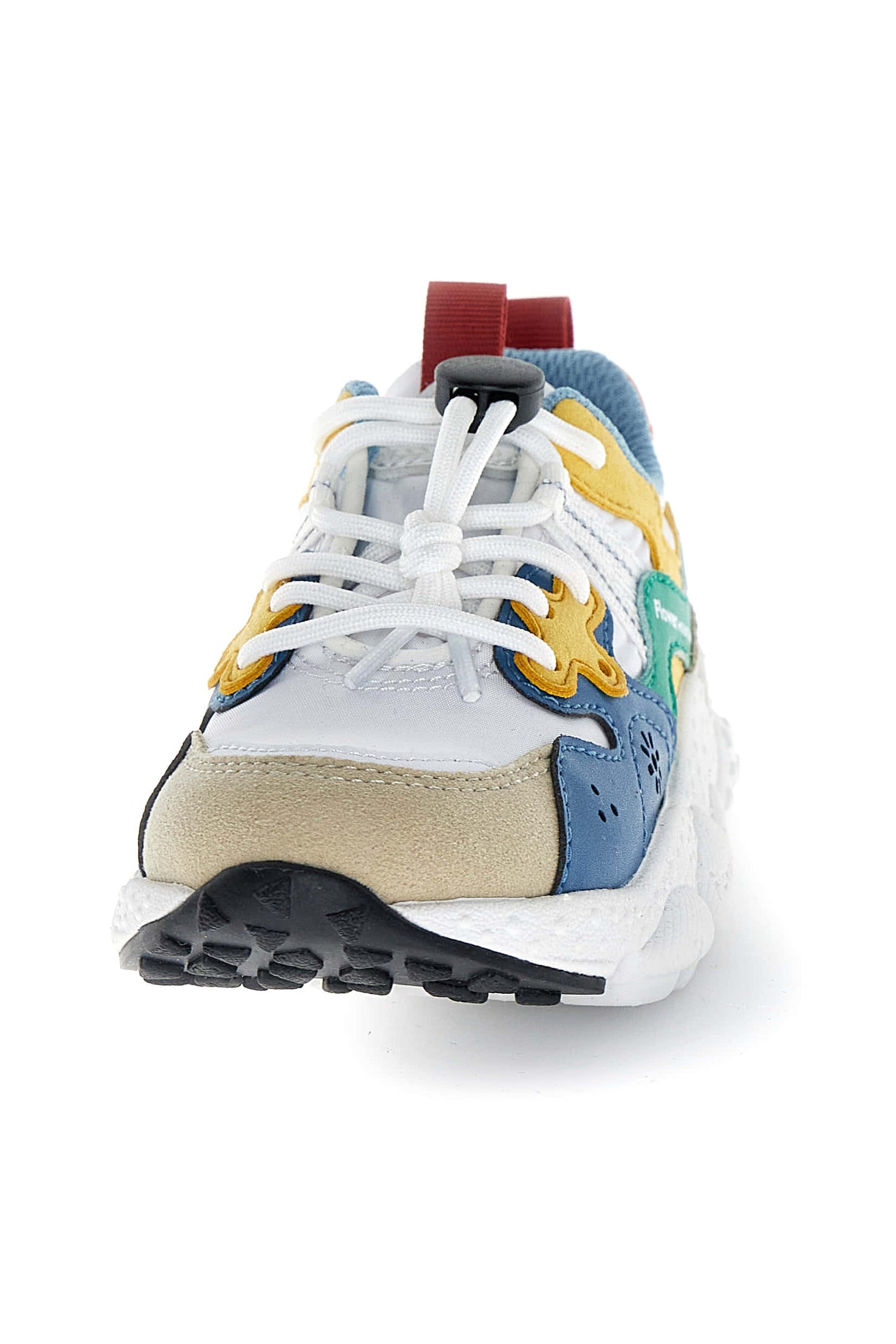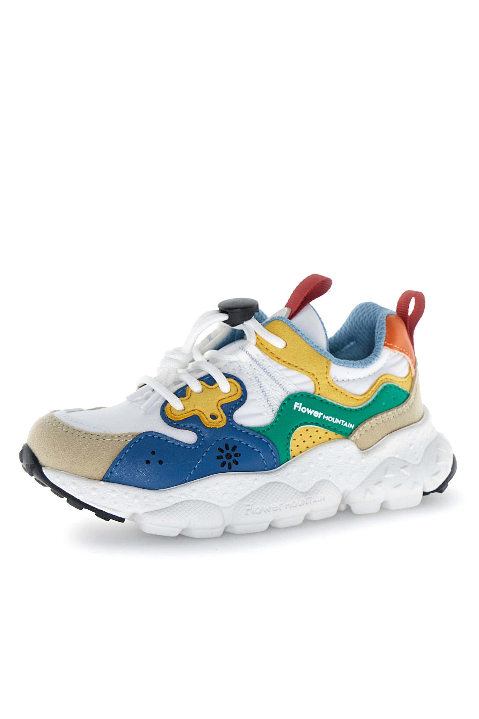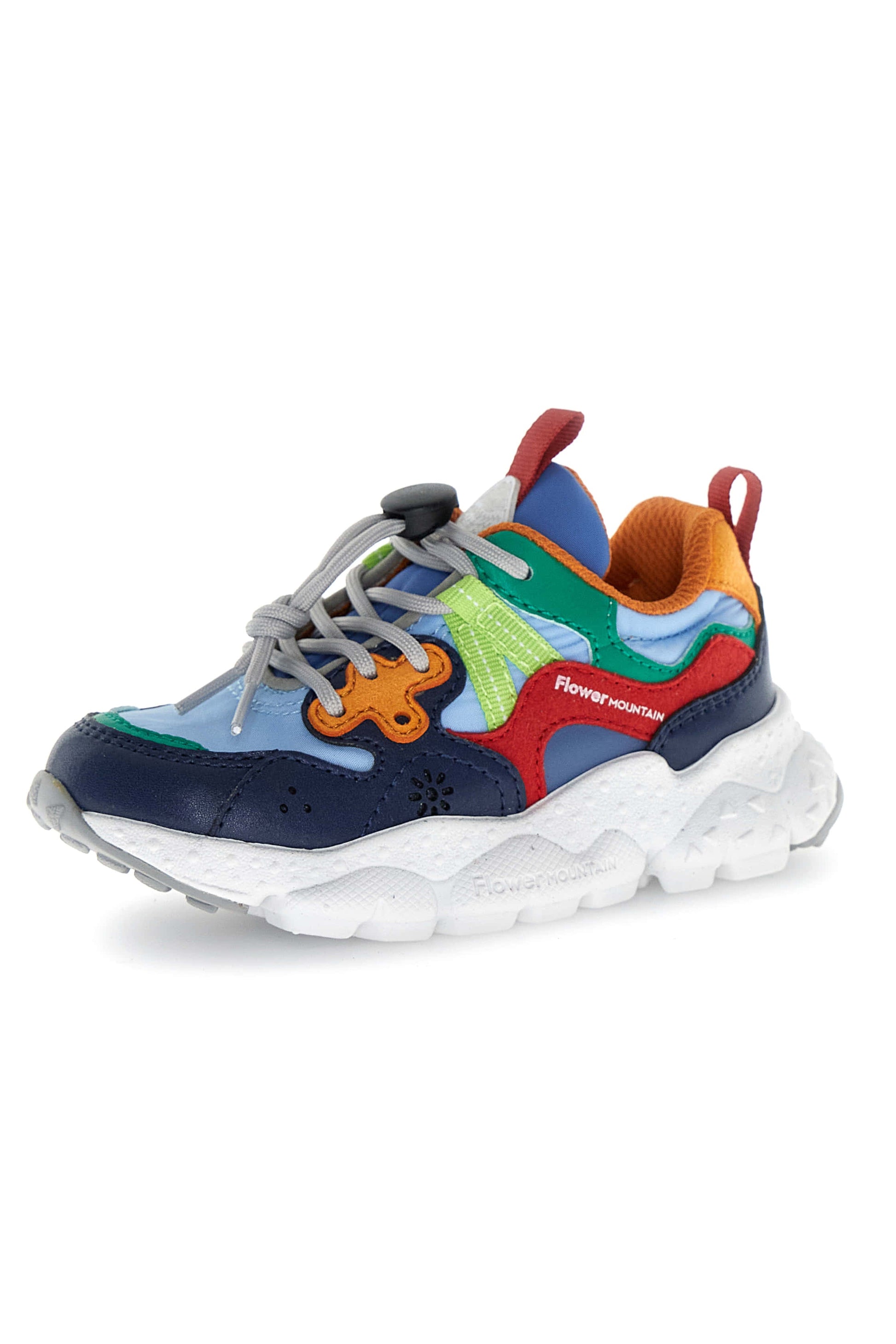 Sneaker realizzata in collaborazione con Flower Mountain. La tomaia è in tessuto tecnico con dettagli sagomati in eco pelle dalle nuance a contrasto. Chiusura con lacci e quick stop, fondo in gomma .