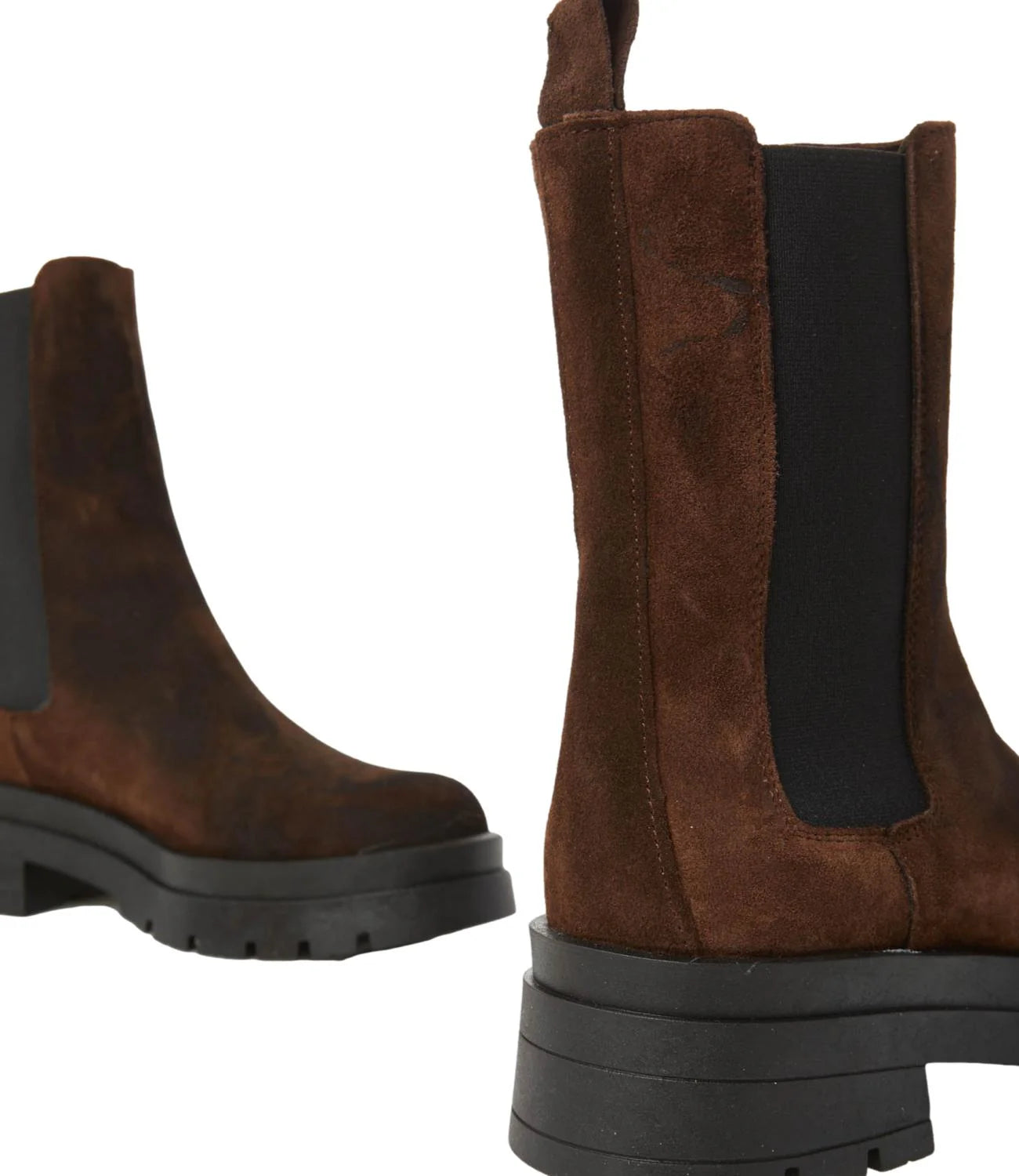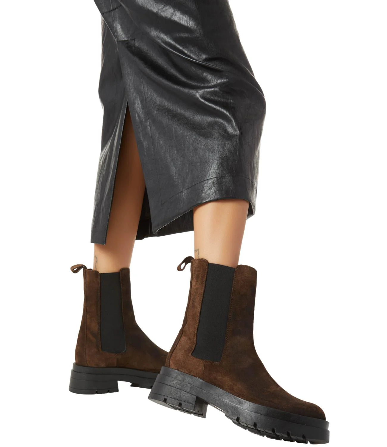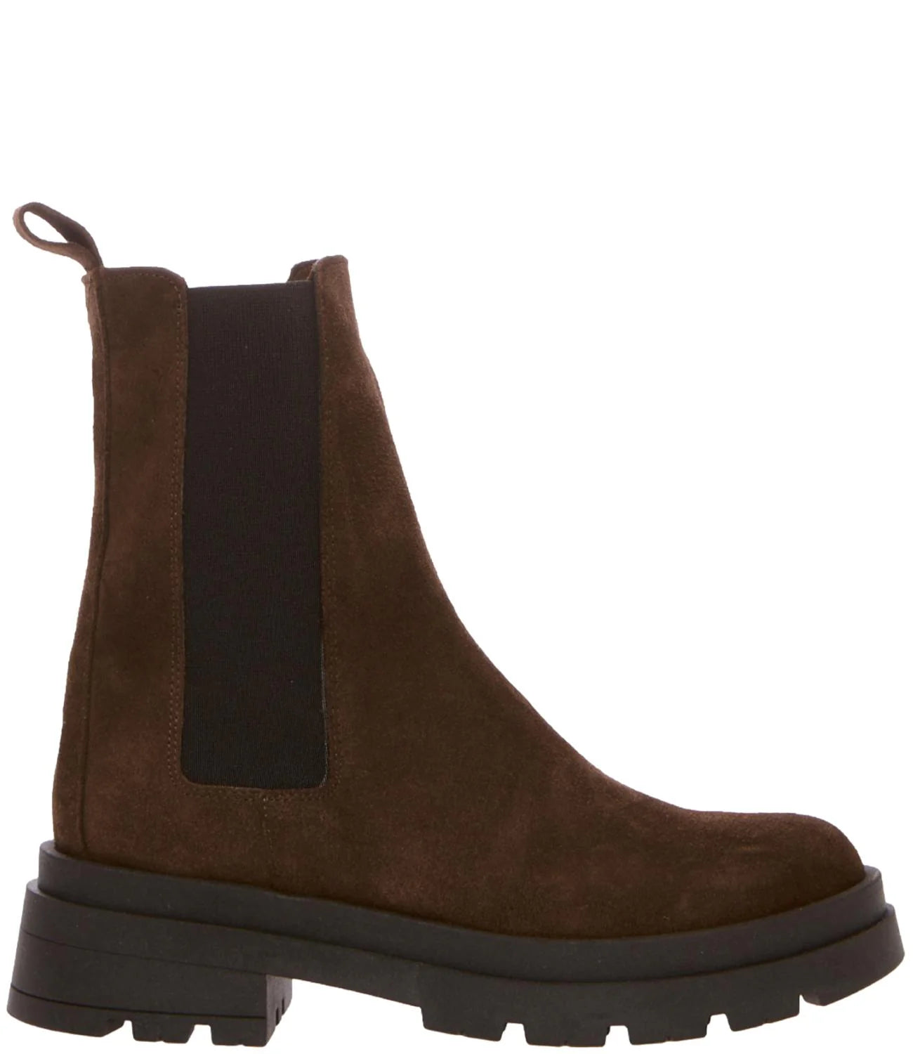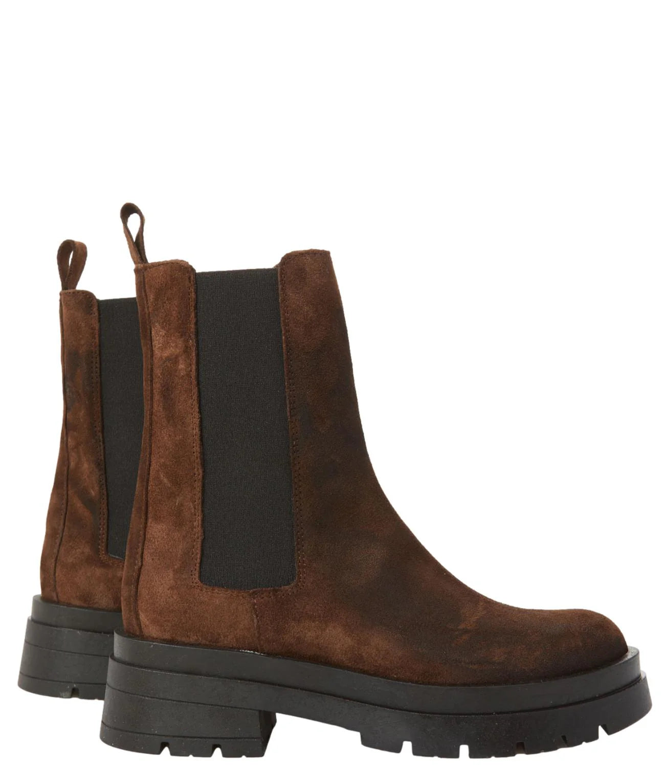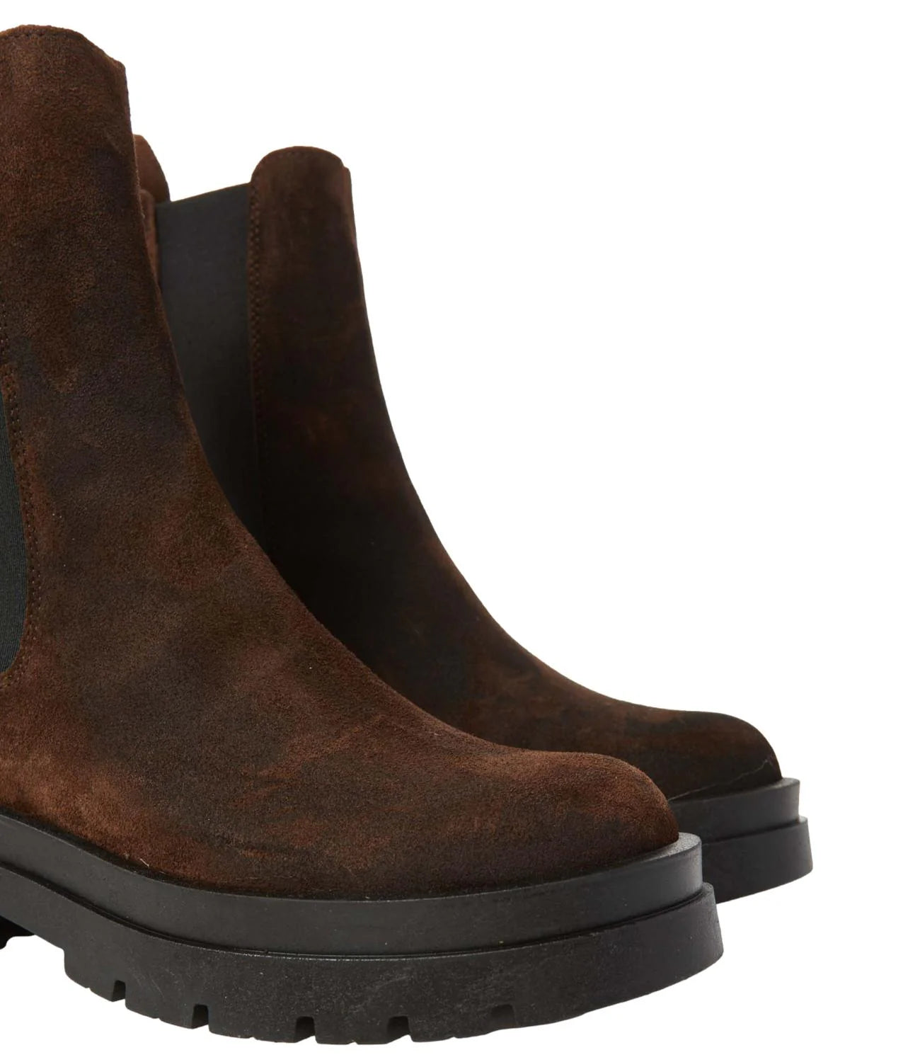 Stivaletto modello Beatles in camoscio con inserti elasticizzati neri , fondo in gomma carrarmato .