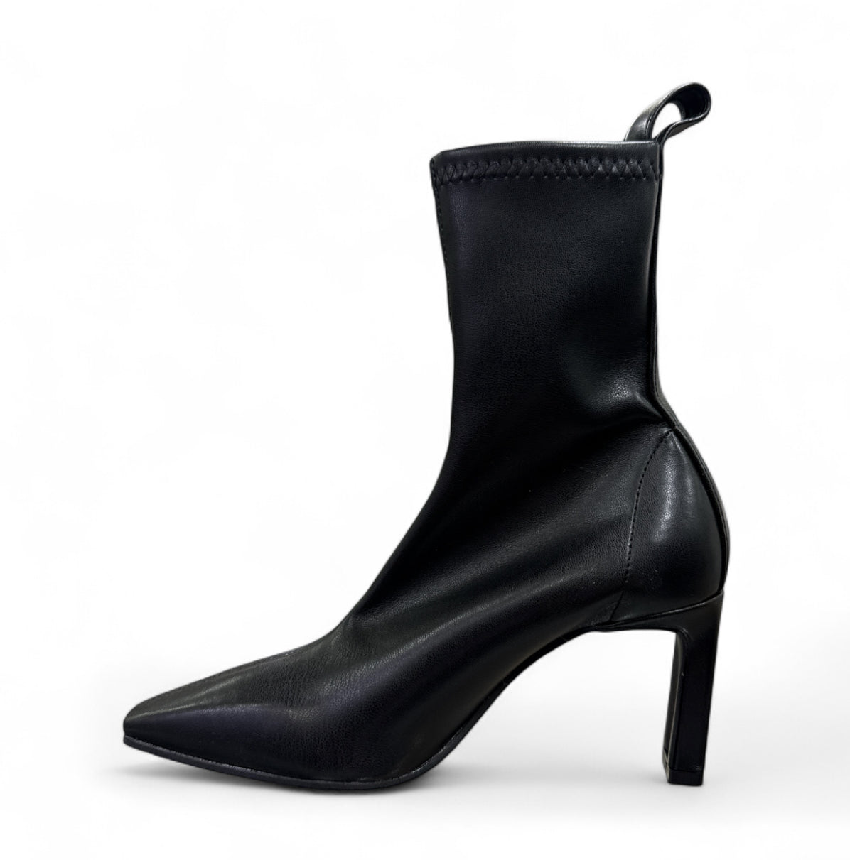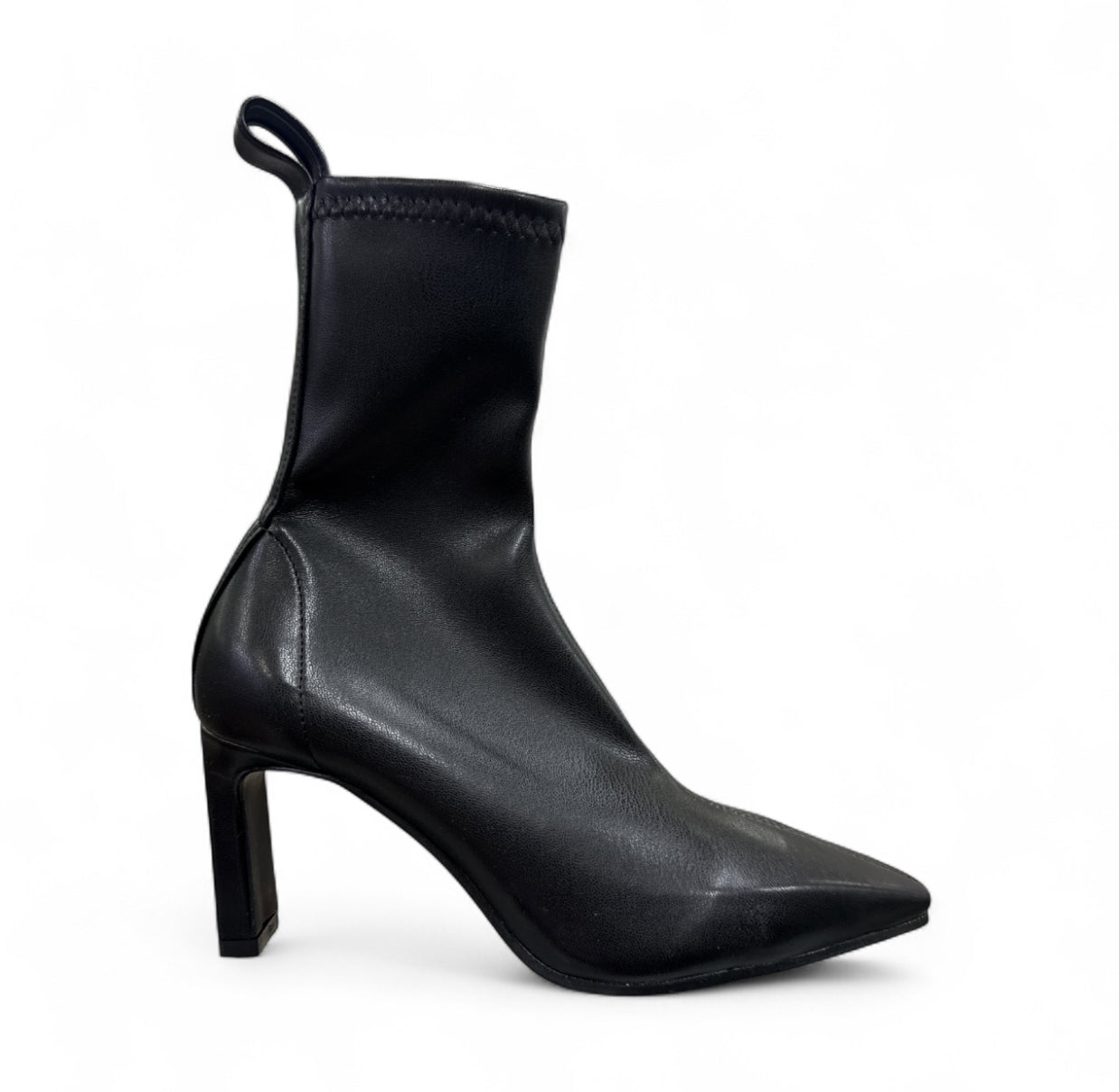 Stivaletto a calza elasticizzato con tacco. Tacco: 7,5cm. Tomaia: ecopelle. Fodera: ecopelle. Suola: pelle. Fondo: altre materie.
