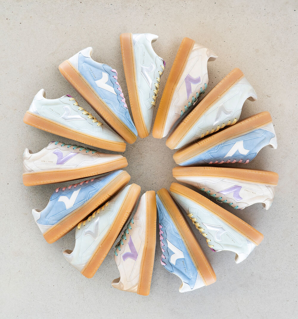 Scarpe sportive unisex realizzate in camoscio effetto "velluto" con dettagli in PU. Chiusura con lacci bicolore: tono su tono e colori fluo. Etichetta in gomma sul tallone. Fodera in microfibra traspirante. Suola in gomma traslucida color caramello. Include inoltre una soletta ergonomica che si adatta alla forma del piede, offrendo una sensazione di comfort.