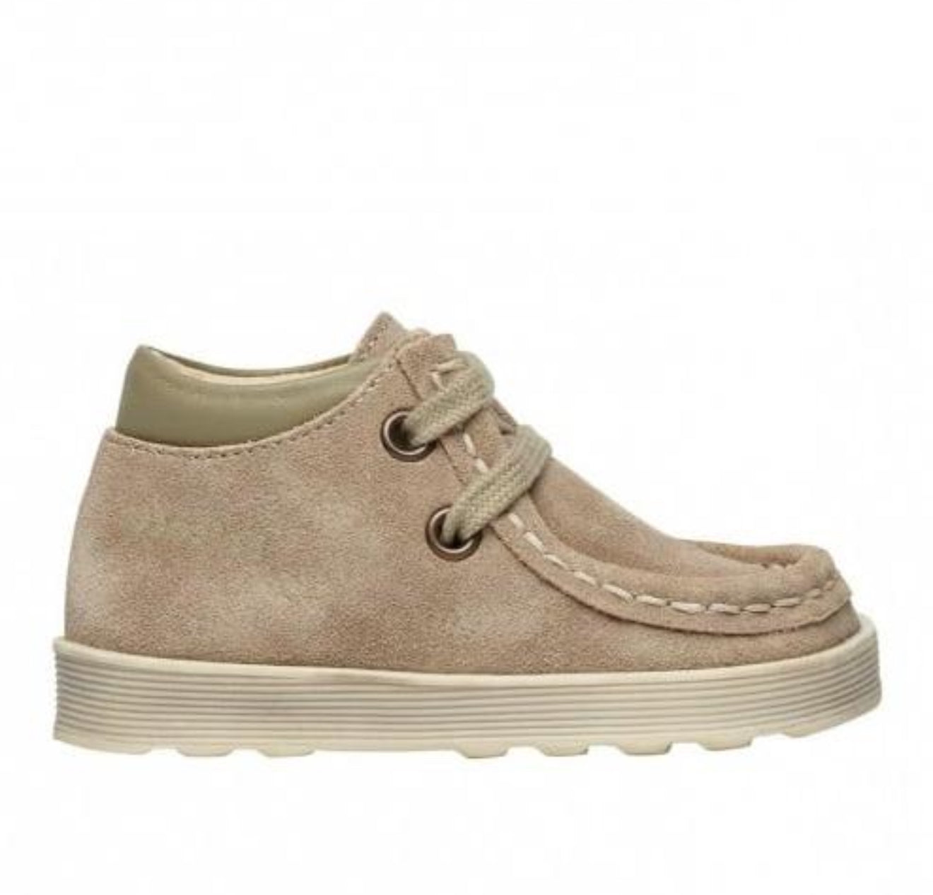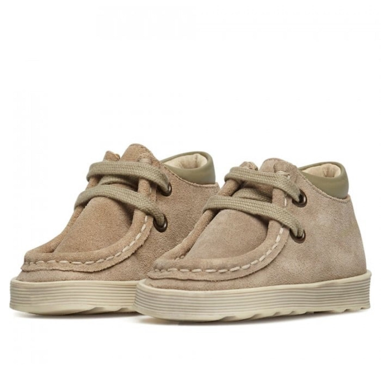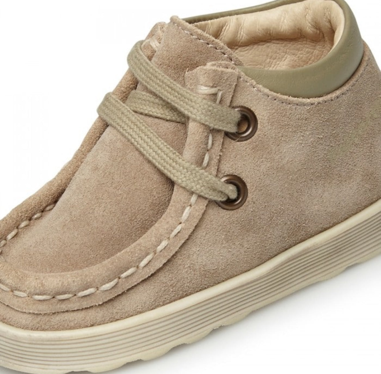 Scarpina in suede blu con lacci presentano una costruzione alla caviglia e speciali impunture a contrasto sulla vaschetta. Facili da indossare grazie ai lacci in cotone, sono completi da soletta interna in cuoio e fondo spesso in gomma.
