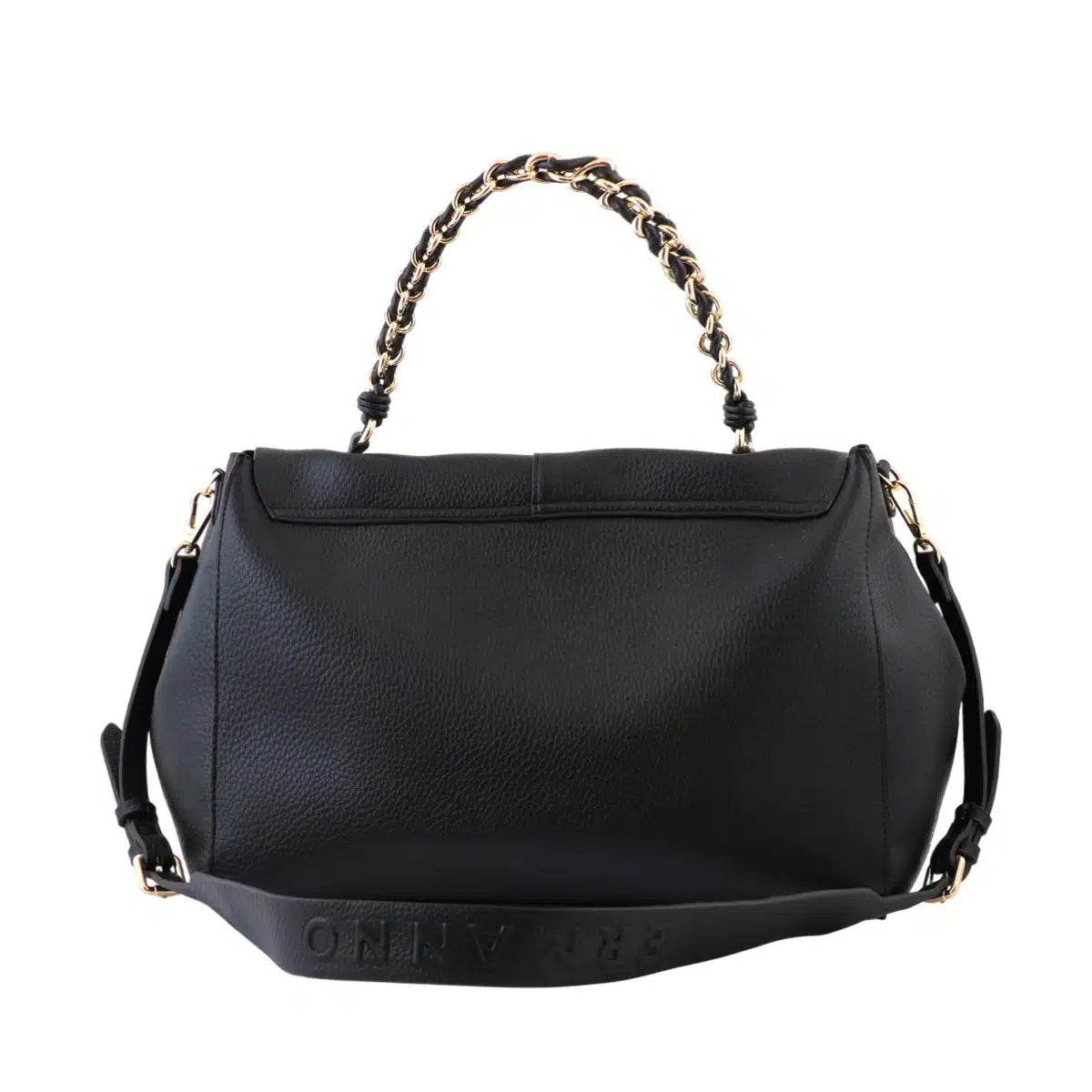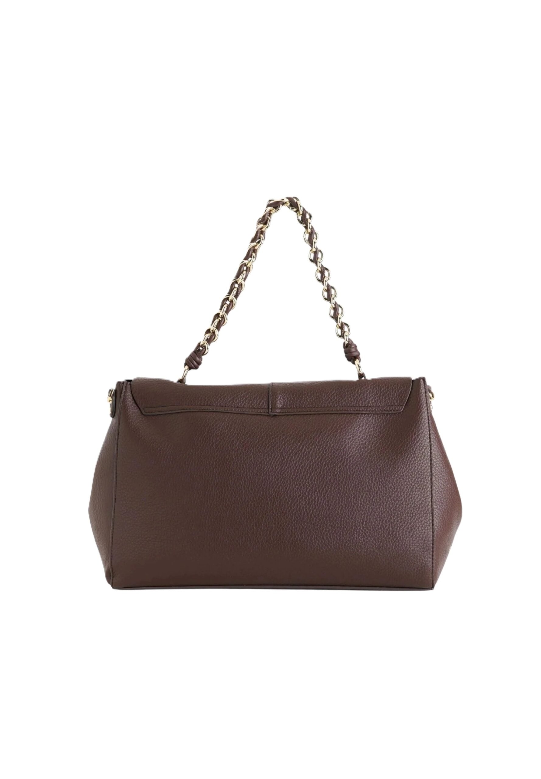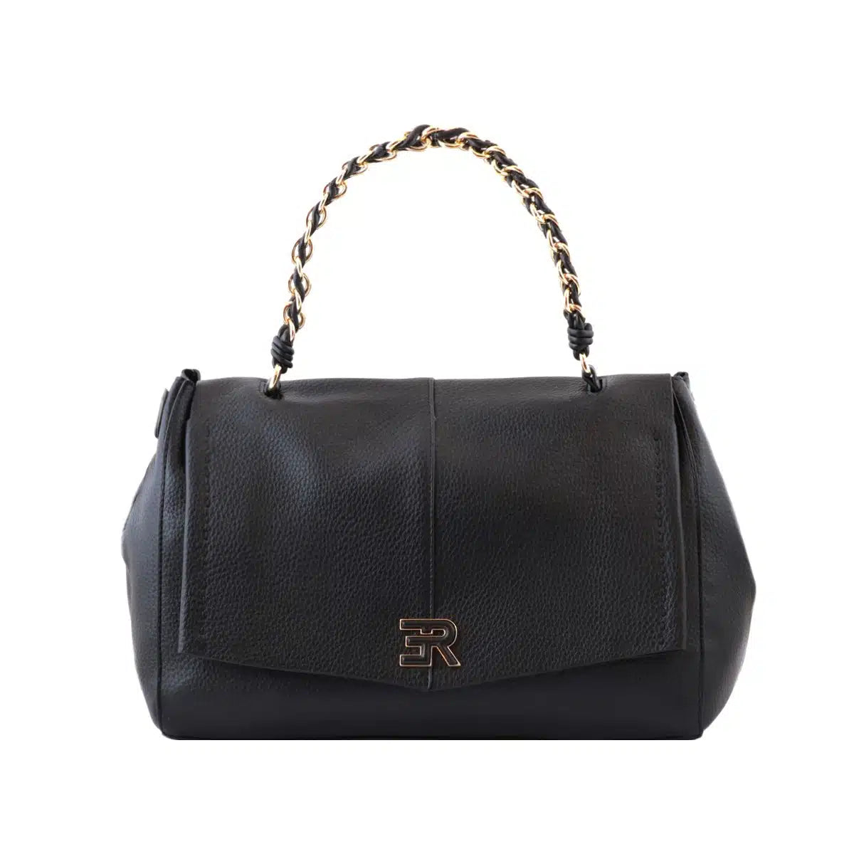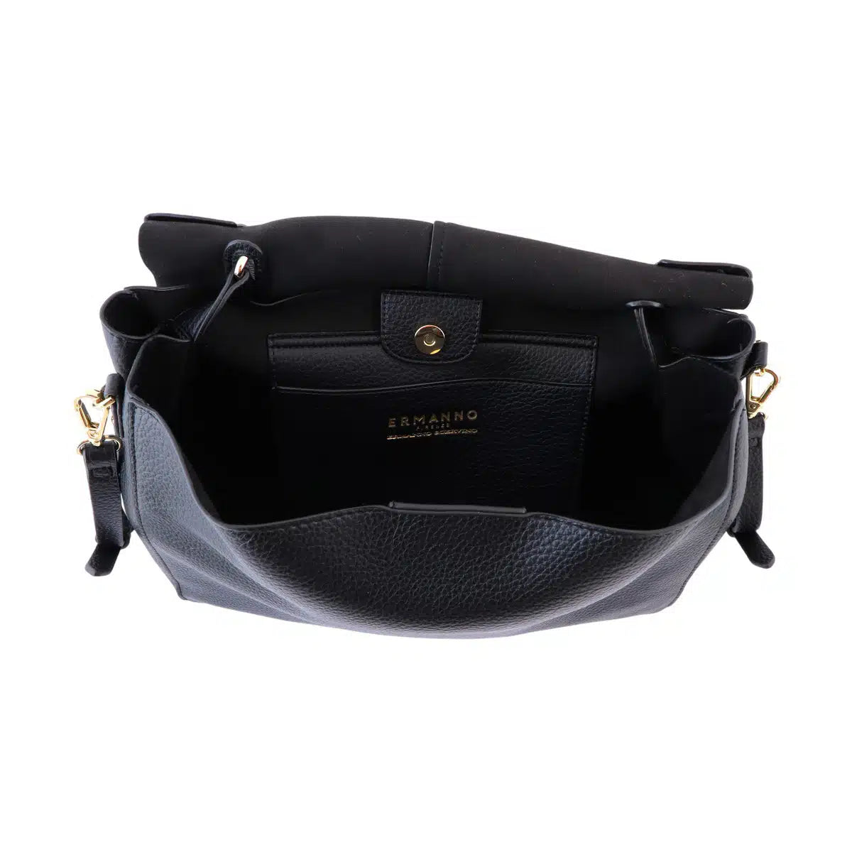 Borsa a mano Scervino, iconico accessorio in similpelle, con manico singolo lavorato e tracolla larga, regolabile e removibile. Comparto con chiusura con patta, logo frontale in metallo e interno foderato.