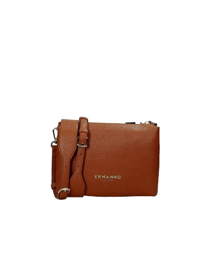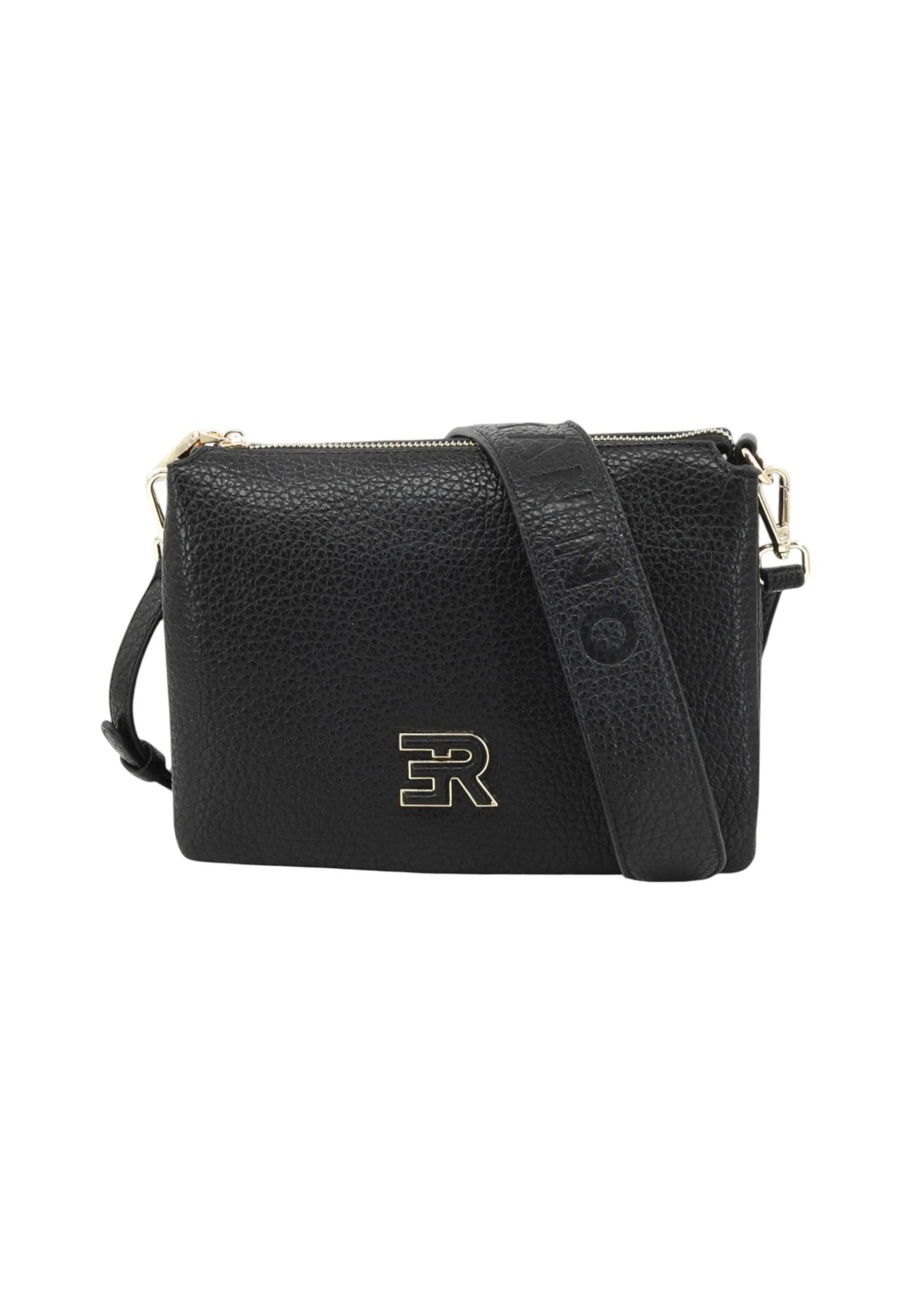 Logo lettering ER in rilievo con profili dorati sulla superficie anteriore e logo Ermanno Firenze dorato sulla superficie posteriore, chiusura a zip e interno foderato con tasche